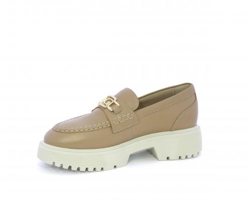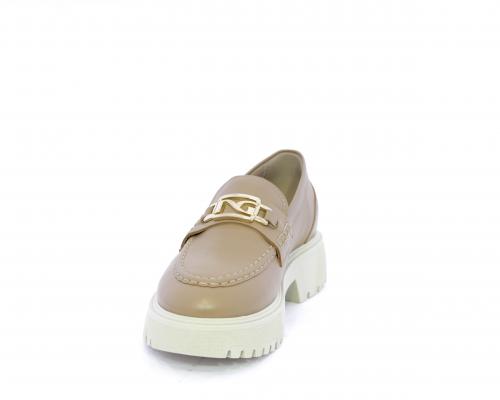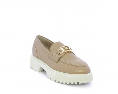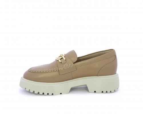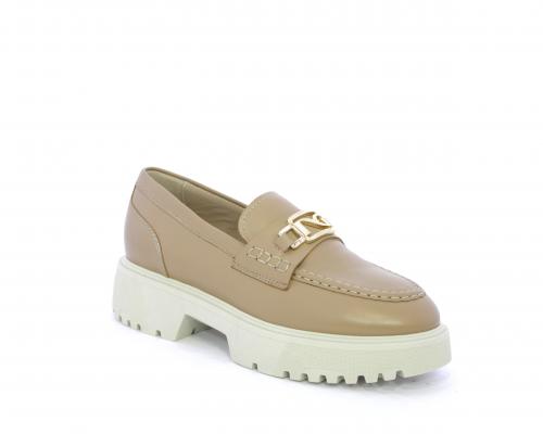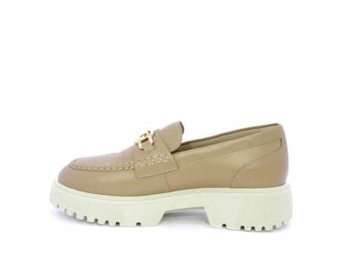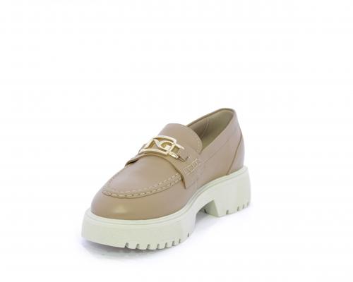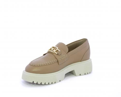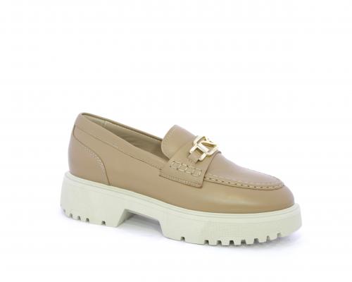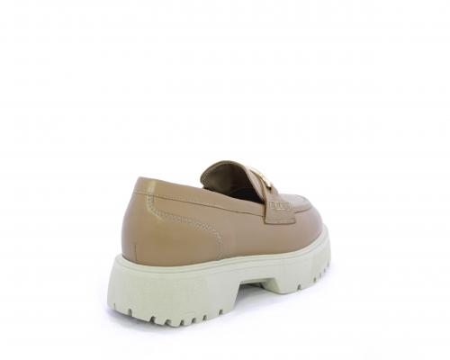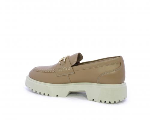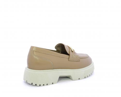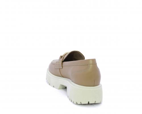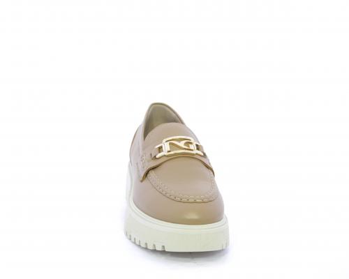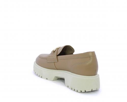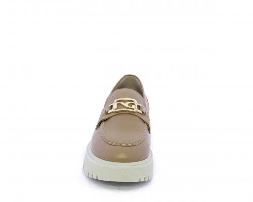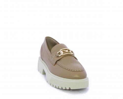 Mocassino in pelle con fibbia color oro, sottopiede e fodera interna in pelle, fusbet estraibile con sistema DryGo, che svolge una doppia azione assorbe l'umidità quando si indossa la calzatura e si asciuga rapidamente quando si toglie la scarpa.