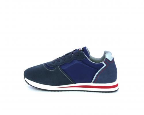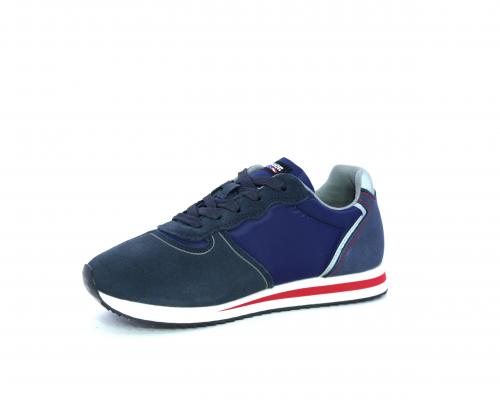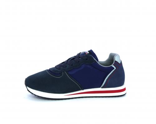 Sneakers allacciata in tessuto e camoscio, sottopiede e fodera interna in tessuto, fusbet estraibile.
