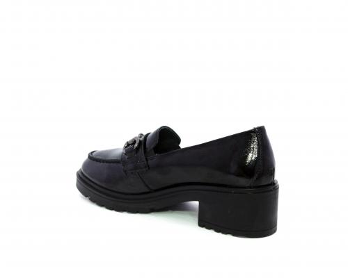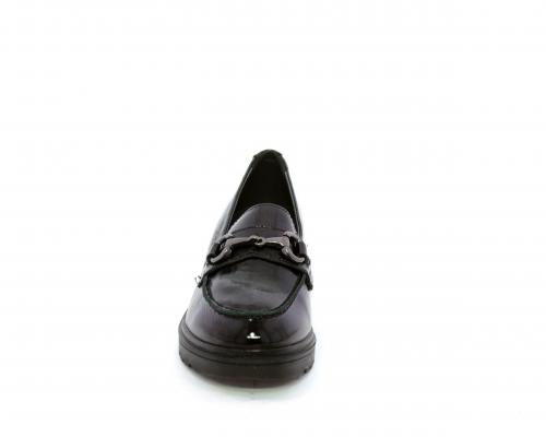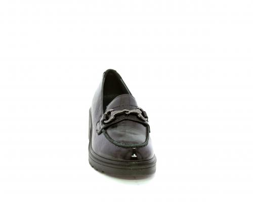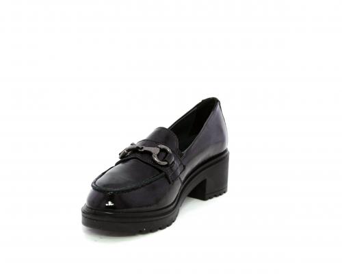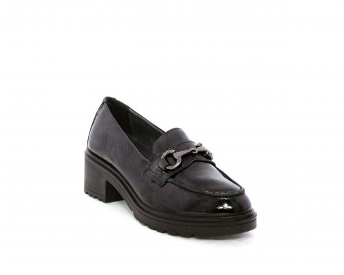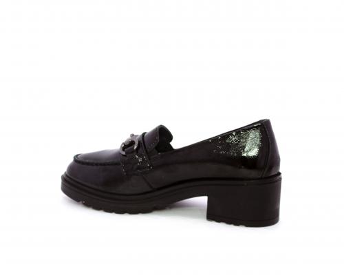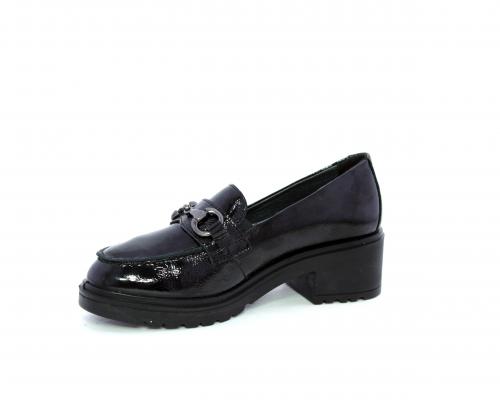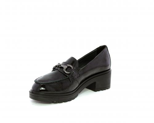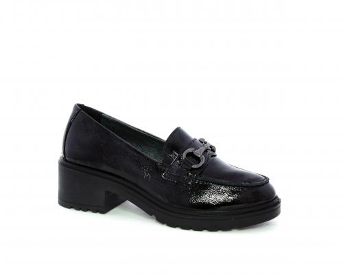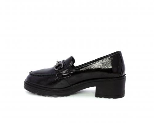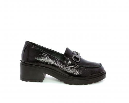 Mocassino in vernice, con doppio elastico sul collo del piede, sottopiede e fodera interna in pelle, fusbet estraibile.