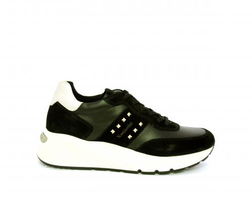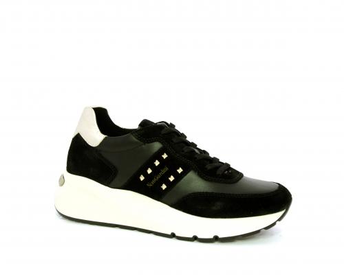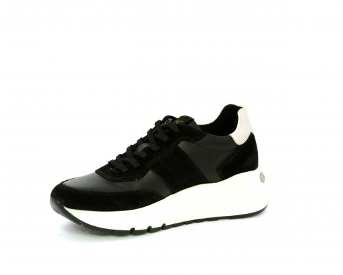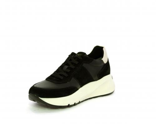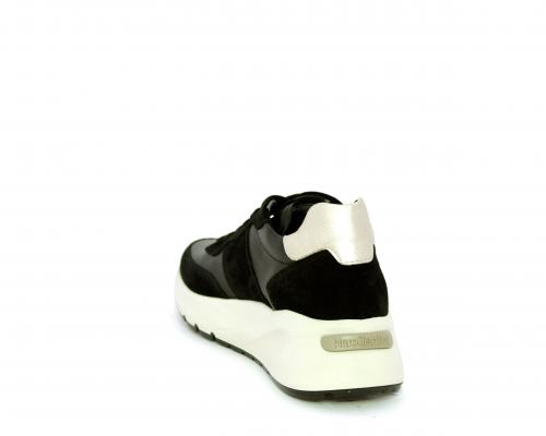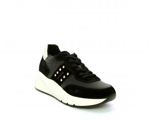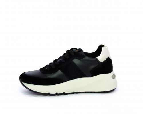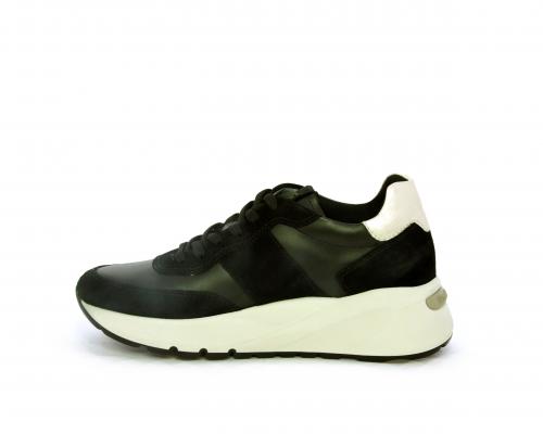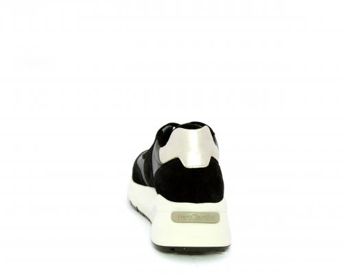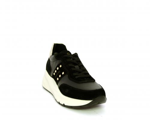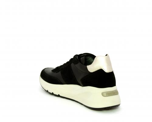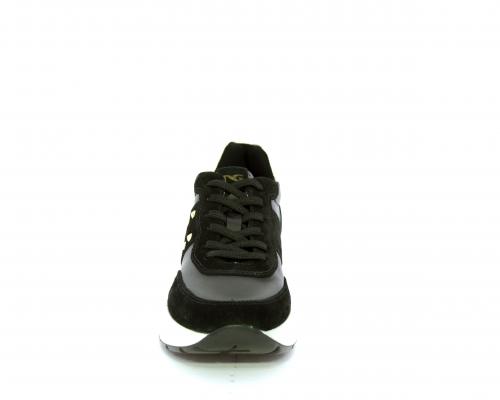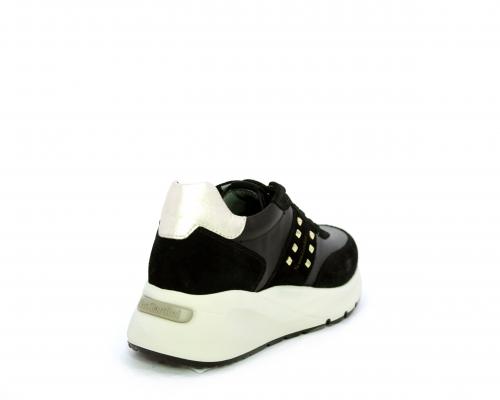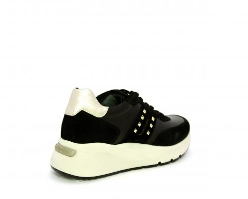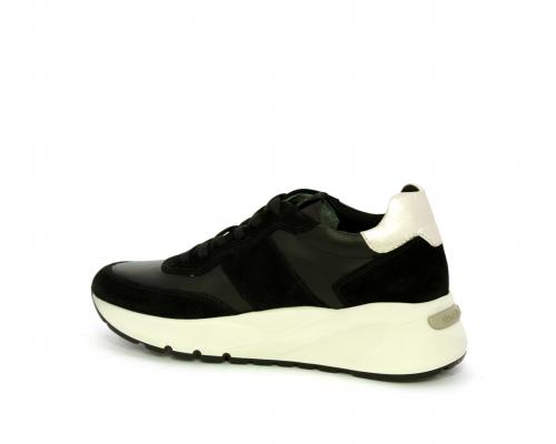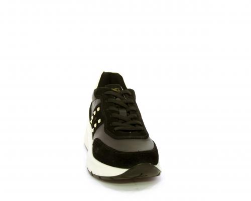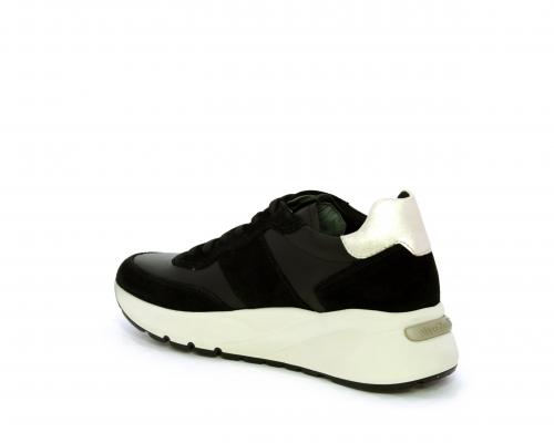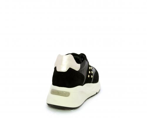 Sneakers allacciata, tomaia in pelle con inserti in camoscio e rifiniture color oro, sottopiede e fodera interna in pelle, fusbet estraibile con sistema DryGo, che svolge una doppia azione assorbe l'umidità quando la scarpa è indossata e si asciuga rapidamente quando si toglie la calzatura.