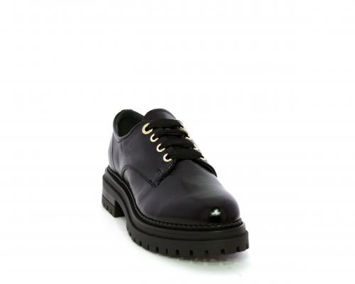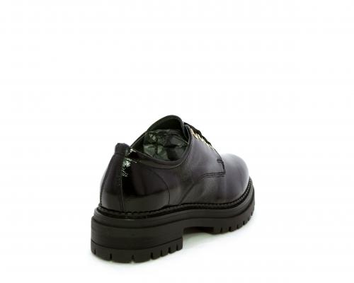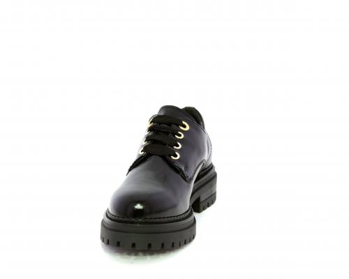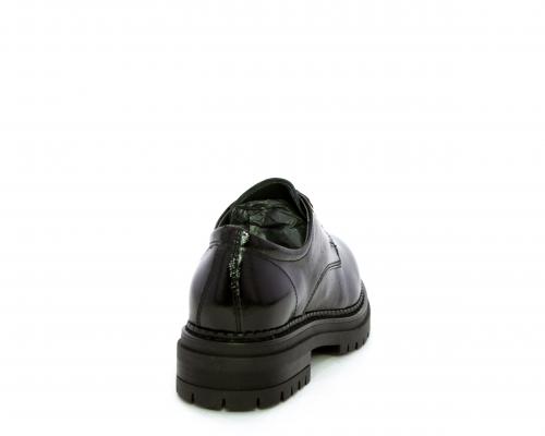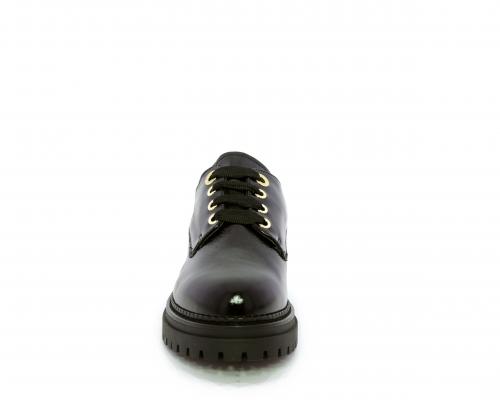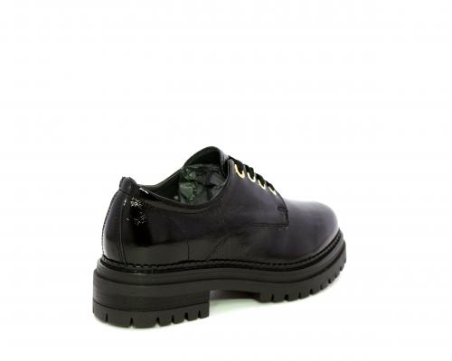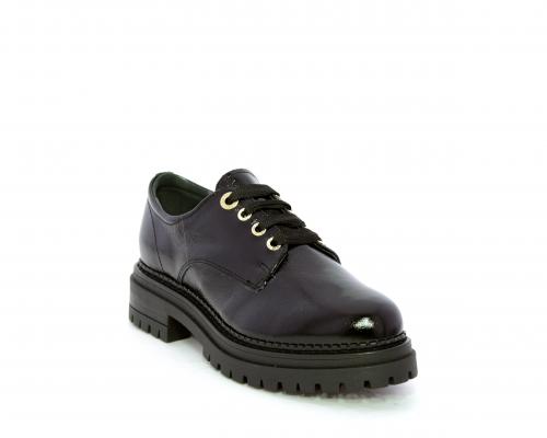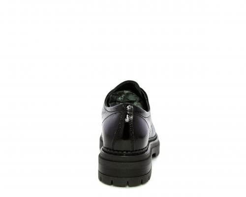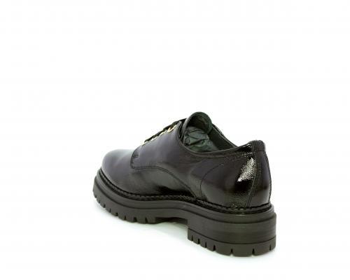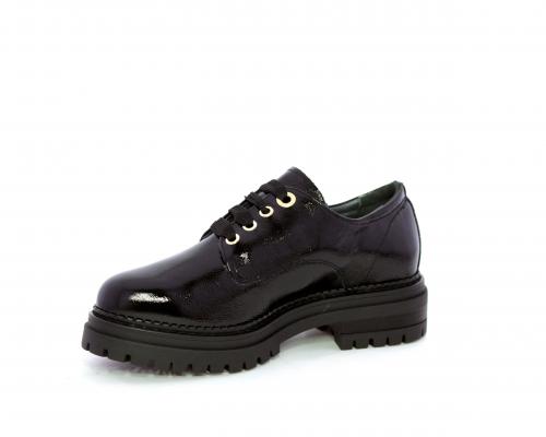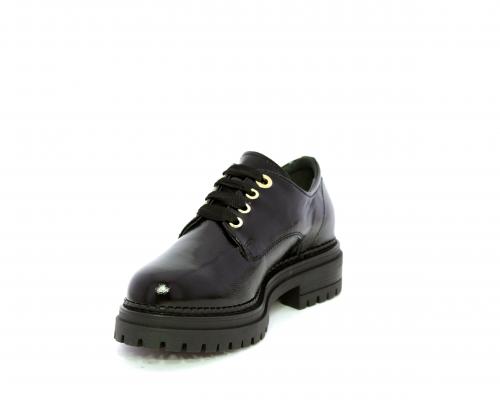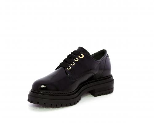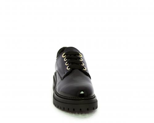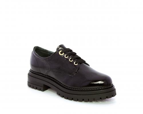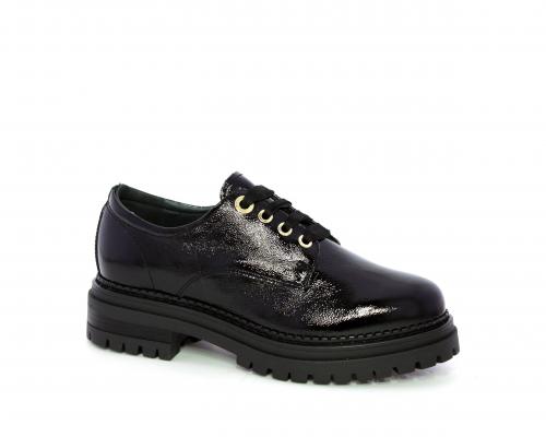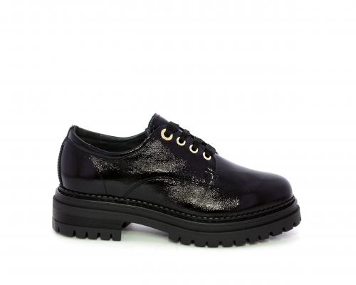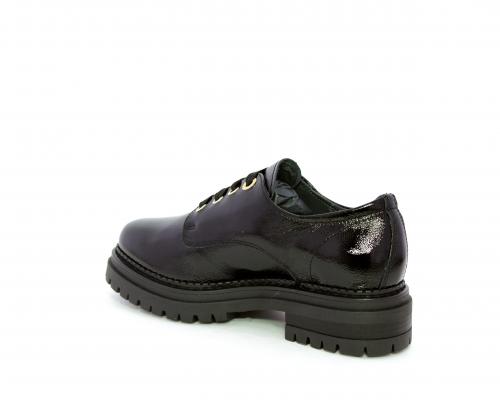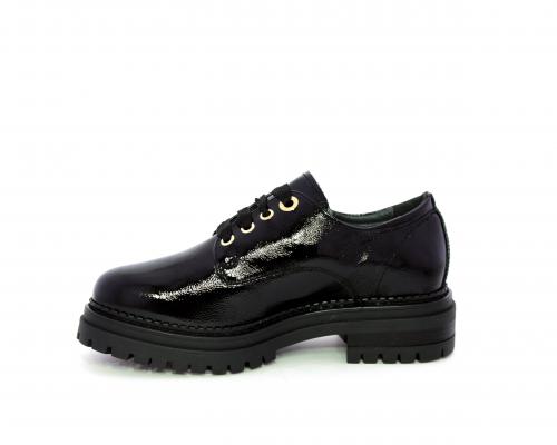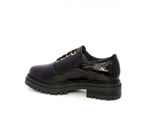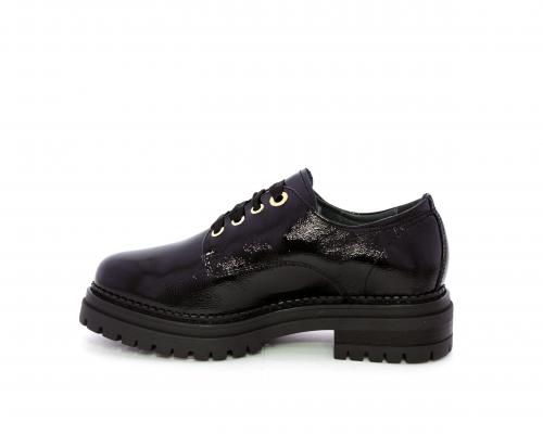 Mocassino in vernice con fibbia sul collo del piede, sottopiede e fodera interna in pelle, fusbet con memory.