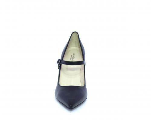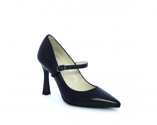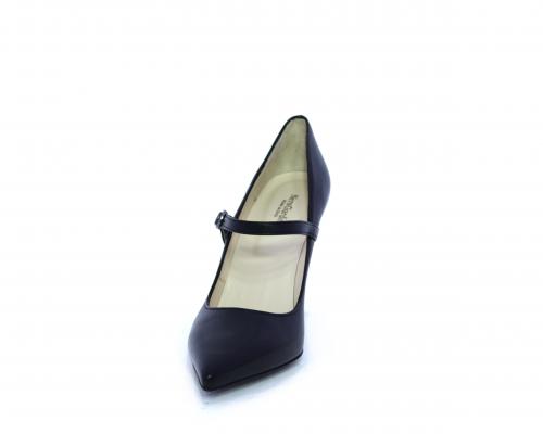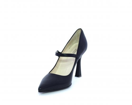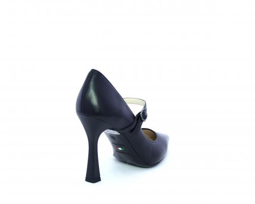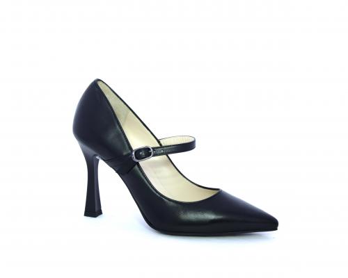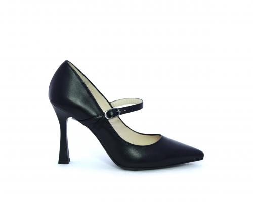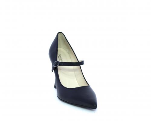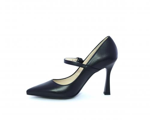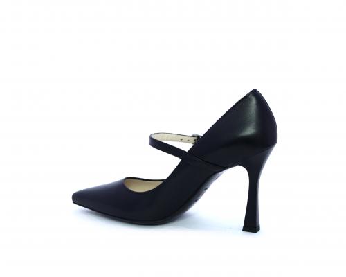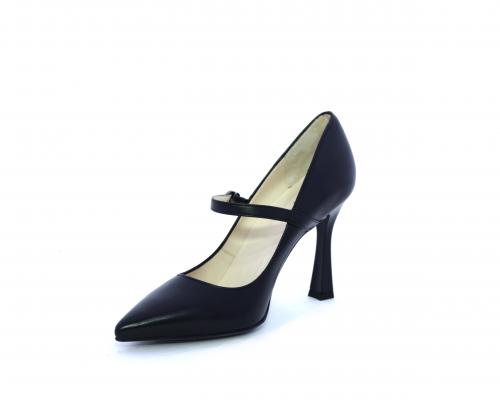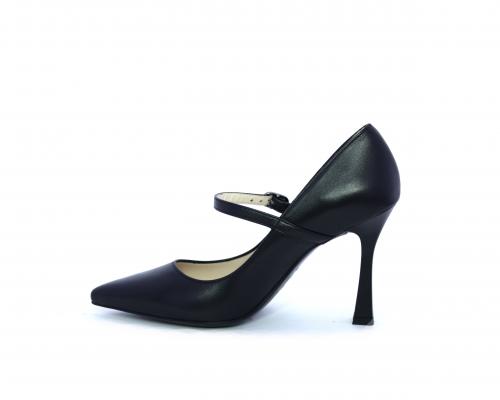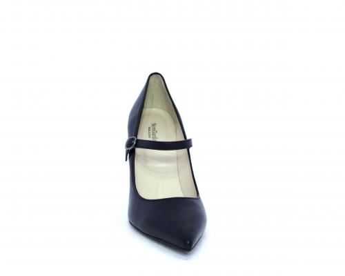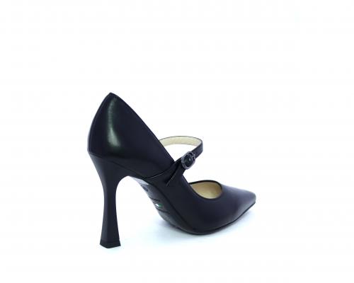 Decollettè in pelle con cinturino sul collo dl piede, tacco a rocchetto, sottopiede e fodera interna in pelle, plantare anatomico.