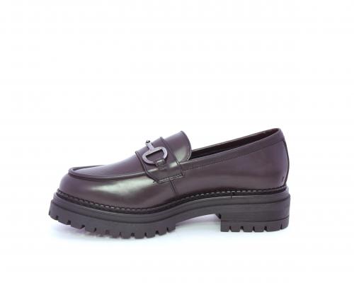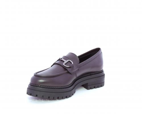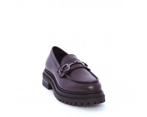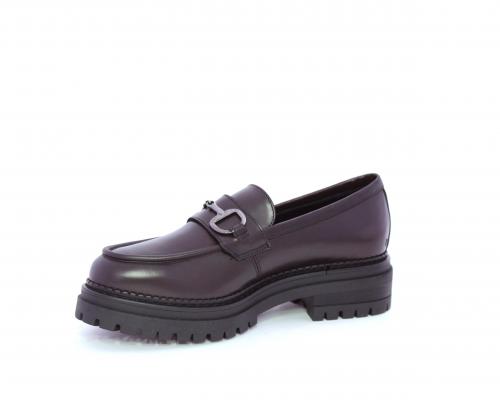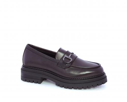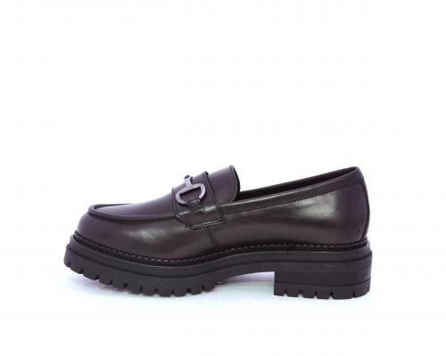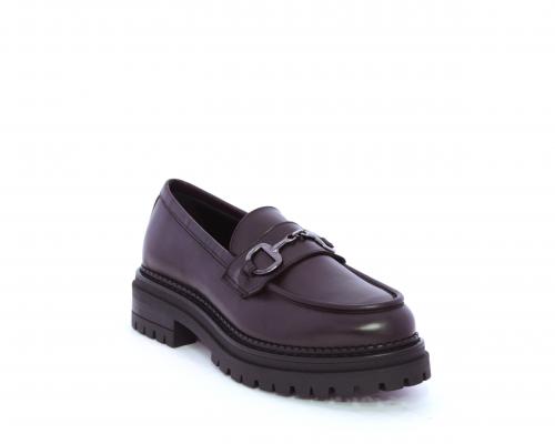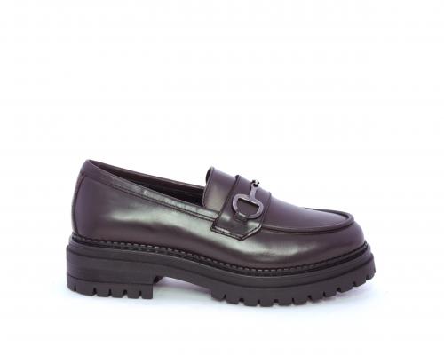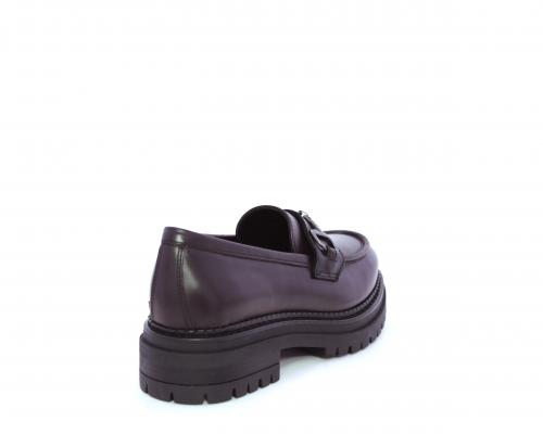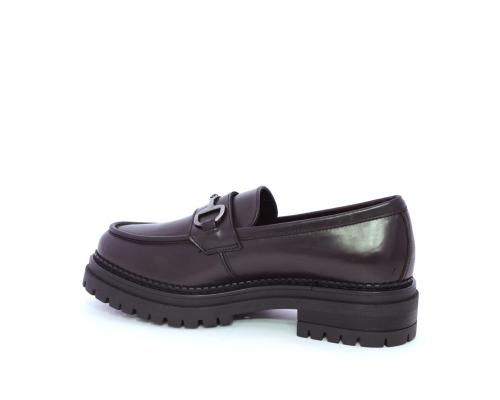 Mocassino in pelle con fibbia acciaio sul collo del piede, sottopiede e fodera interna in pelle, fusbet con memory.