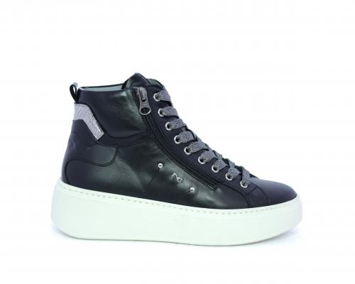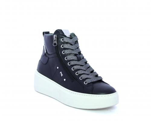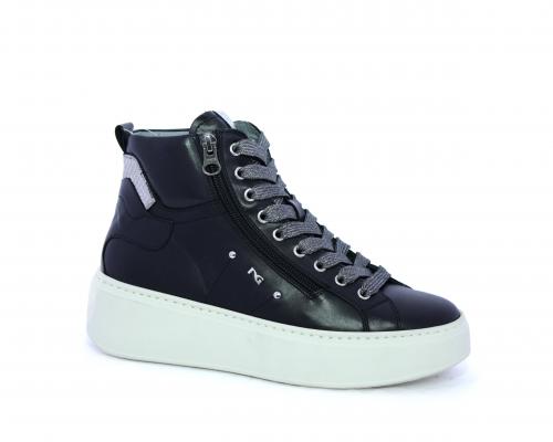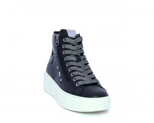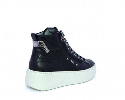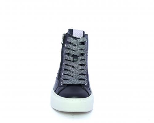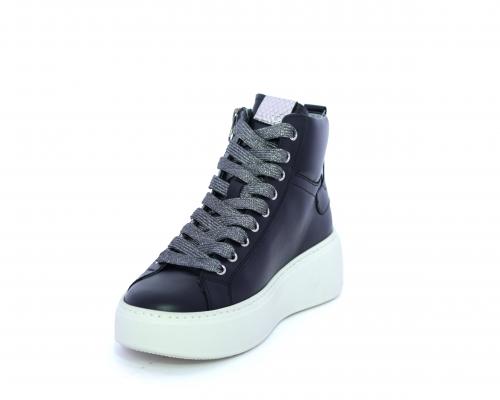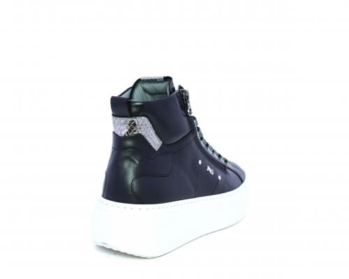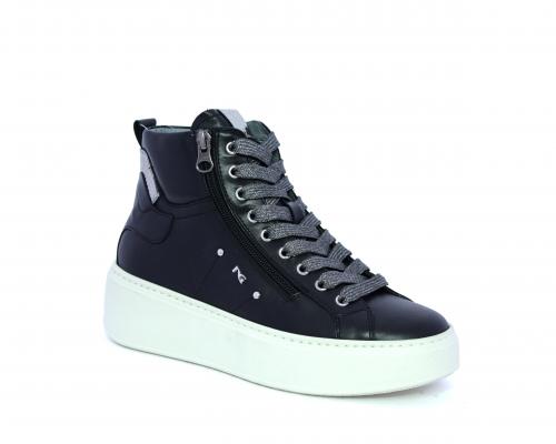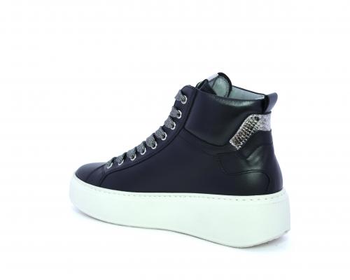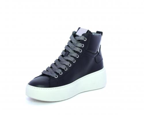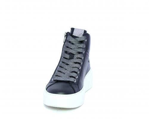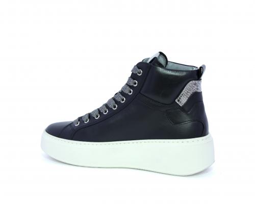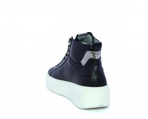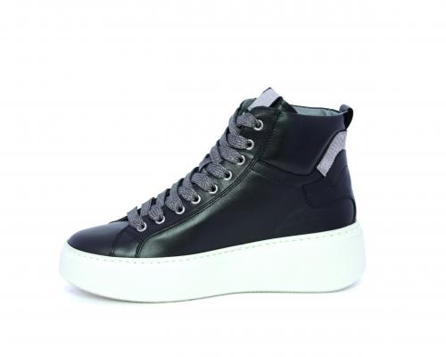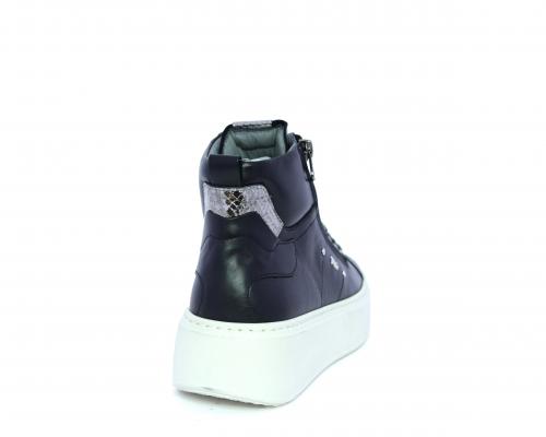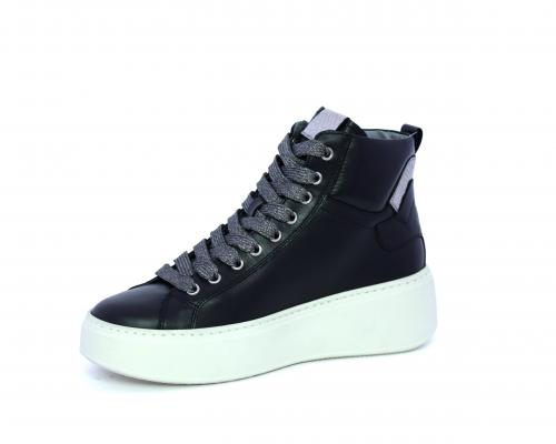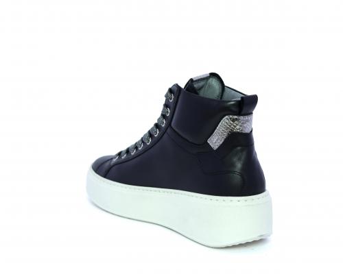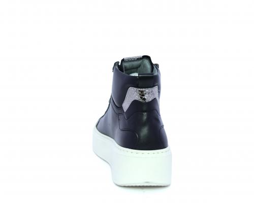 Sneaker alta alla caviglia con lacci e chiusura laterale per facilitare la calzata, tomaia in pelle con rifiniture in acciaio, sottopiede e fodera interna in pelle, fusbet estraibile con sistema DryGo, che svolge una doppia azione assorbe l'umidità quando la scarpa è indossata e si asciuga rapidamente quando si toglie la calzatura.