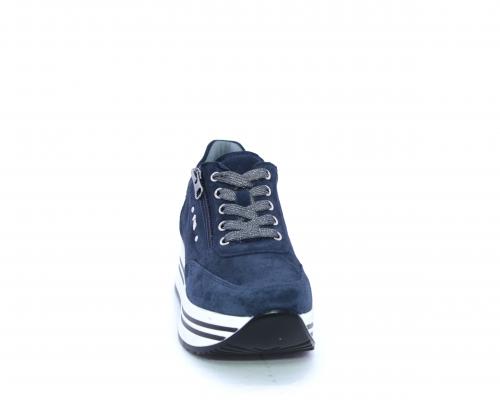 Sneakers allacciata con chiusura laterale per facilitare la calzata, tomaia in camoscio con rifiniture in acciaio, sottopiede e fodera interna in pelle, fusbet estraibile con sistema DryGo, che svolge una doppia azione assorbe l'umidità quando la scarpa è indossata e si asciuga rapidamente quando si toglie la calzatura.