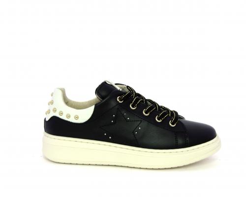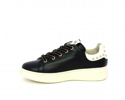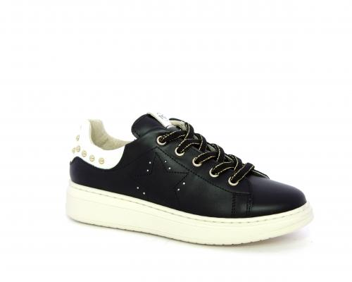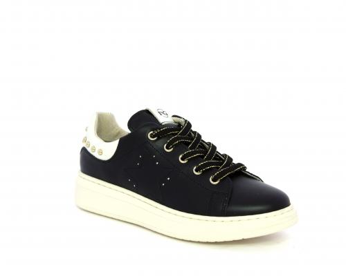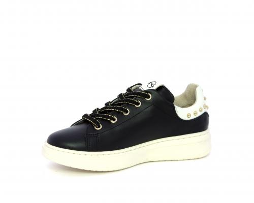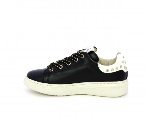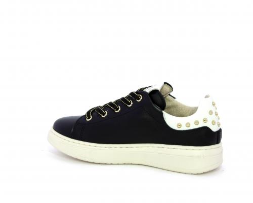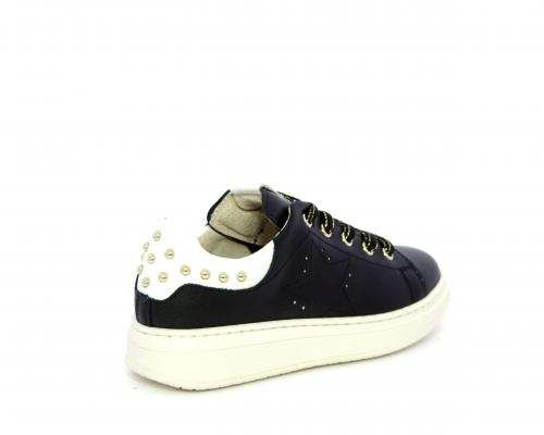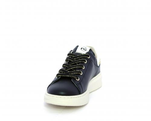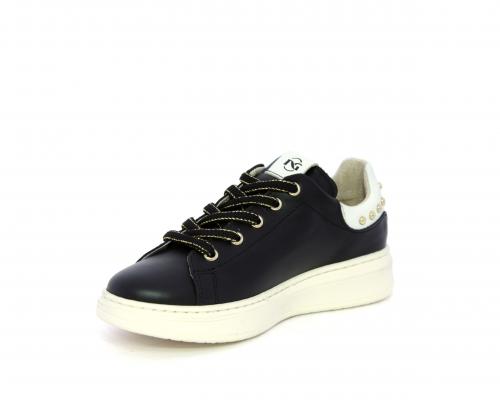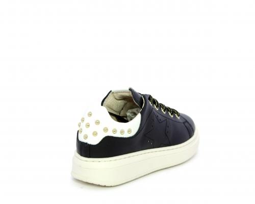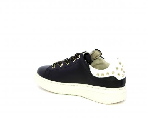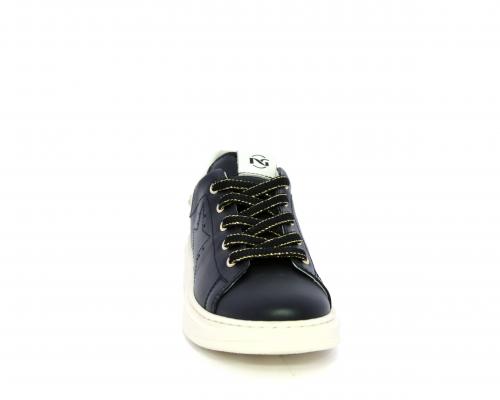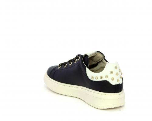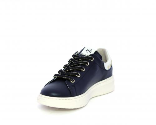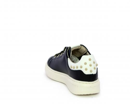 Sneakers con lacci, tomaia in pelle con rifiniture color platino, sottopiede e fodera interna in pelle, fusbet estraibile.