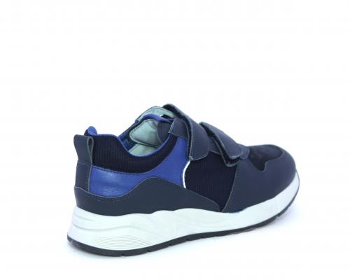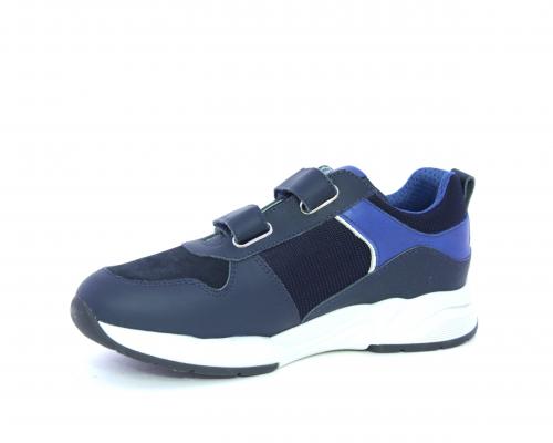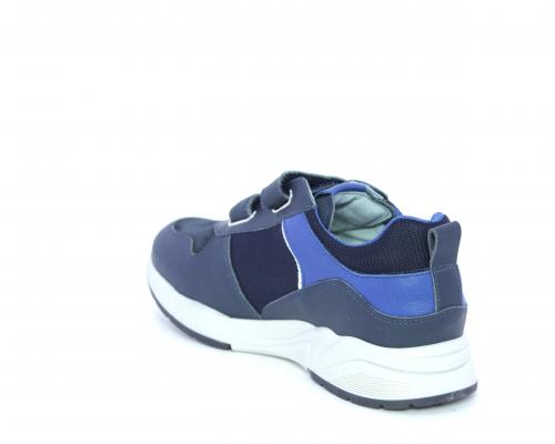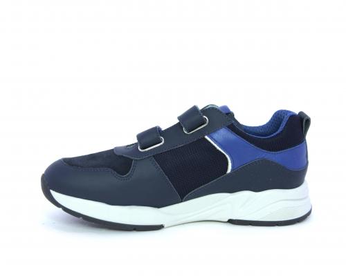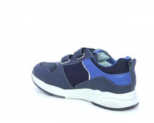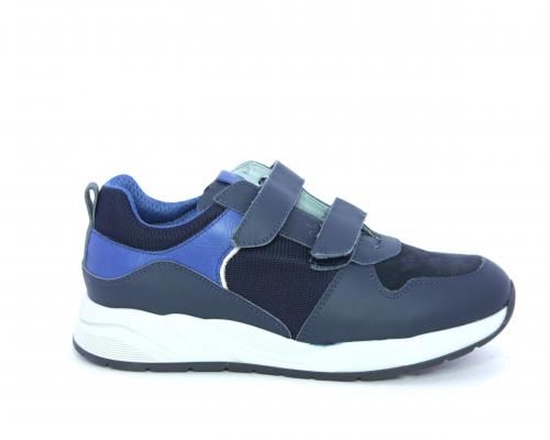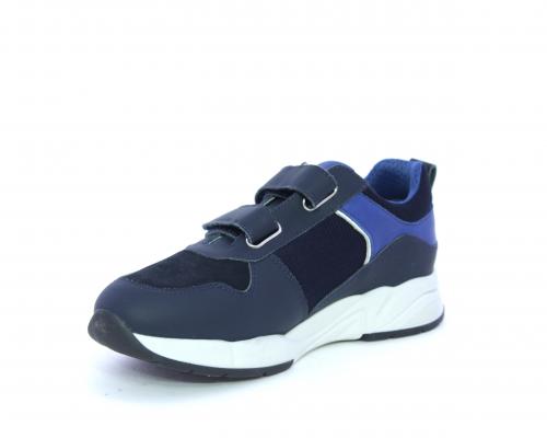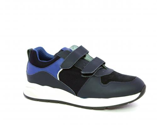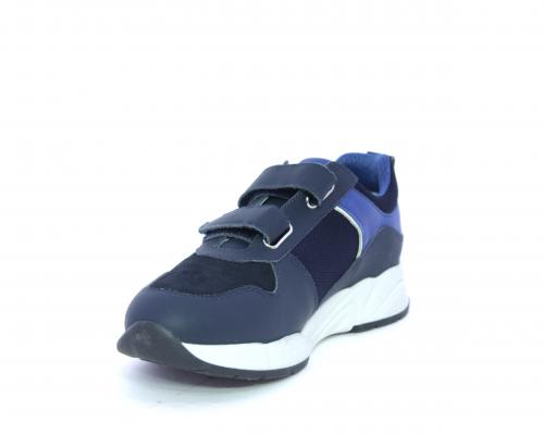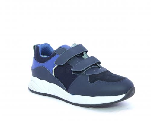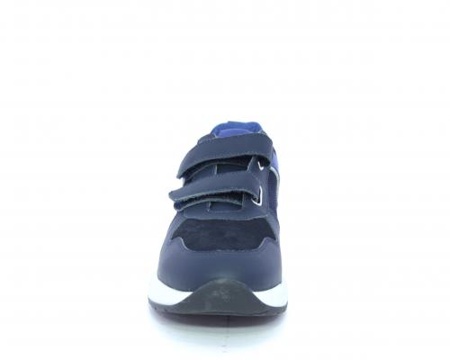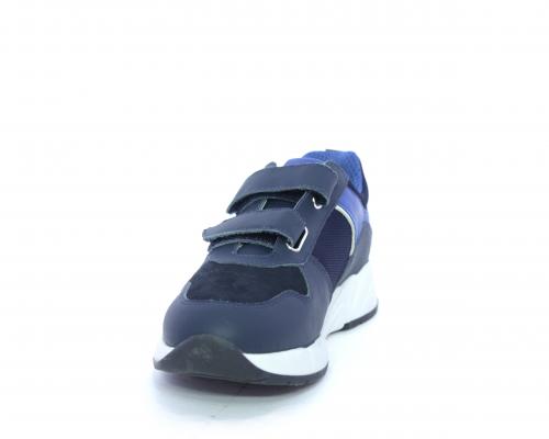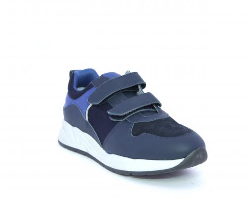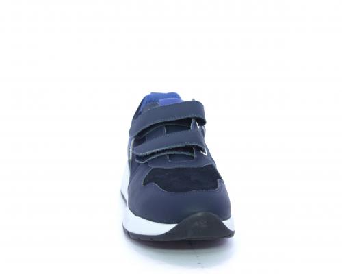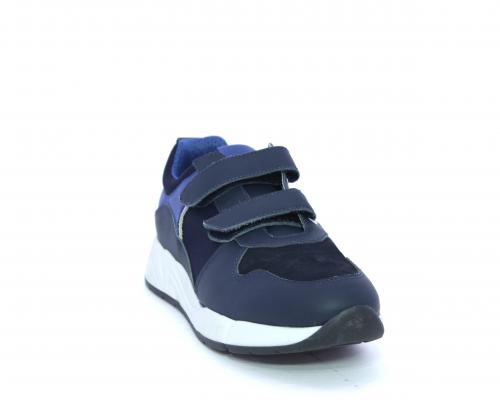 Sneakers con doppio velcro, tomaia in pelle con inserti in camoscio e tessuto, cuscinetto in tessuto nella parte interna intorno alla caviglia, sottopiede e fodera interna in pelle.