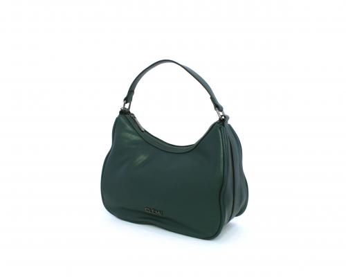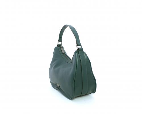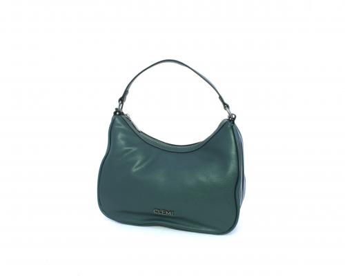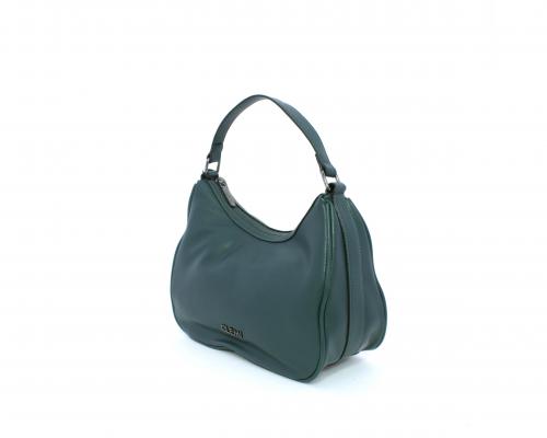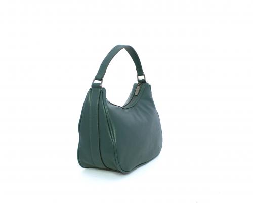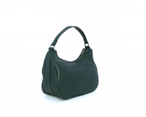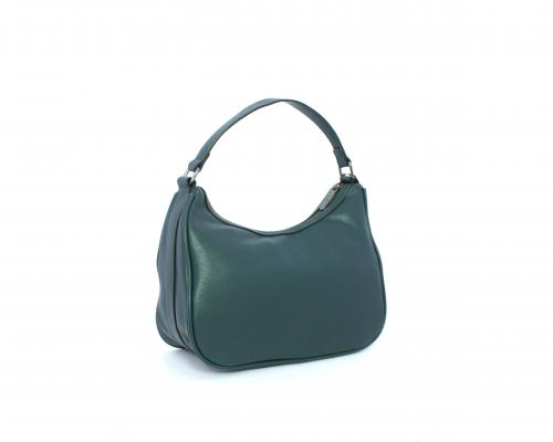 Borsa monospalla a forma di mezzaluna, chiusura della borsa con zip, fodera interna in tessuto.