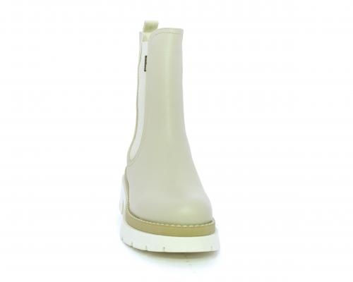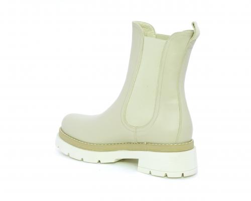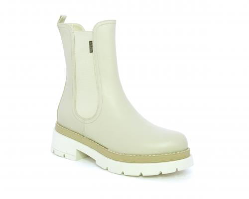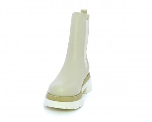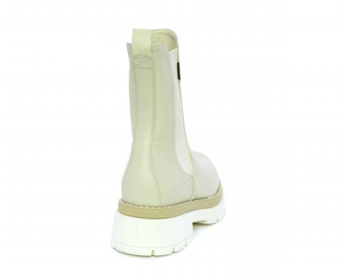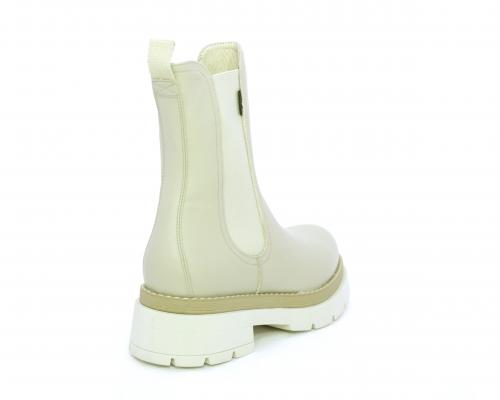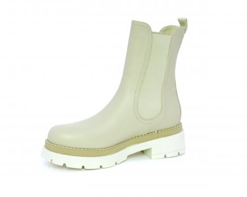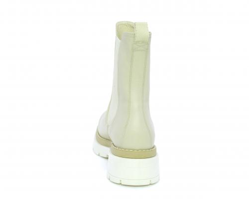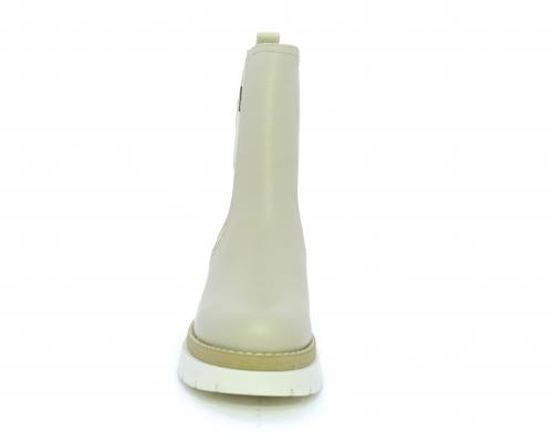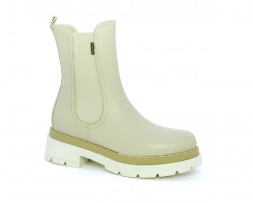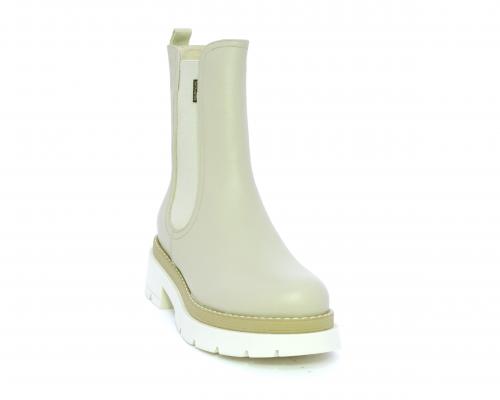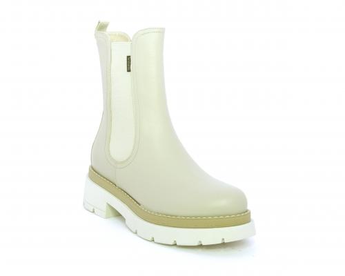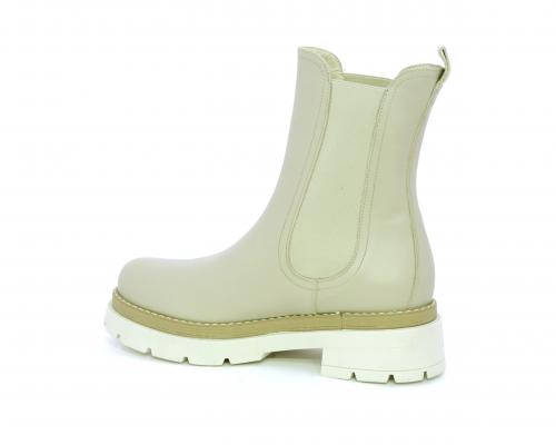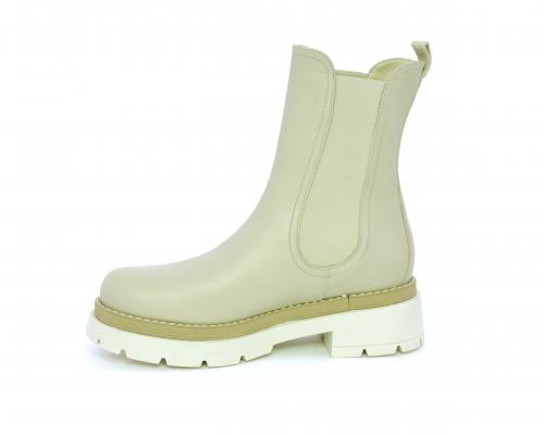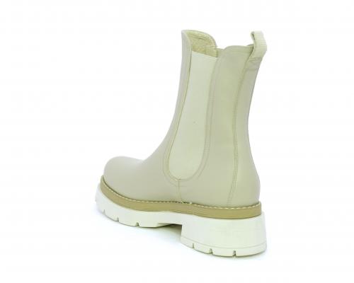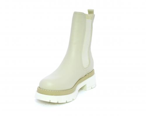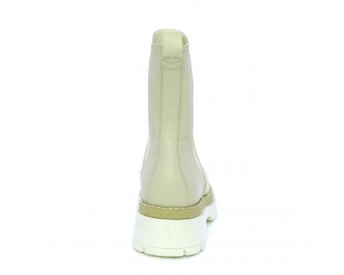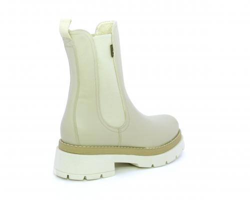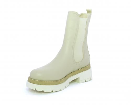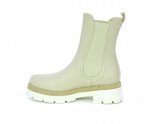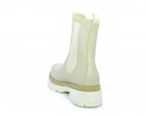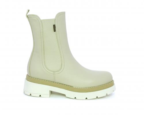 Tronchetto in pelle con tacco e plateaux in gomma con doppio gioco di colore, elastico su entrambi i lati per facilitare la calzata, sottopiede e fodera interna in pelle, fusbet anatomico.