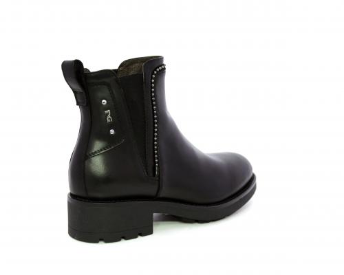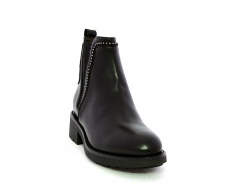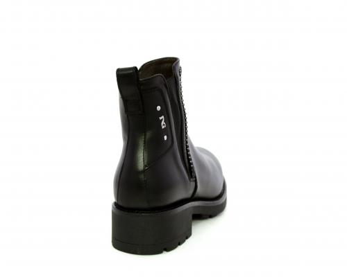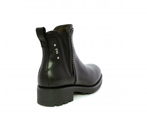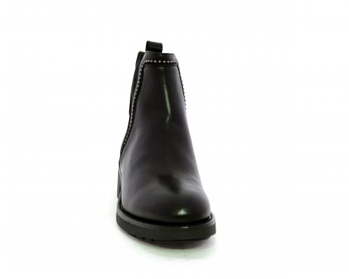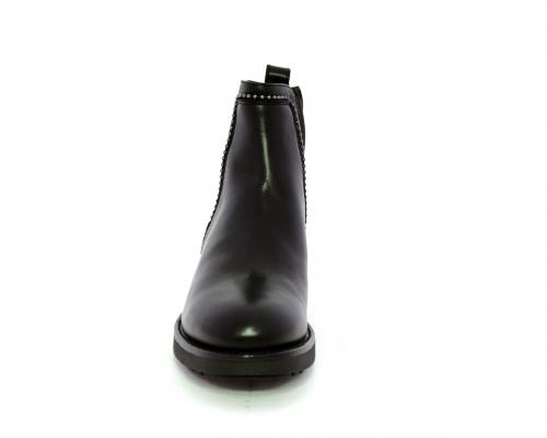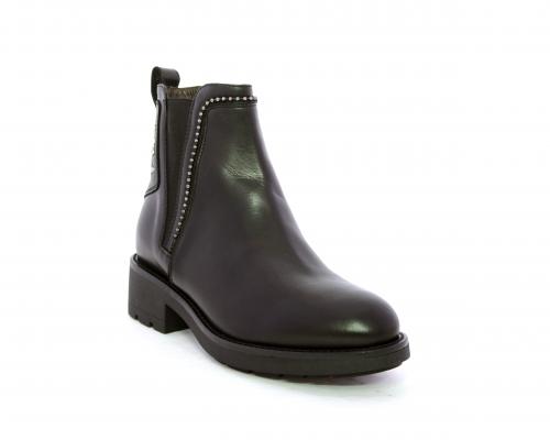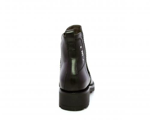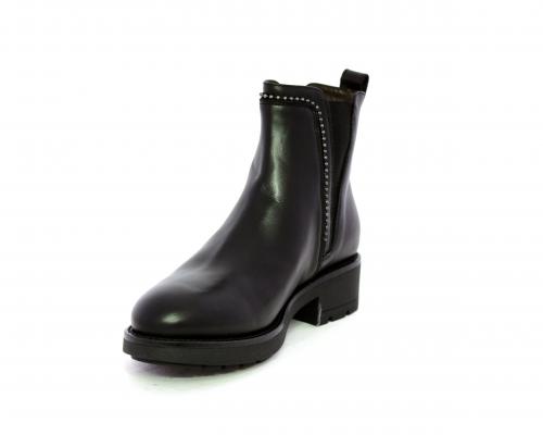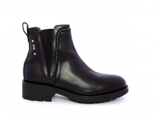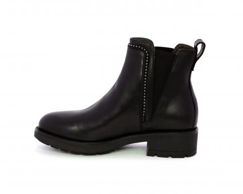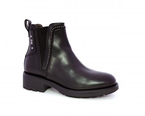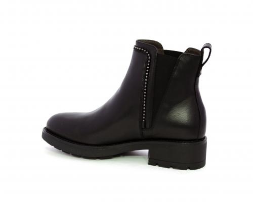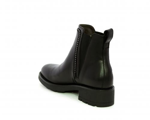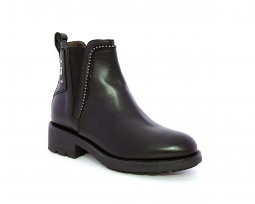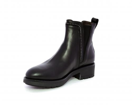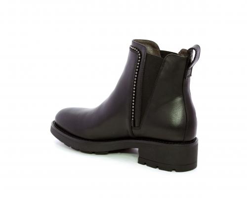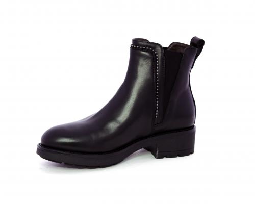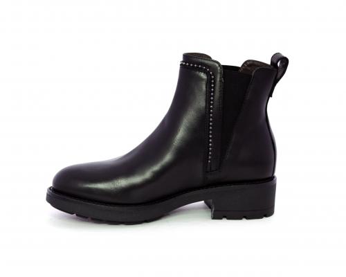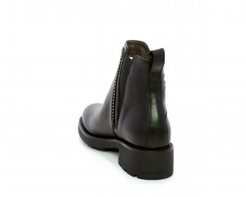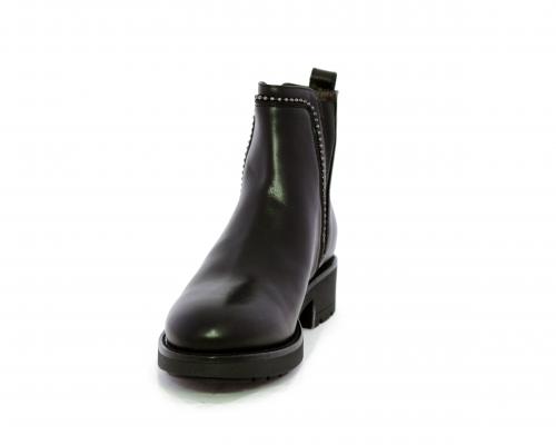Tronchetto con doppio elastico da entrambi i lati, tomaia in pelle con rifiniture in acciaio, sottopiede e fodera interna in pelle, fusbet anatomico.