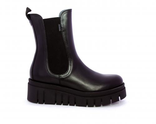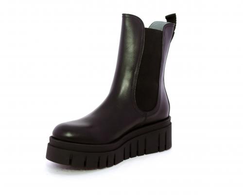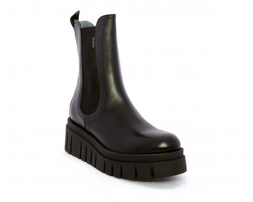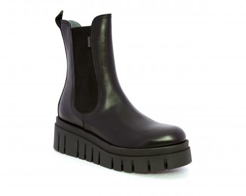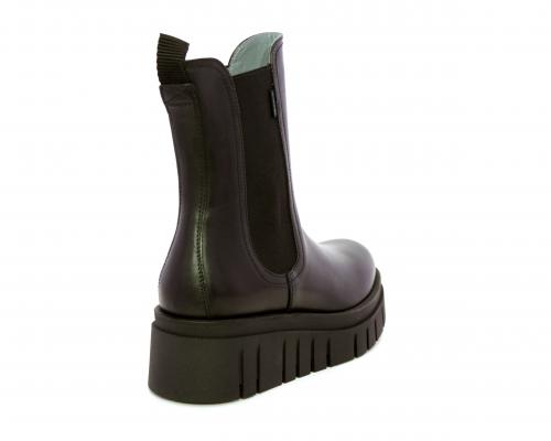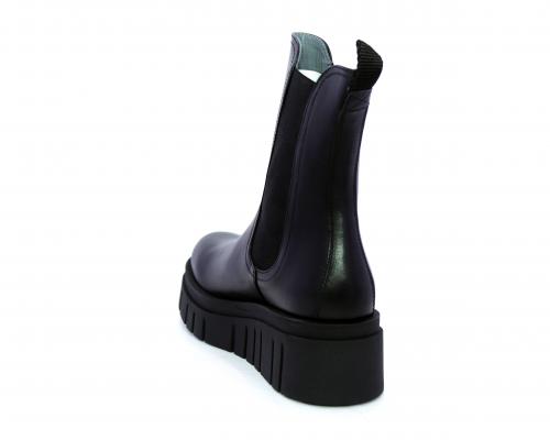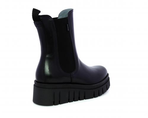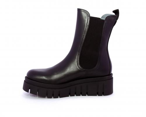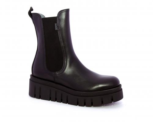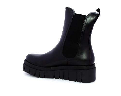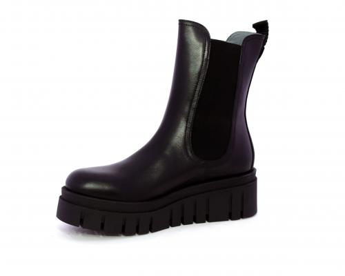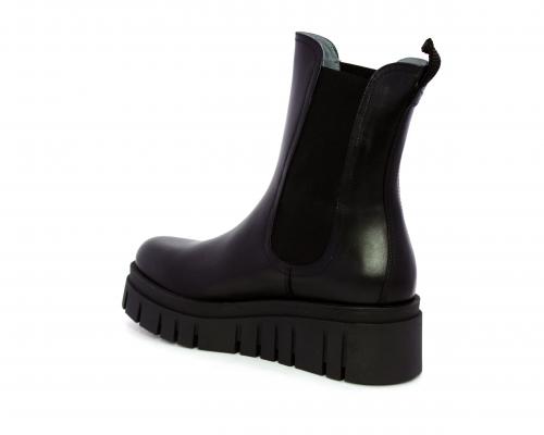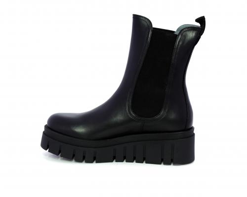 Stivaletto in pelle con zeppa alta, doppio elastico su entrambi i lati per facilitare la calzata, sottopiede e fodera interna in pelle, fusbet anatomico.