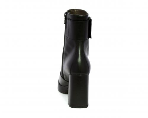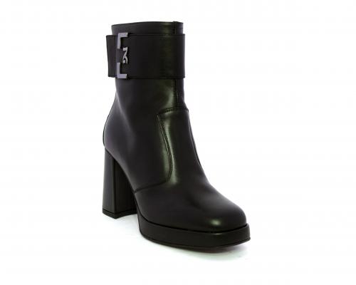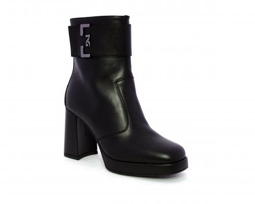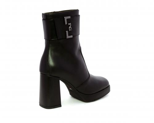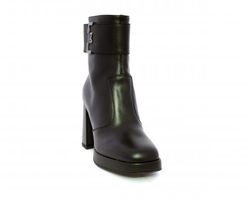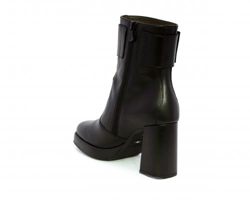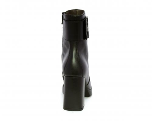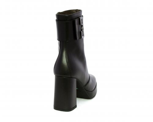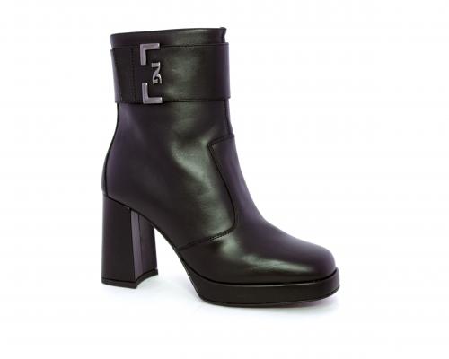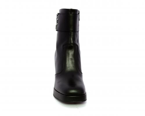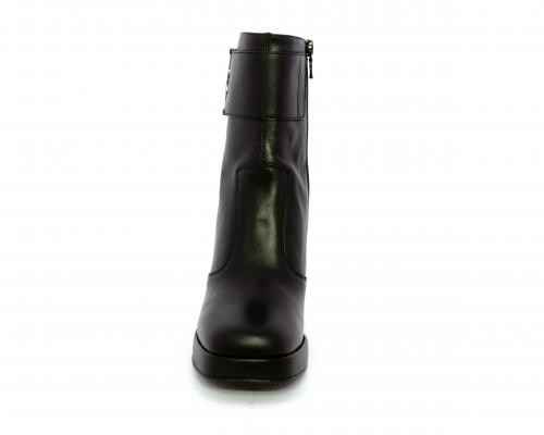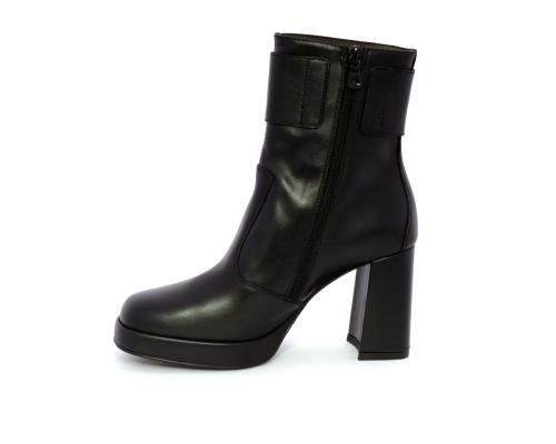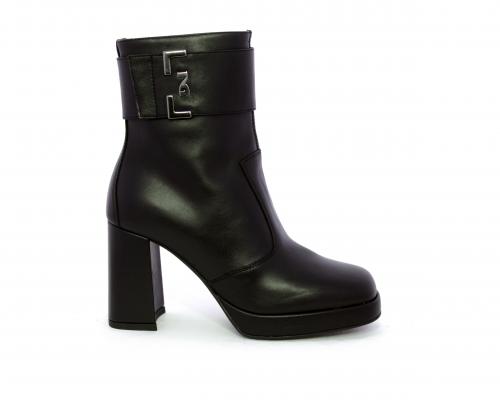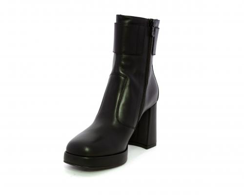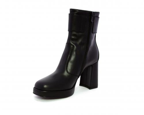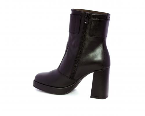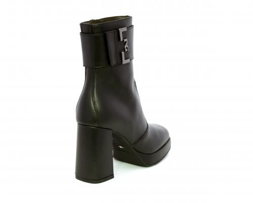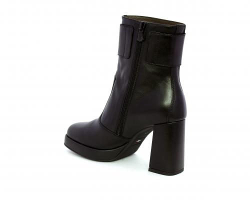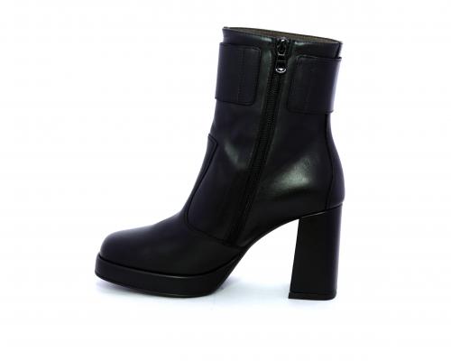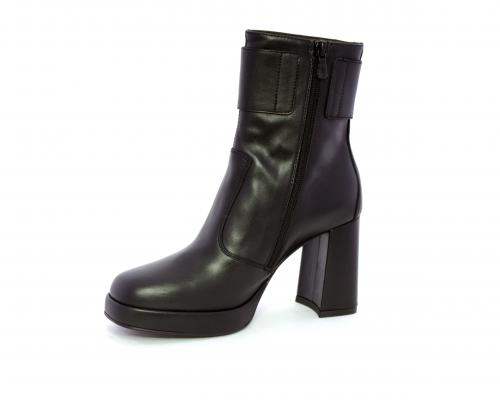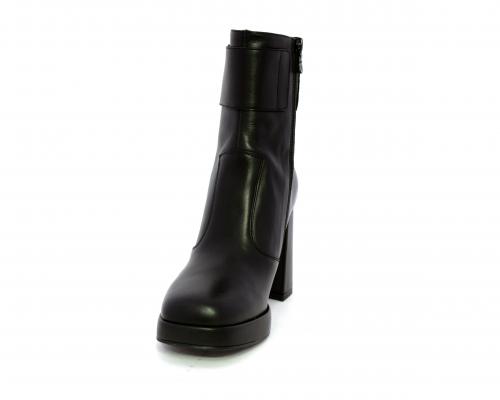 Tronchetto in pelle, tacco largo e plateux rivestiti in pelle, chiusura laterale, sottopiede e fodera interna in pelle, fusbet anatomico.