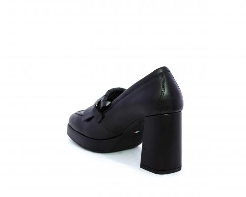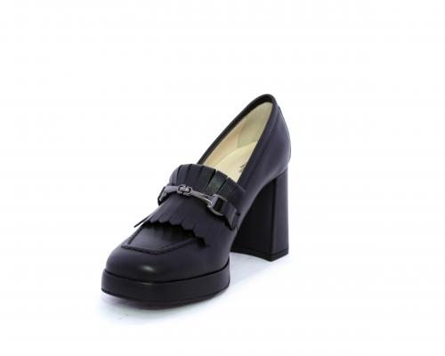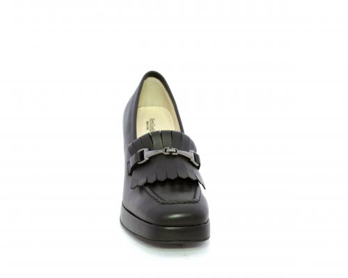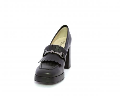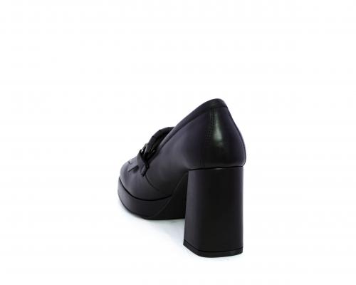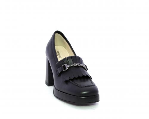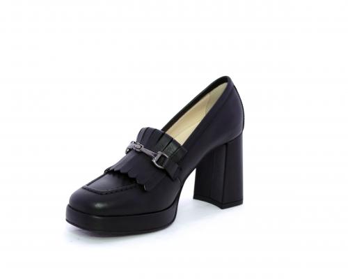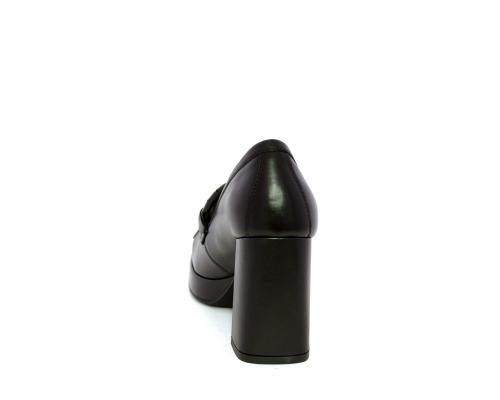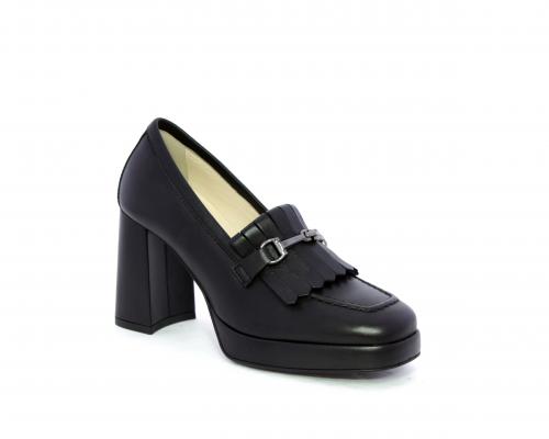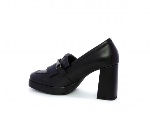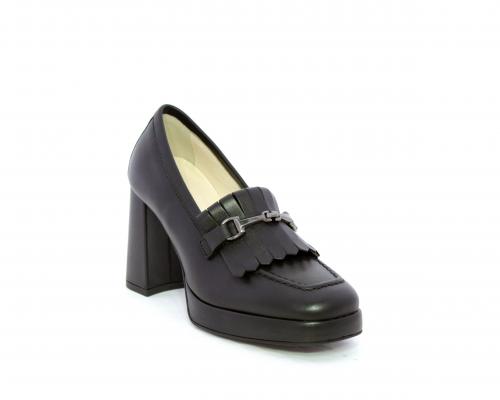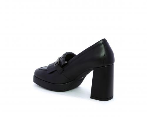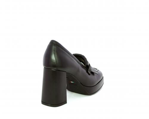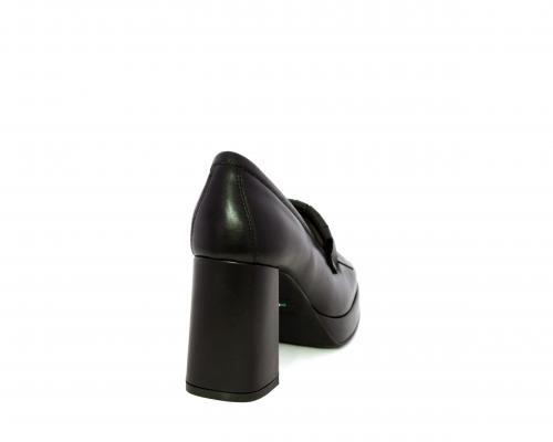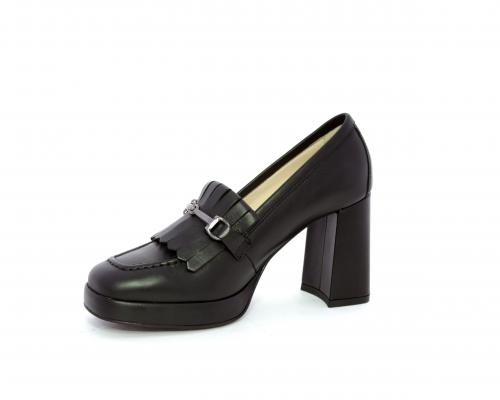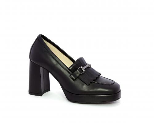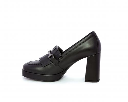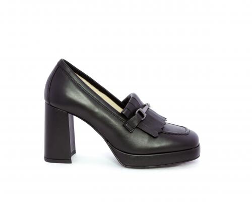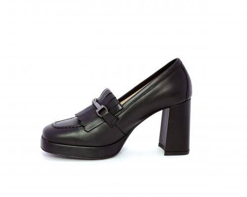 Mocassino in pelle con tacco largo e plateaux rivestiti in pelle, sottopiede e fodera interna in pelle, fusbet con memory.