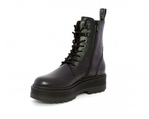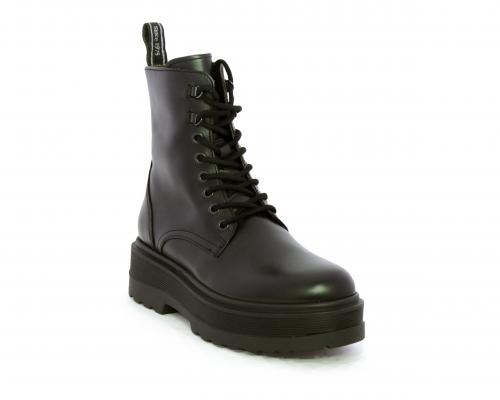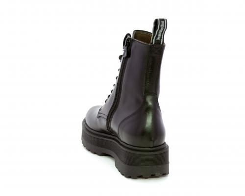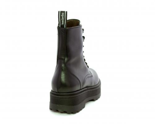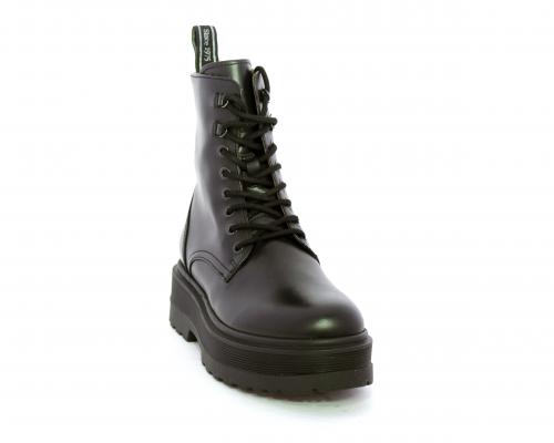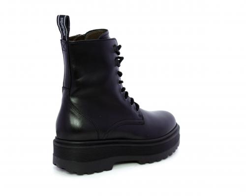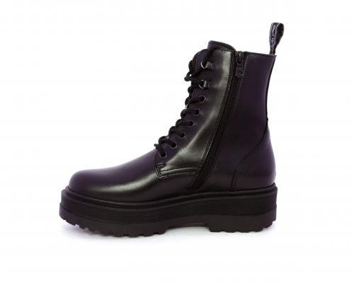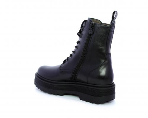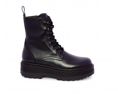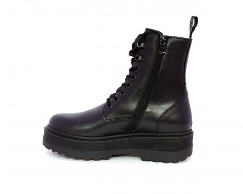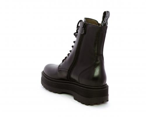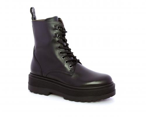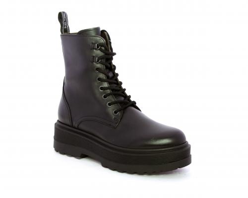 Anfibio allacciato con chiusura laterale per facilitare la calzata, tomaia in pelle, platform alto, sottopiede e fodera interna in pelle, fusbet estraibile con sistema DryGo, che svolge una doppia azione assorbe l'umidità quando si indossa la calzatura e si asciuga rapidamente quando si toglie la scarpa.
