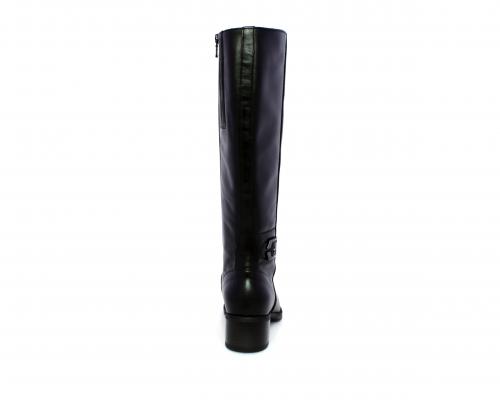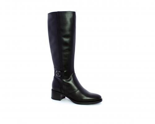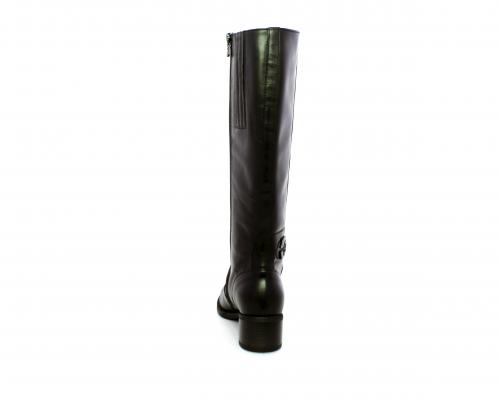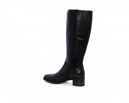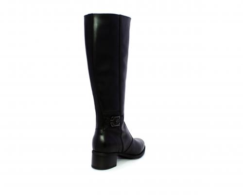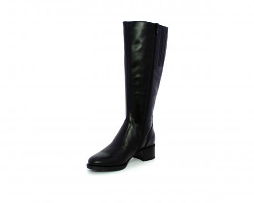 Stivale lungo, tomaia in pelle con chiusura laterale ed elastico rivestito in pelle vicino la chiusura per facilitare la calzata, sottopiede e fodera interna in pelle, fusbet anatomico estraibile.