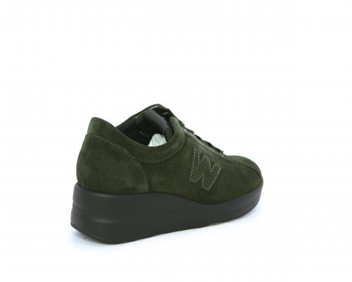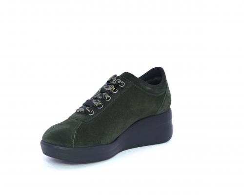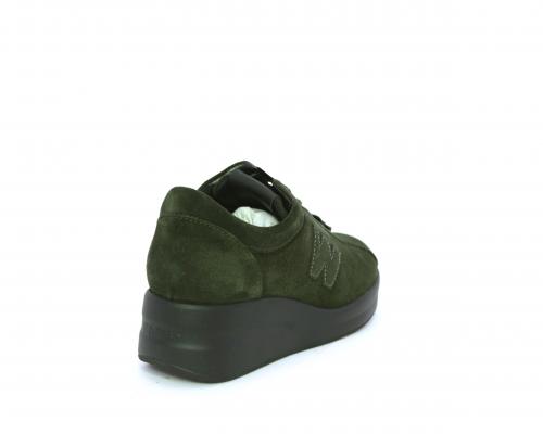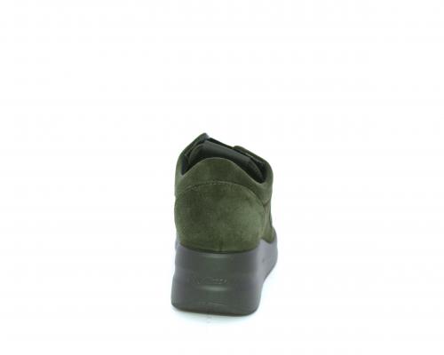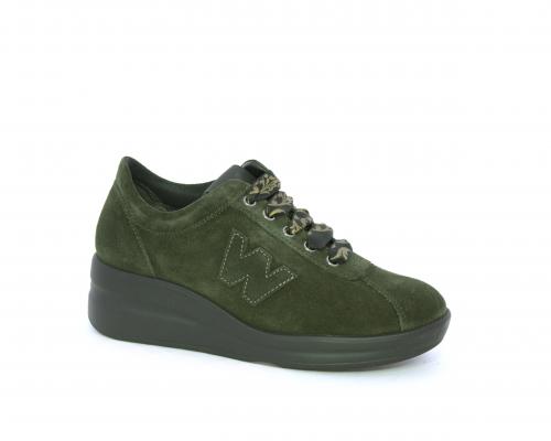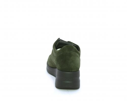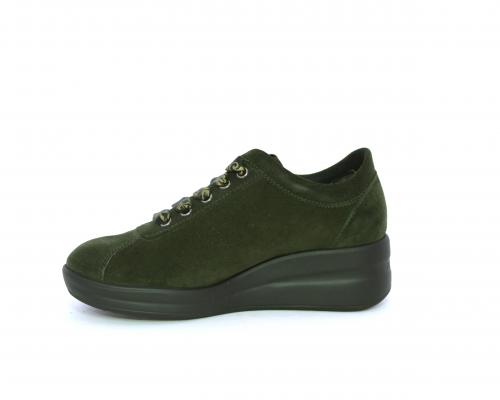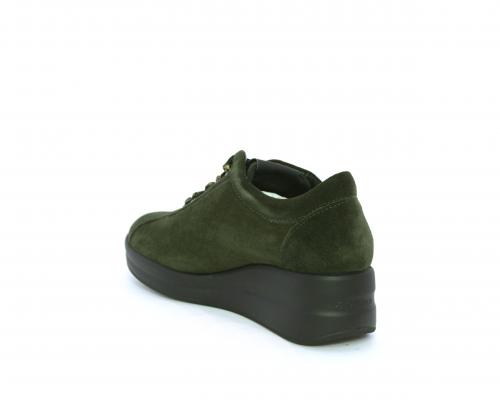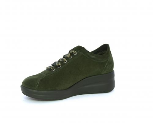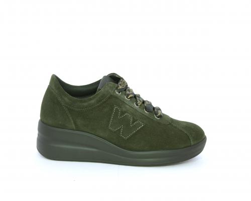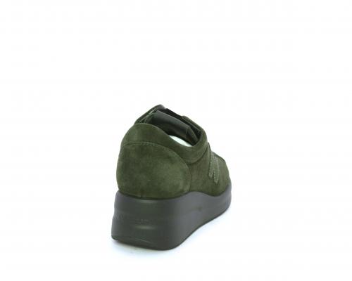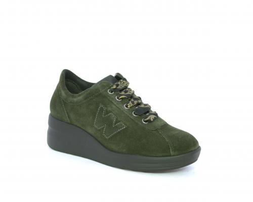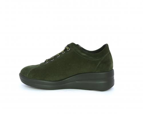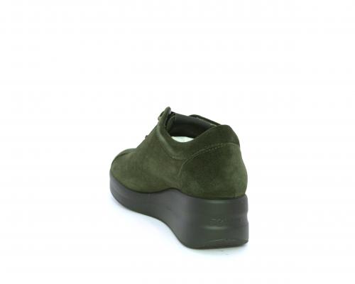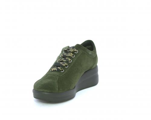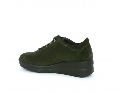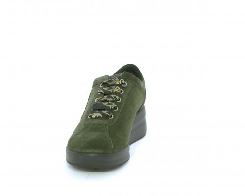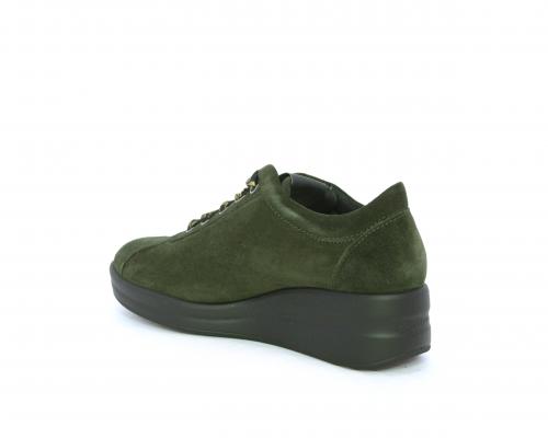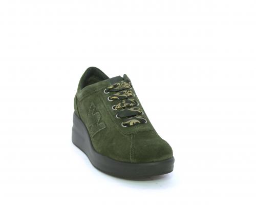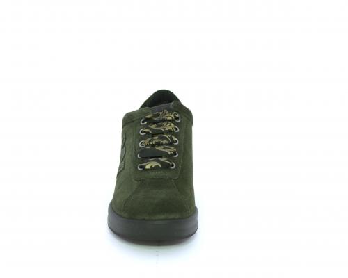Sneakers modello rucoline, tomaia in camocio con doppio laccio di ricambio, sottopiede in pelle, fodera interna in tessuto, fusbet anatomico estriabile.