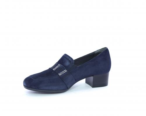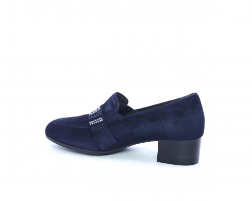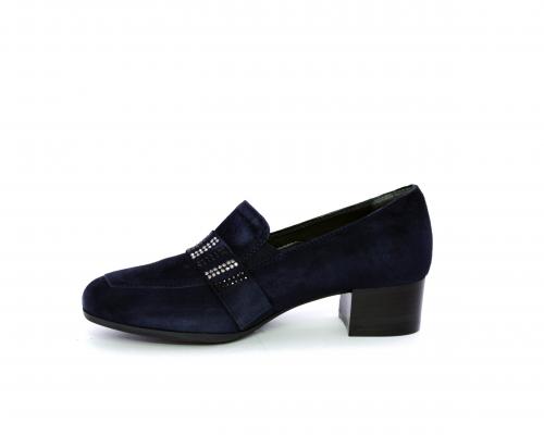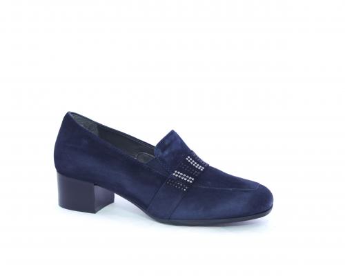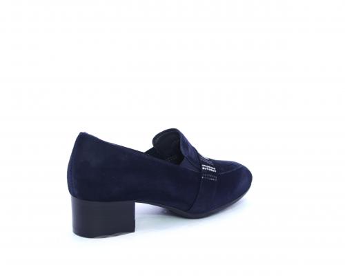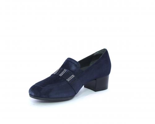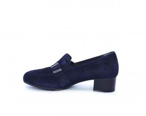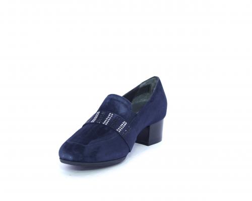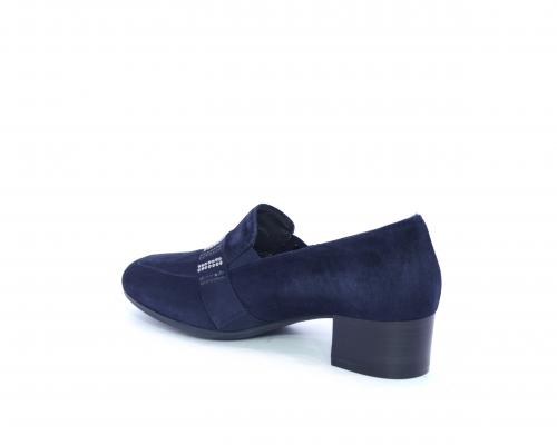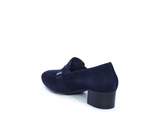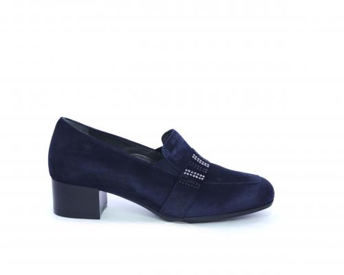 Mocassino in camoscio con elastico sul collo del piede, sottopiede e fodera interna in pelle, fusbet anatomico estraibile.