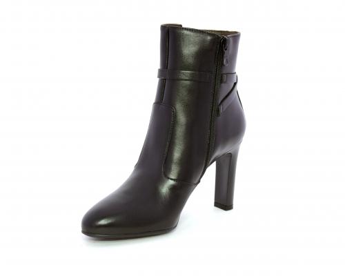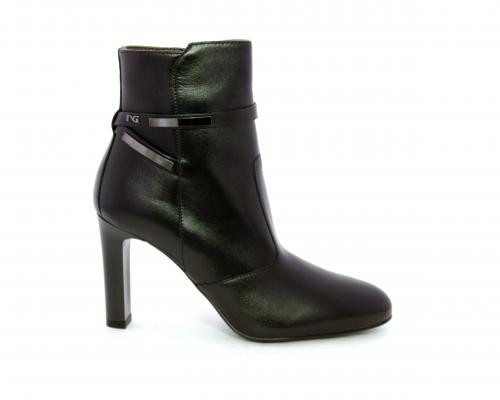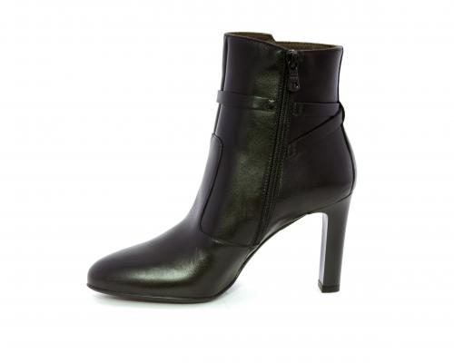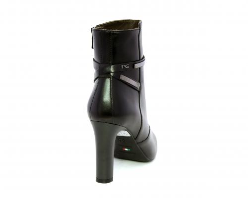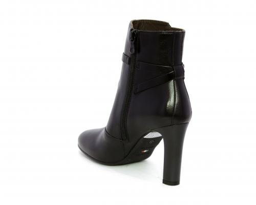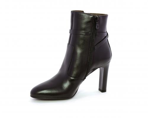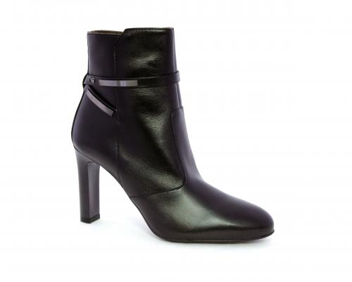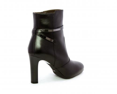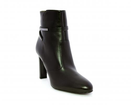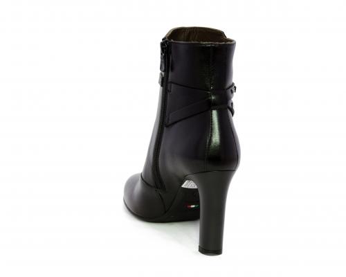 Tronchetto in pelle con inserti in acciaio, chiusura laterale, sottopiede e fodera interna in pelle, fusbet anatomico.