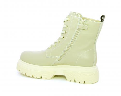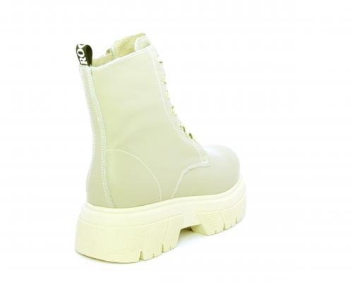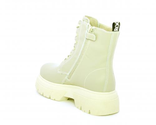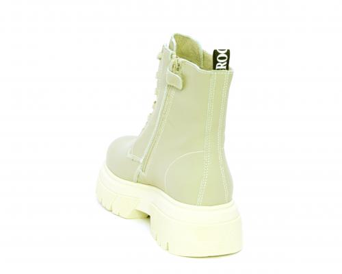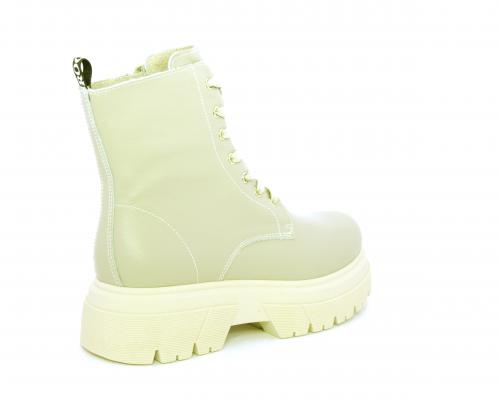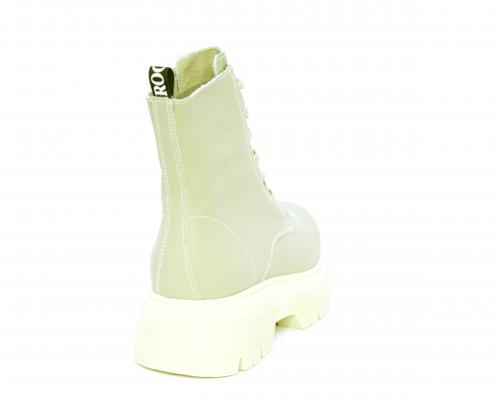 Anfibio con fondo alto, con lacci e chiusura laterale per facilitare la calzata, tomaia in pelle, sottopiede e fodera interna in pelle.