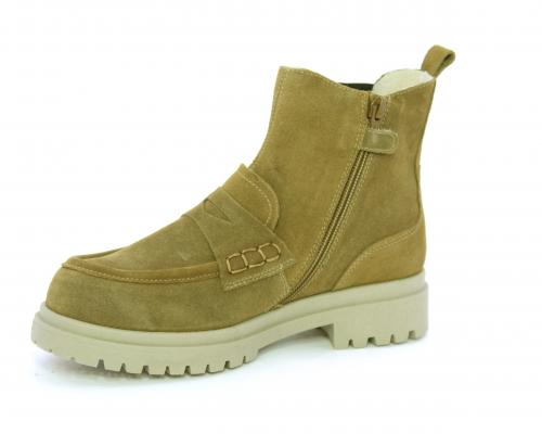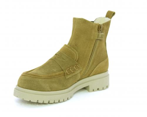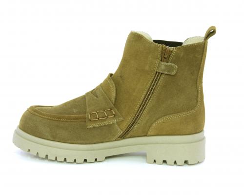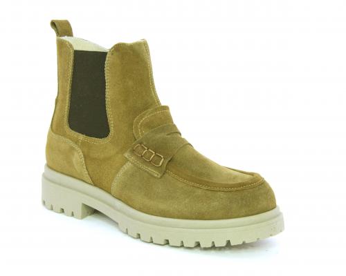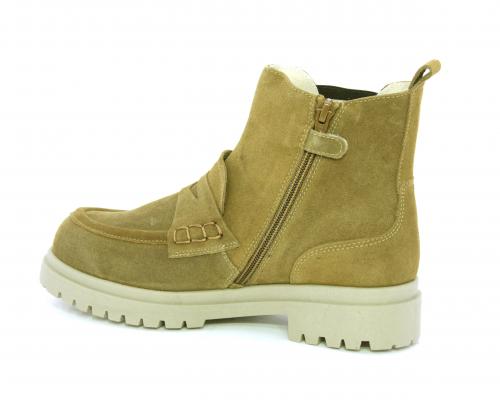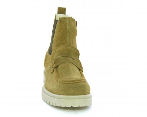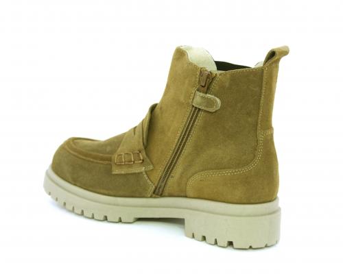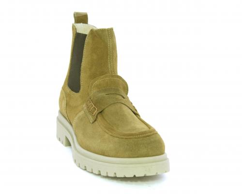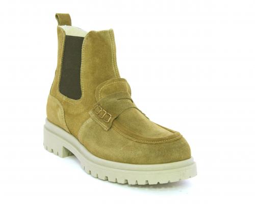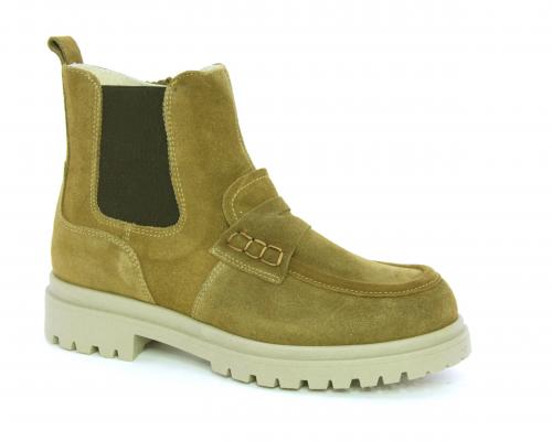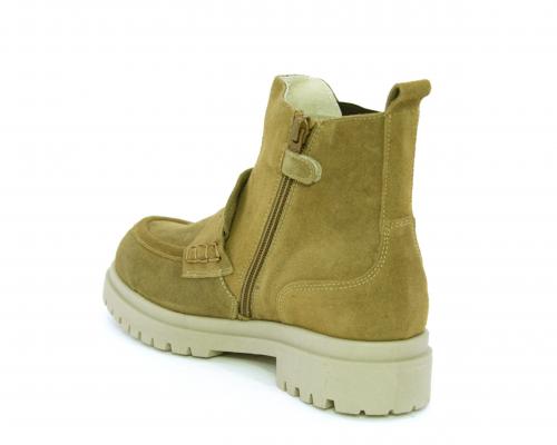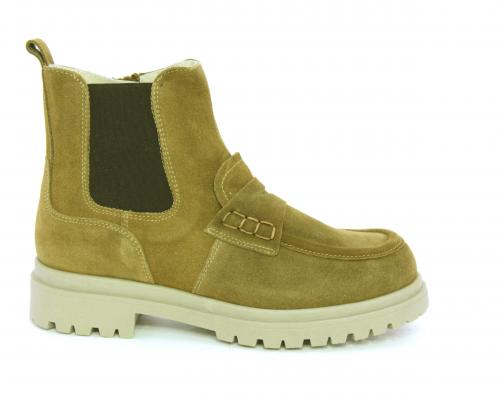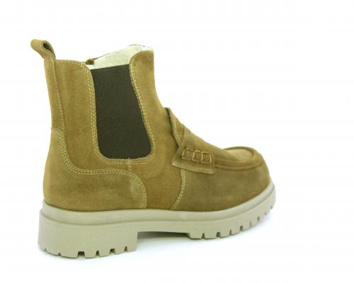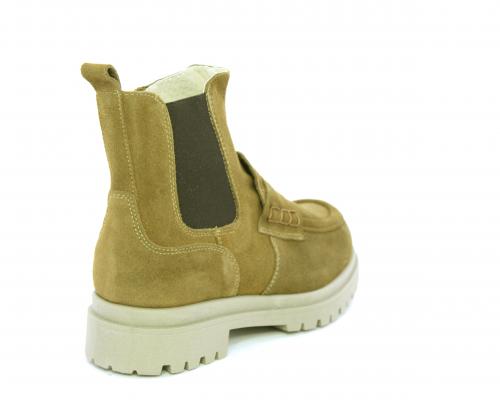 Tronchetto con chiusura laterale ed elastico per facilitare la calzata, tomaia in camoscio, sottopiede e fodera interna in pelle.