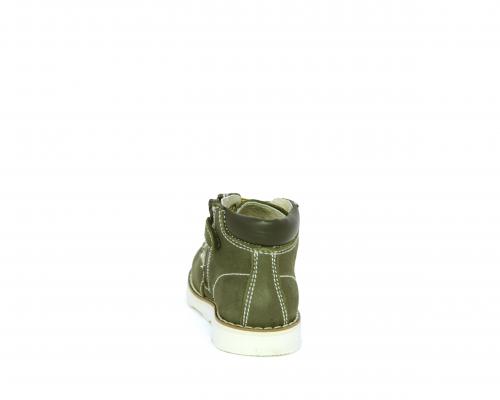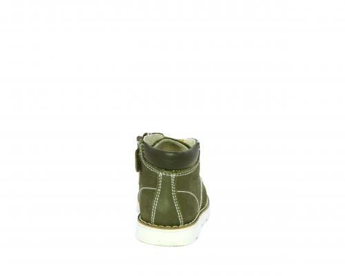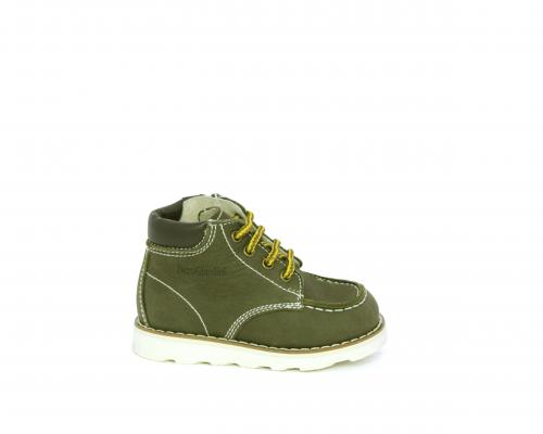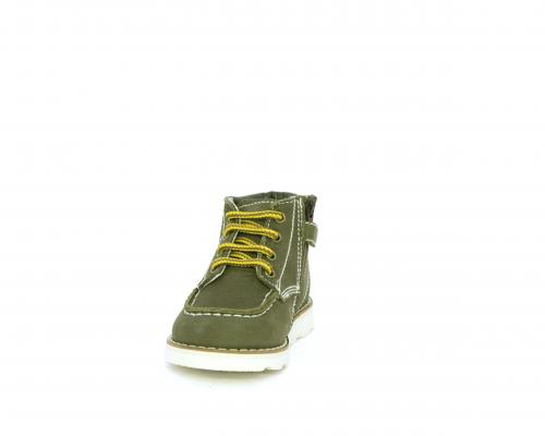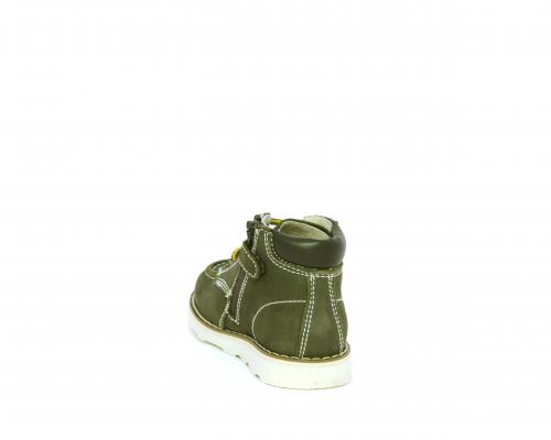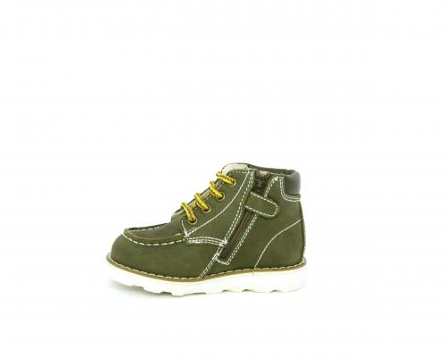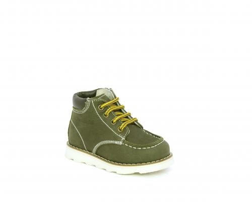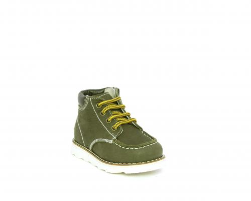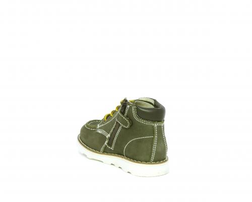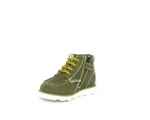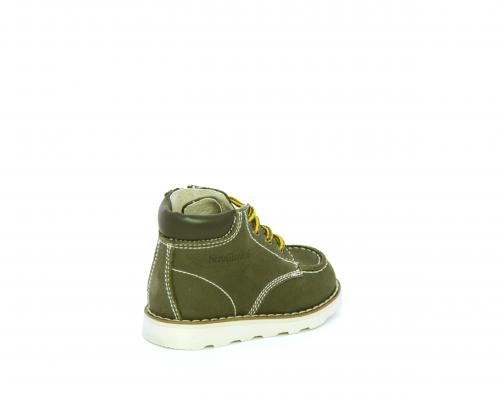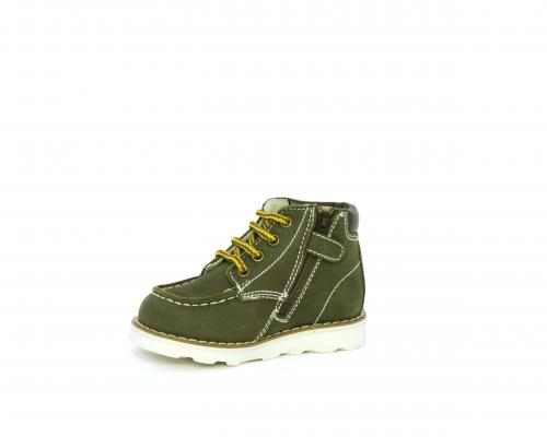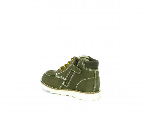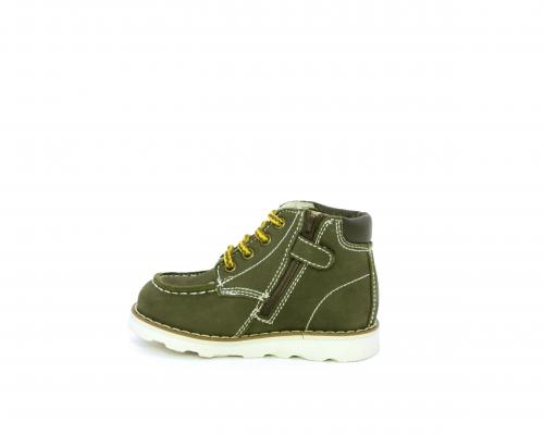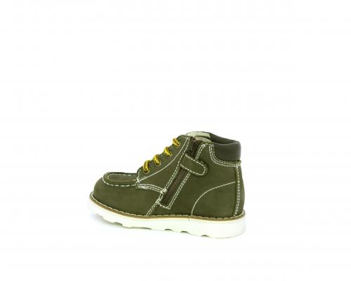 Scarponcino modello ingegnere, con lacci e chiusura laterale per facilitare la calzata, tomaia in nabuk e rifinitura in pelle intorno alla caviglia, sottopiede e fodera interna in pelle.