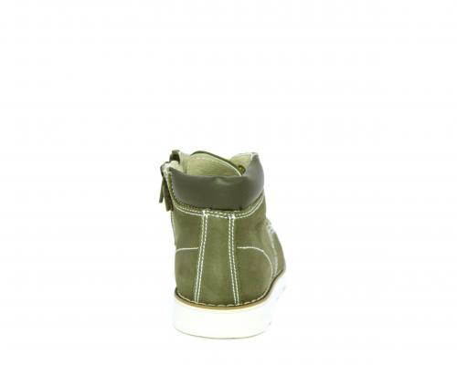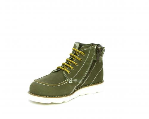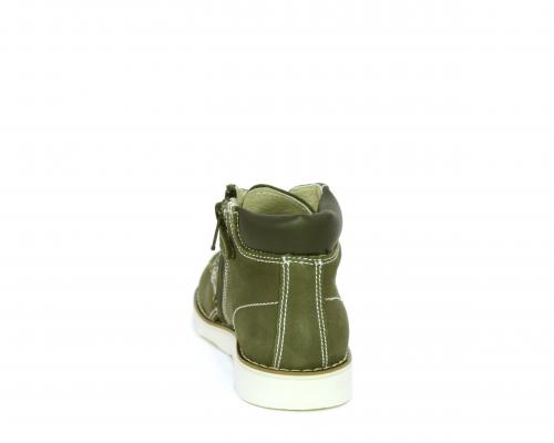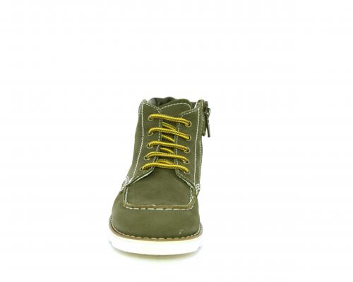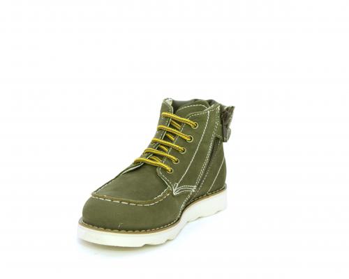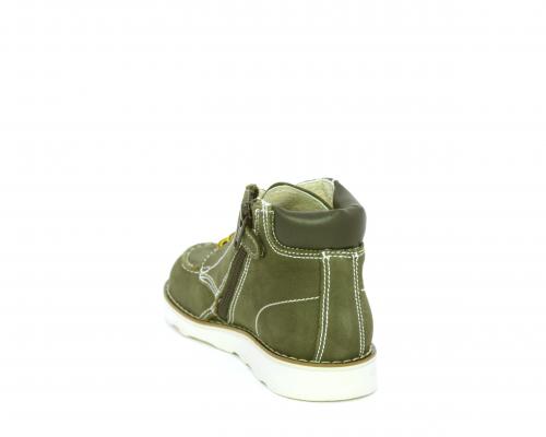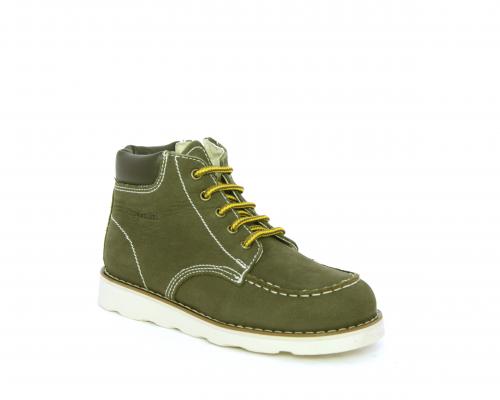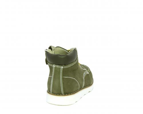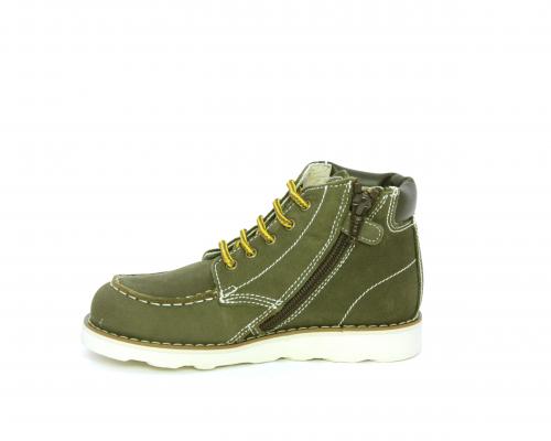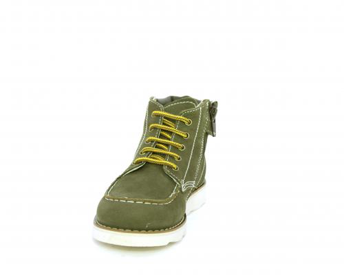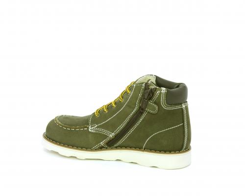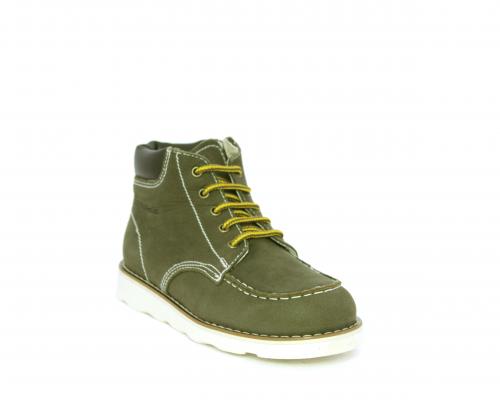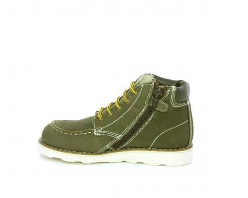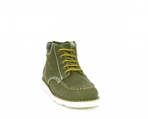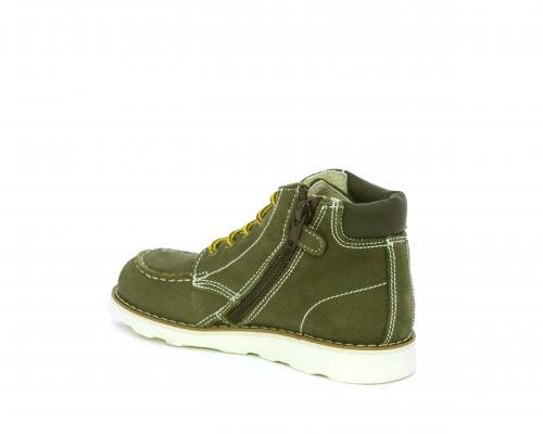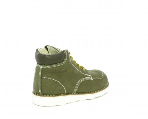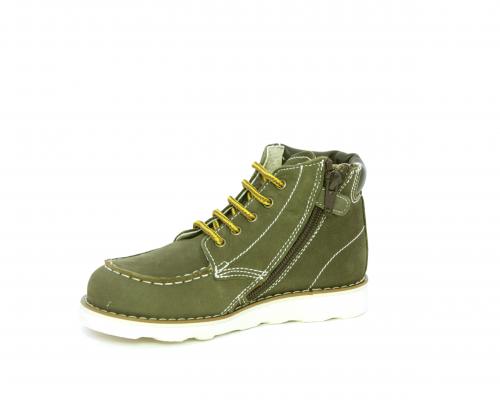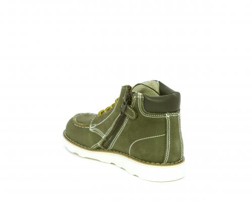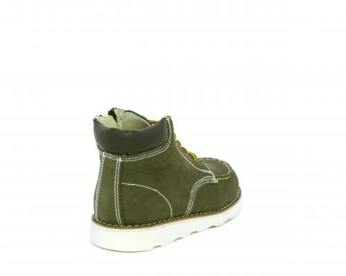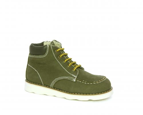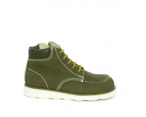 Scarponcino modello ingegnere, con lacci e chiusura laterale per facilitare la calzata, tomaia in nabuk e rifinitura in pelle intorno alla caviglia, sottopiede e fodera interna in pelle.