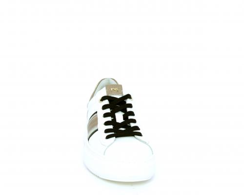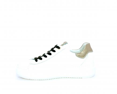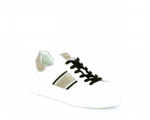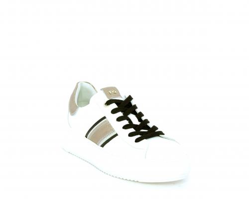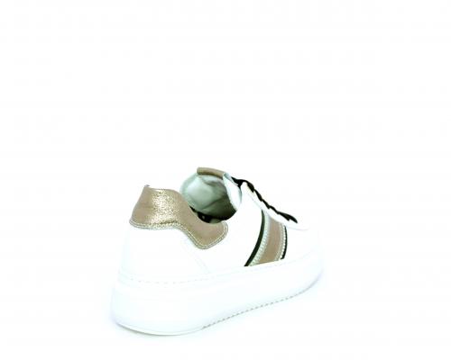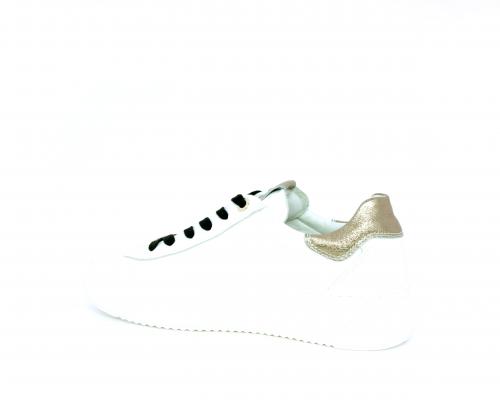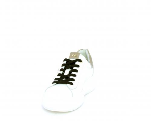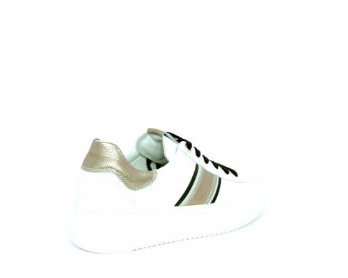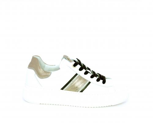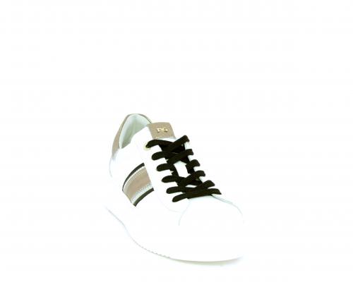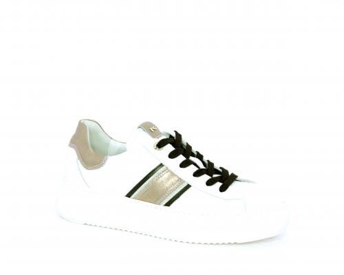 Sneakers allacciata, tomaia in pelle con banda laterale in pelle e brillantini , sottopiede e fodera interna in pelle, fusbet estraibile con sistema DryGo, che svolge una doppia azione assorbe l'umidità quando la scarpa è indossata e si asciuga rapidamente quando si toglie la calzatura.