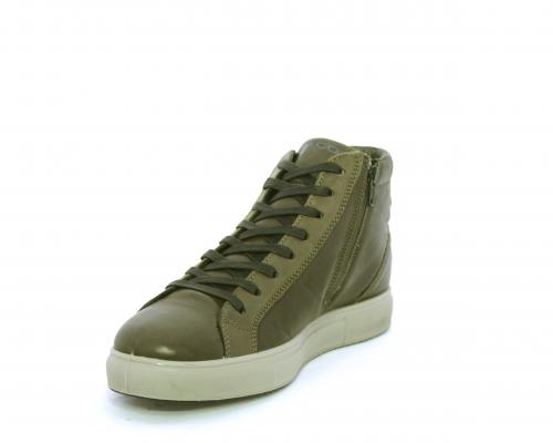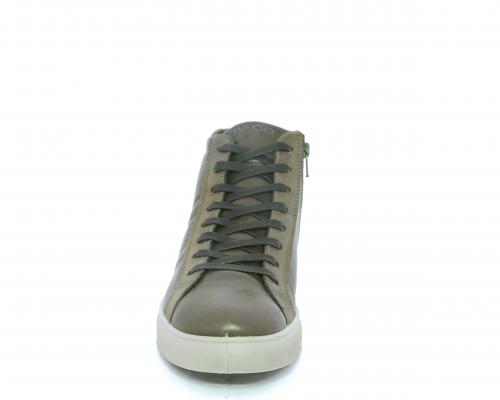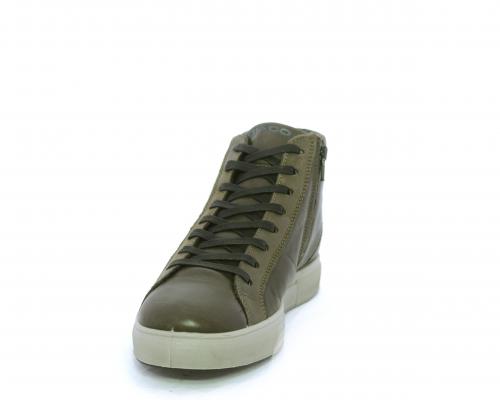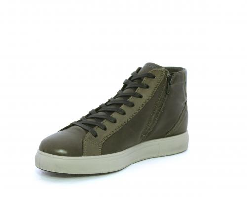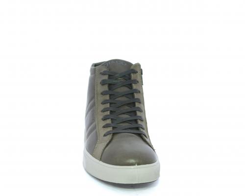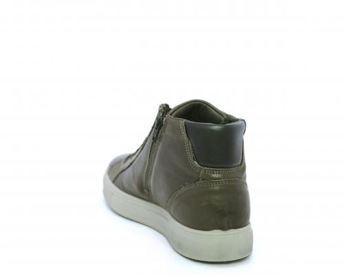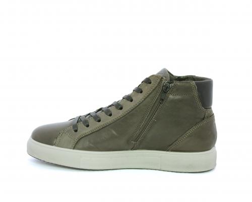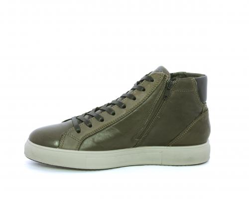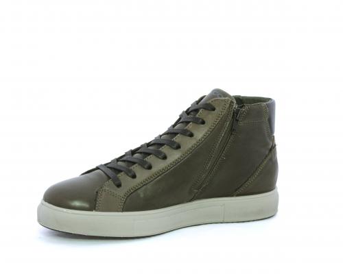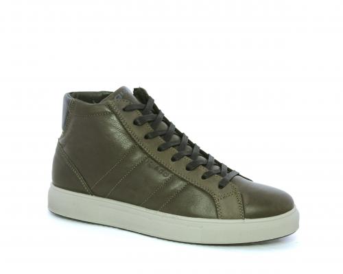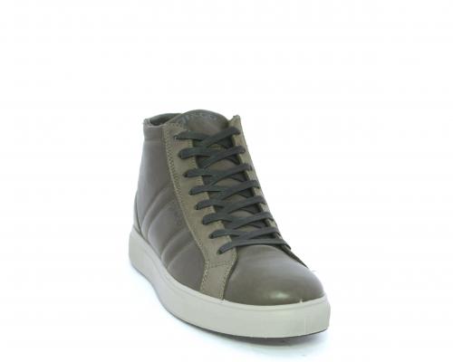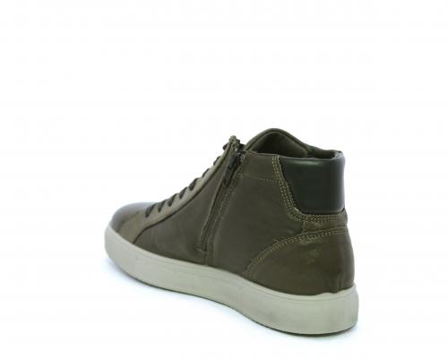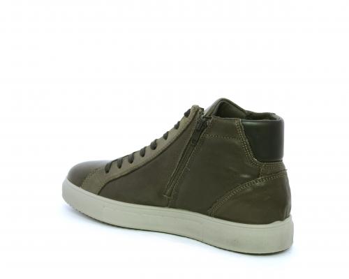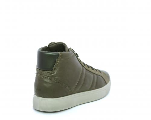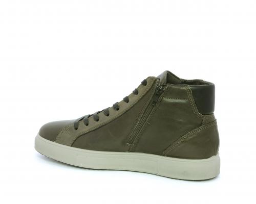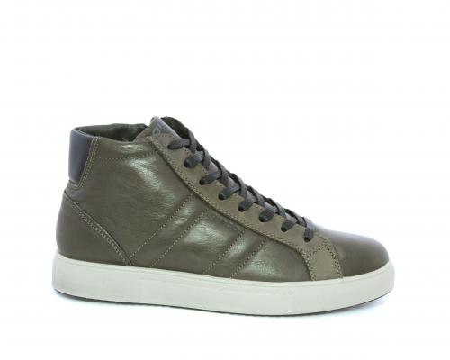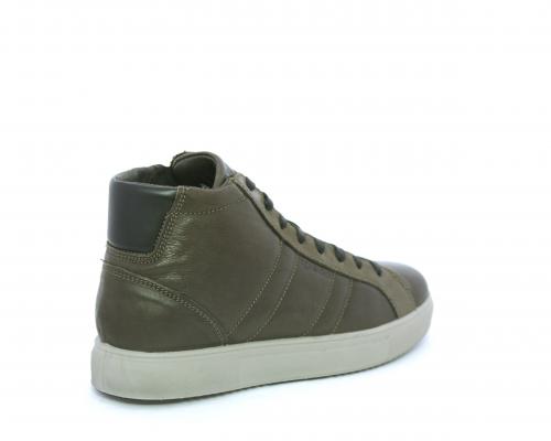 Sneakers alta alla caviglia, tomaia in pelle con lacci e chiusura laterale per facilitare la calzata, sottopiede e fodera interna in pelle, fusbet estraibile con memory foam.