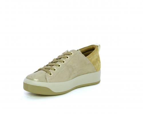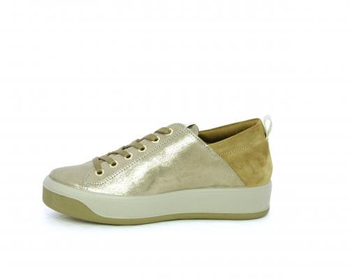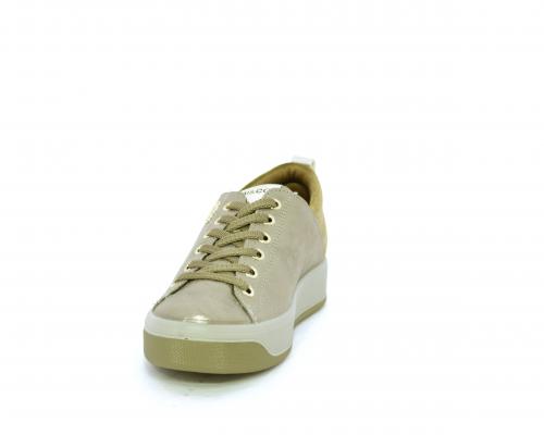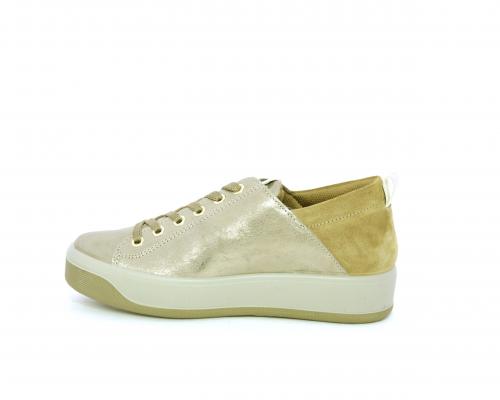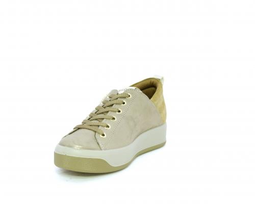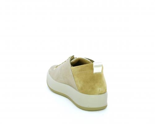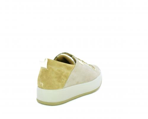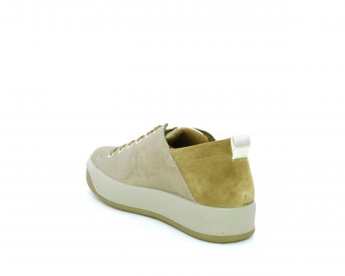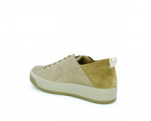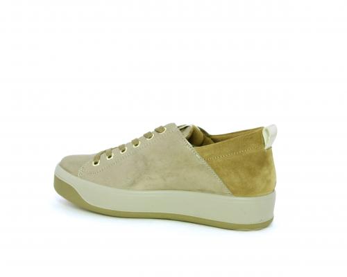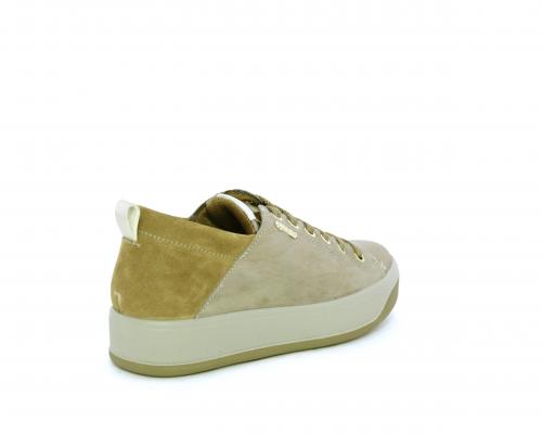 Sneakers allacciata, tomaia in camoscio e pelle, sottopiede in pelle, fodera interna in tessuto, fusbet anatomico estraibile.