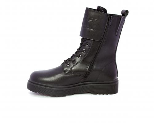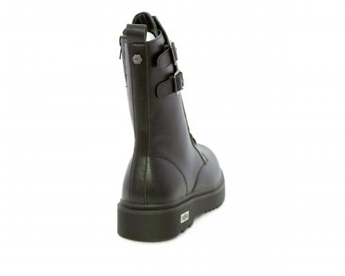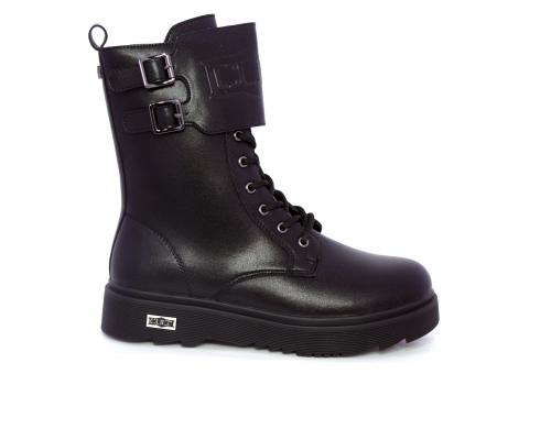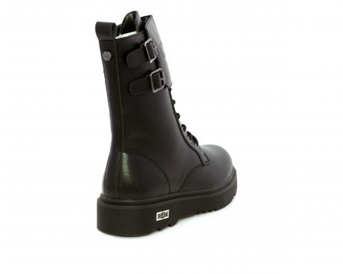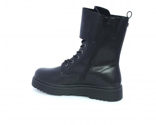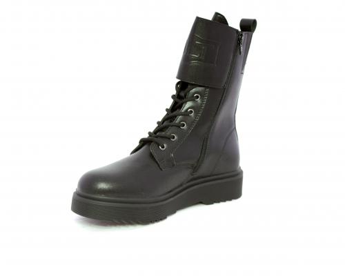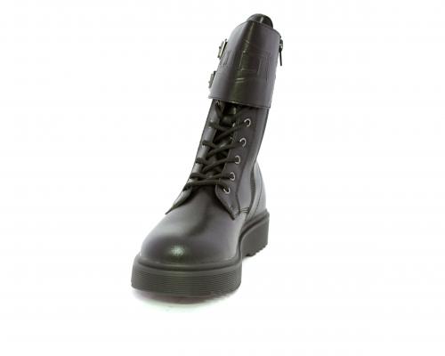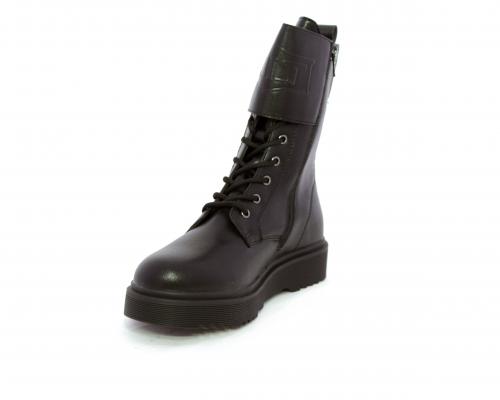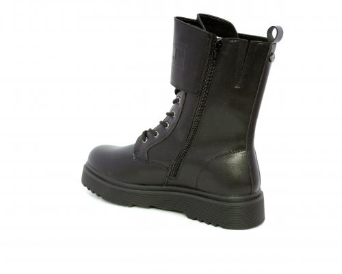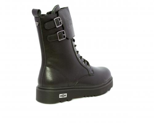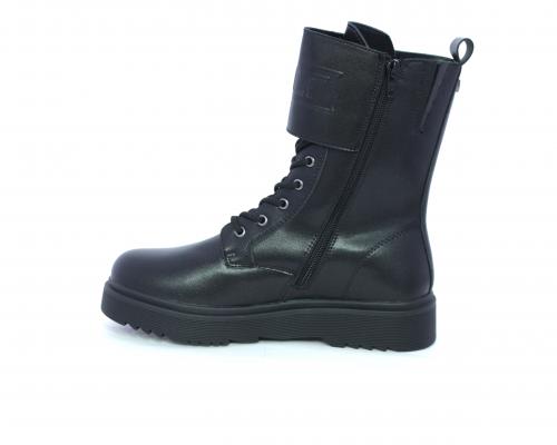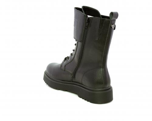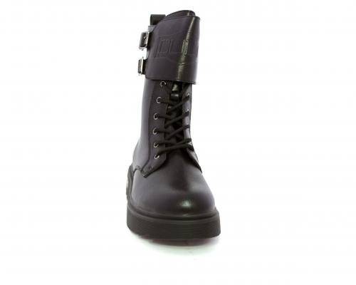 Anfibio in pelle, con lacci e chiusura laterale per facilitare la calzata, sottopiede in pelle, fodera interna in tessuto, fusbet estraibile.