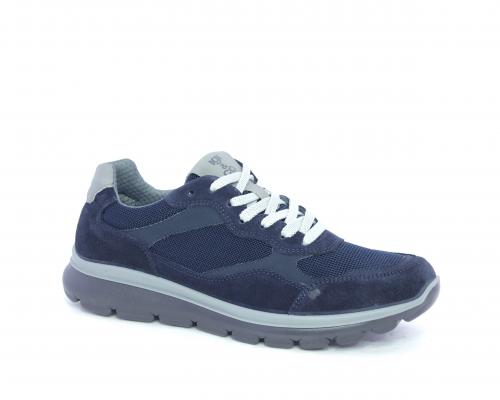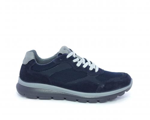 Snaekers allacciata, tomaia in nabuk e tessuto, sottopiede in pelle, fodera interna in tessuto, fusbet estraibile con memory foam.