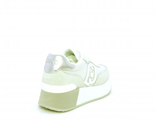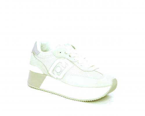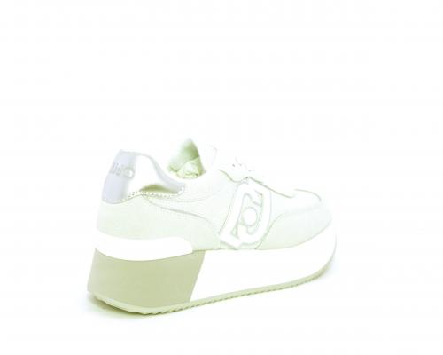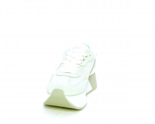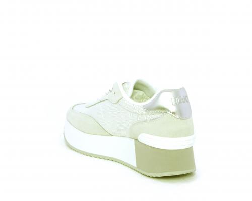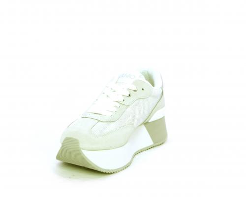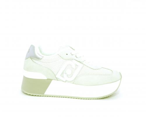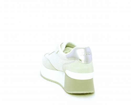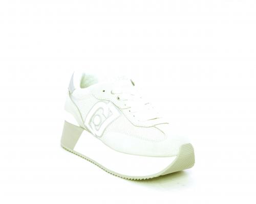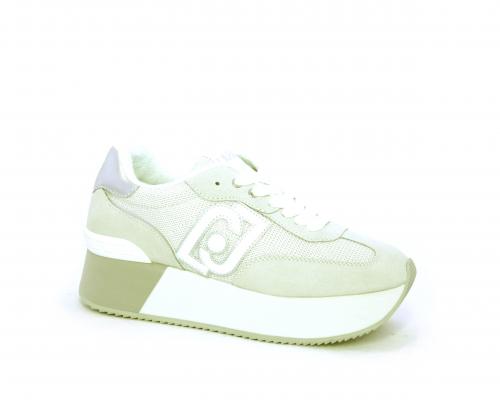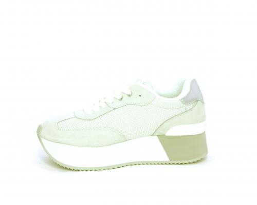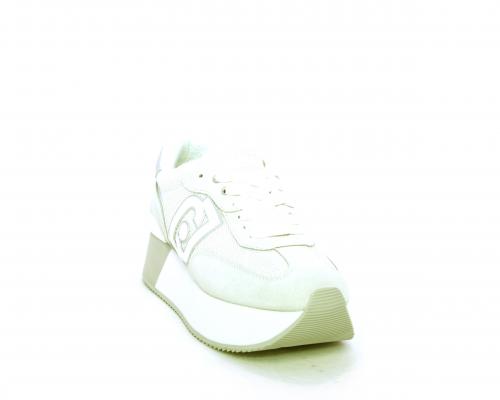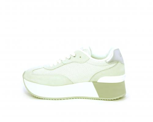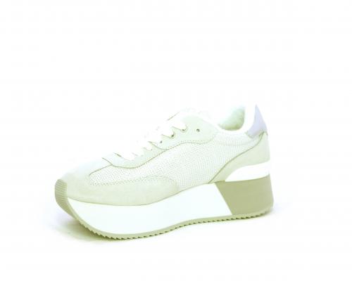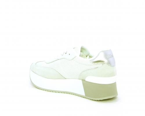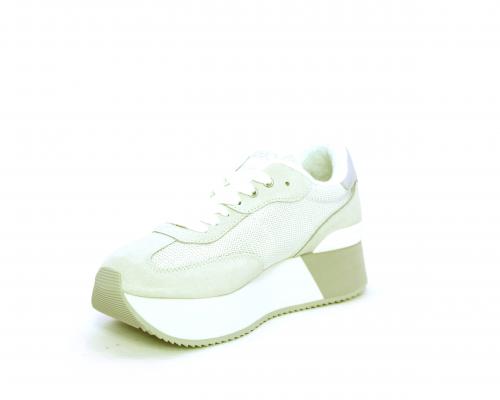 Sneaker allacciata con platform alto in gomma bicolore, tomaia in nabuk e tessuto con logo in pelle con rifiniture metallizate, sottopiede e fodera interna in tessuto effetto spugna, fusbet anatomico estraibile.