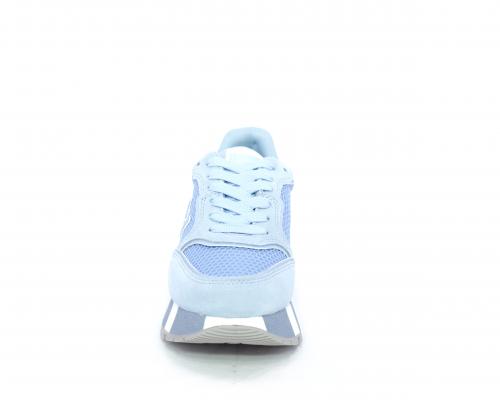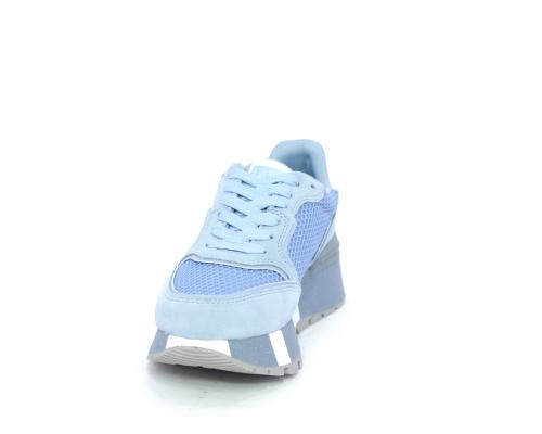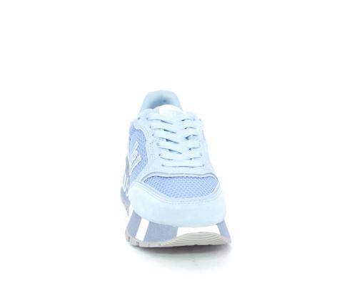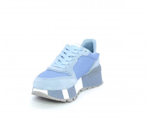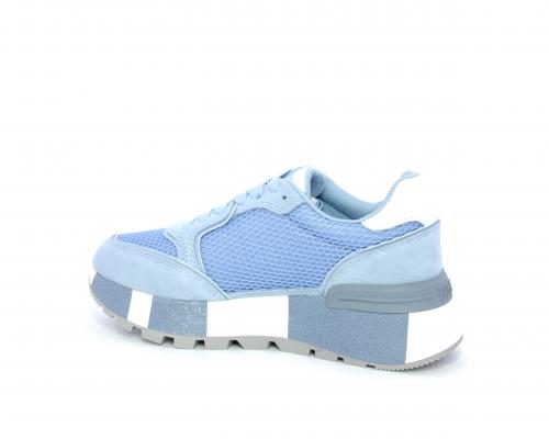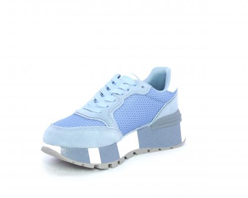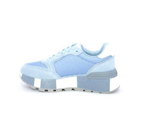Sneaker allacciata con platform in gomma colorblock glitterato, tomaia in nabuk e tessuto con logo glitterato, sottopiede e fodera interna in tessuto effetto spugna, fusbet anatomico estraibile.