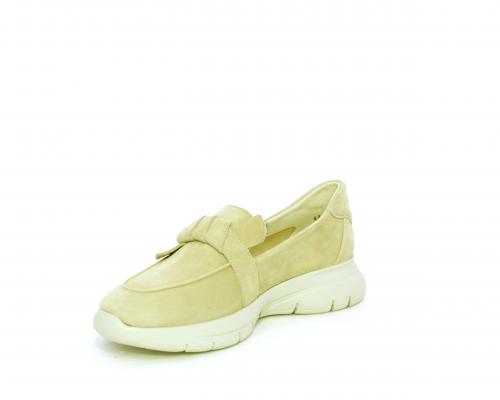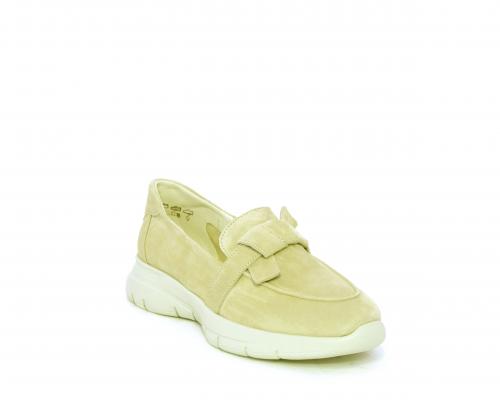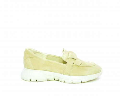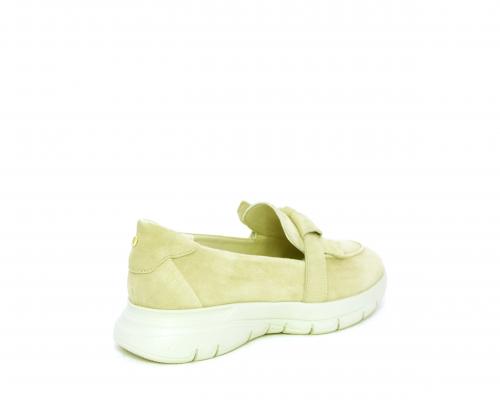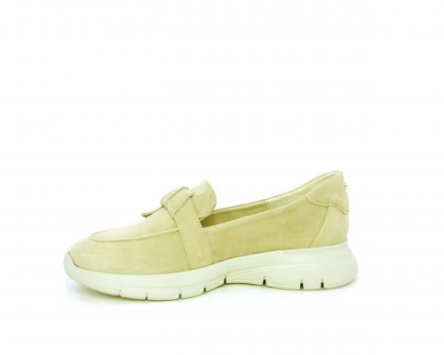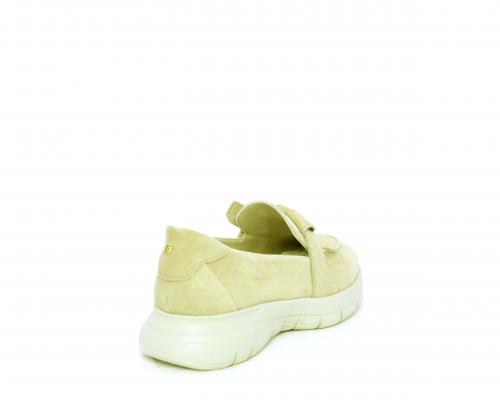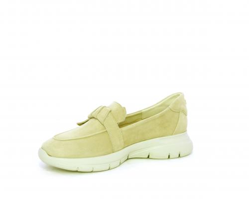 Mocassino fondo gomma, tomaia in suede, sottopiede in tessuto, fodera interna in pelle, fusbet con memory foam.