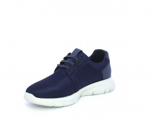 Sneakers allacciata, tomaia in tessuto tecnico con tallone in pelle, sottopiede e fodera interna in tessuto, fusbet estraibile con memory foam.