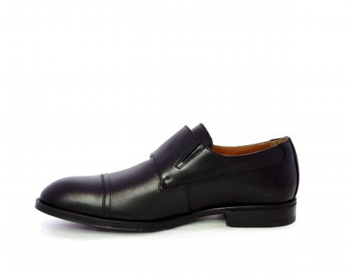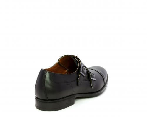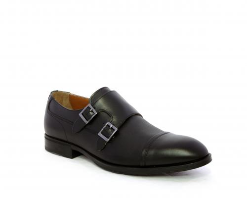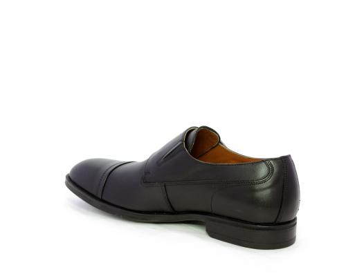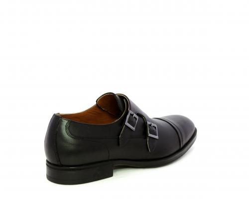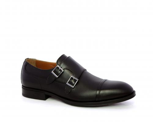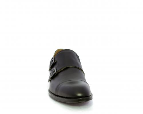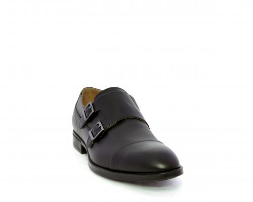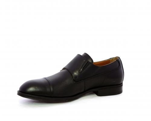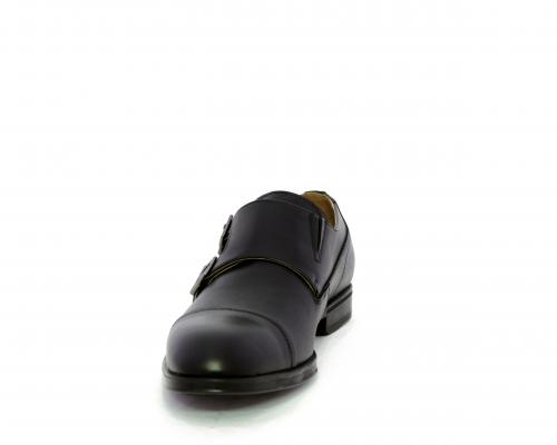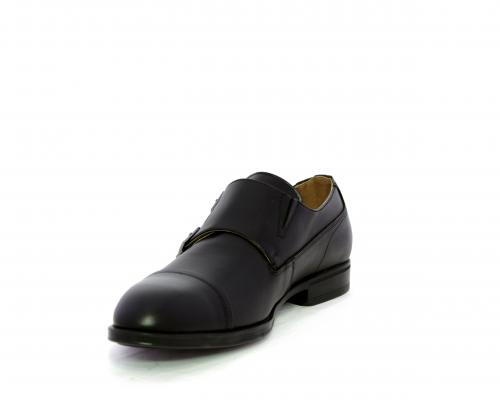 Scarpa elegante con fondo in gomma, tomaia in pelle con doppio fibbia ed elastico laterale, sottopiede e fodera interna in pelle, fusbet anatomico estraibile.