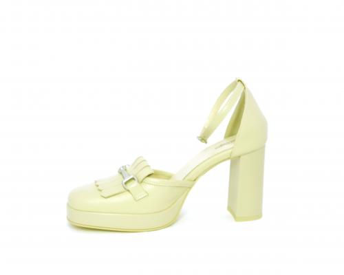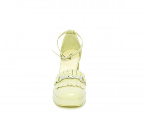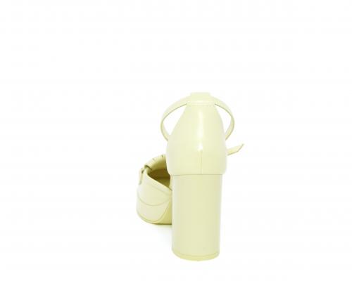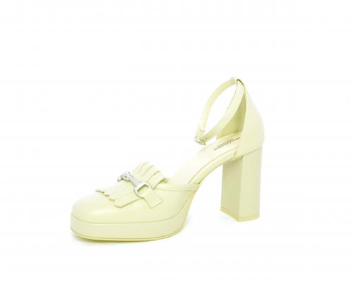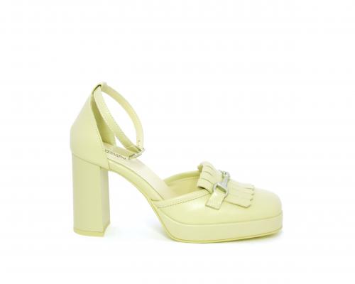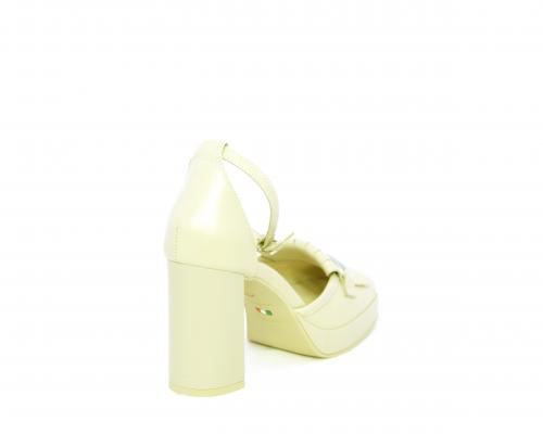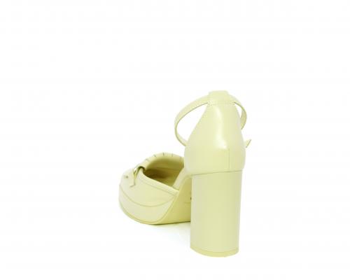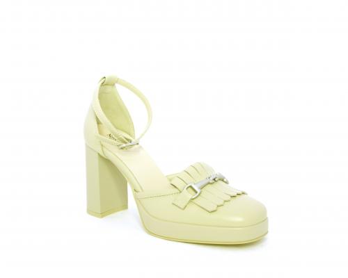 Chanelle fondo gomma, tomaia in pelle con cinturino intorno alla caviglia, tacco e plateaux rivestiti in pelle, sottopiede e fodera interna in pelle, fusbet anatomico.