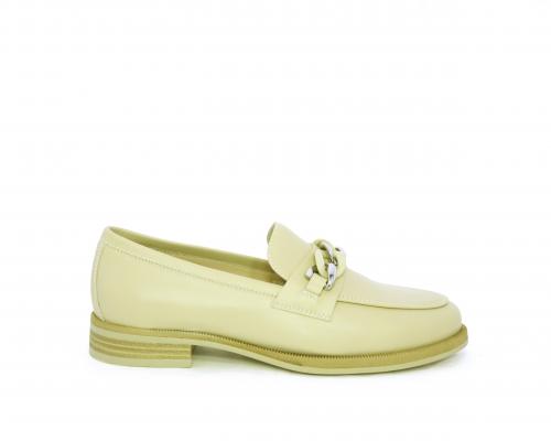 Mocassino in pelle con catena in acciaio, sottopiede e fodera interna in pelle, fusbet anatomico.