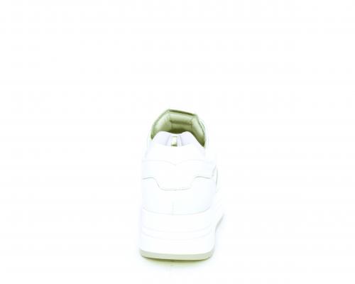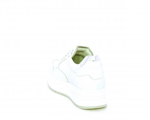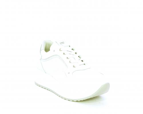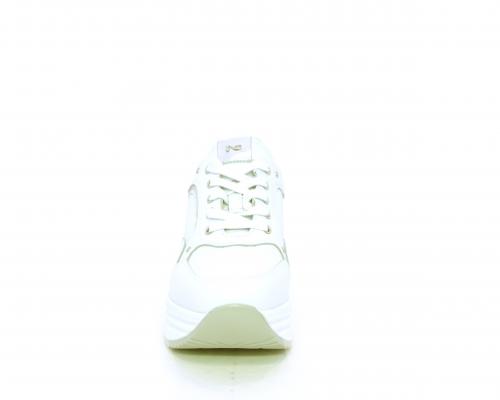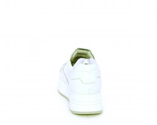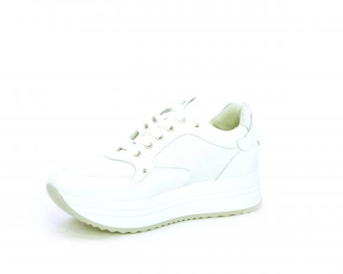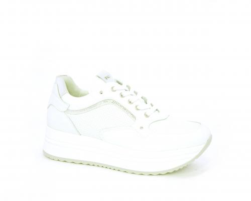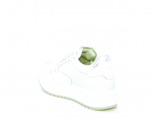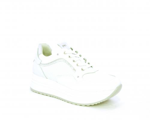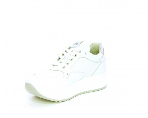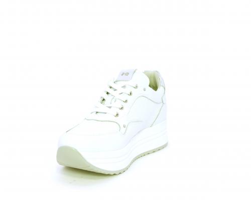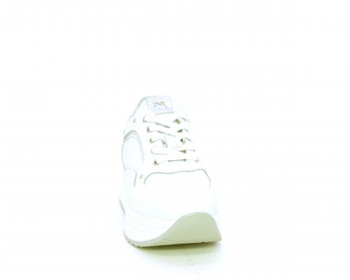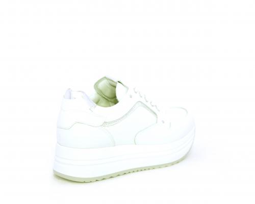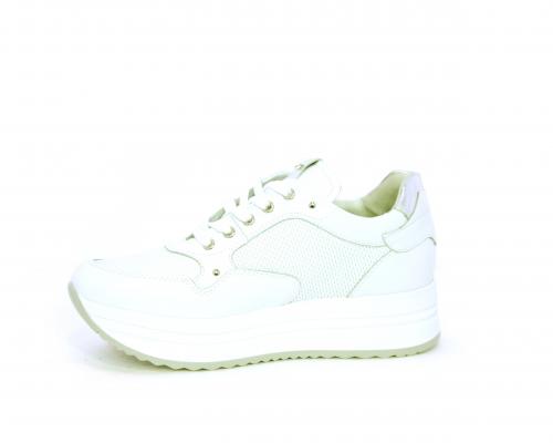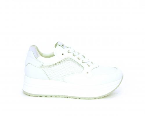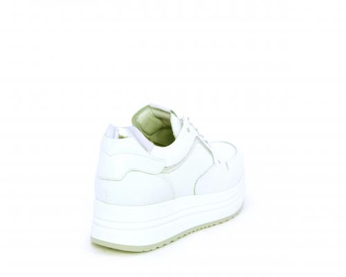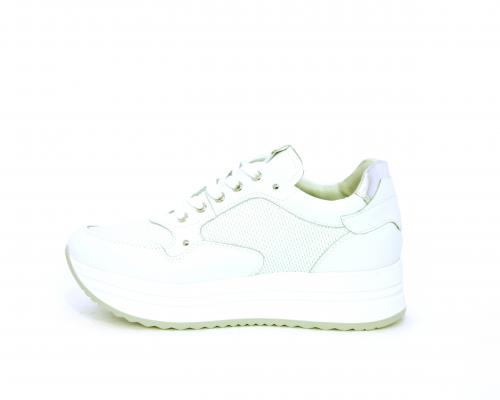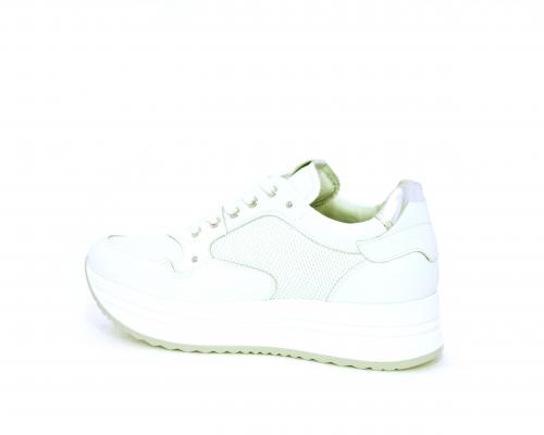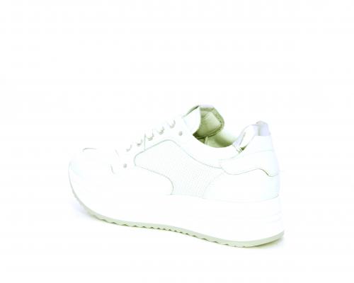 Sneakers allacciata, tomaia in pelle con inserto laterale di brillantini, platform con righe in gomma, sottopiede e fodera interna in pelle, fusbet estraibile con sistema DryGo che svolge una doppia azione, assorbe l'umidità quando si indossa la scarpa e si asciuga rapidamente quando si toglie la calzatura.
