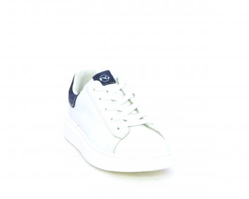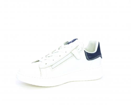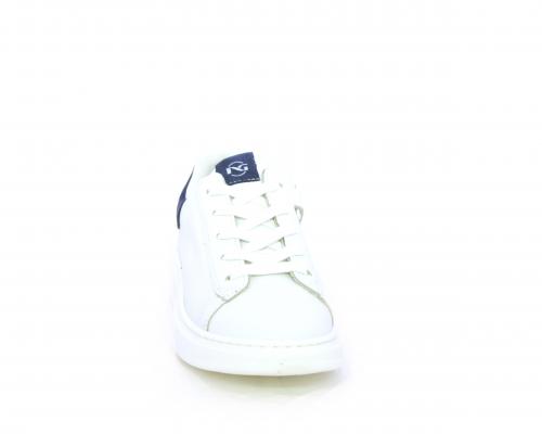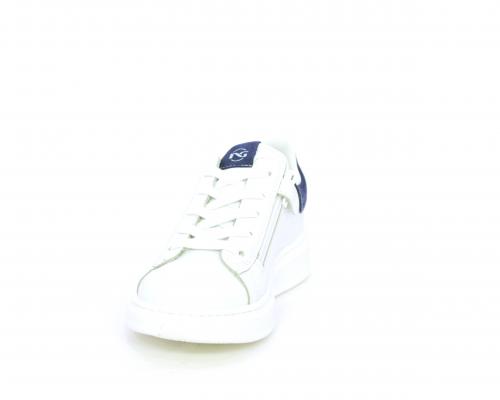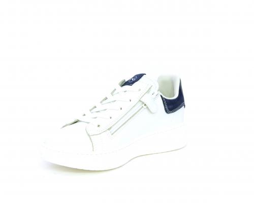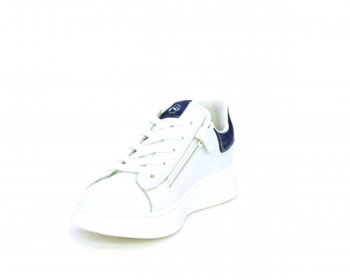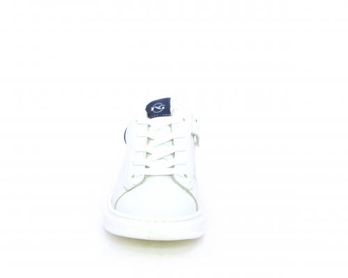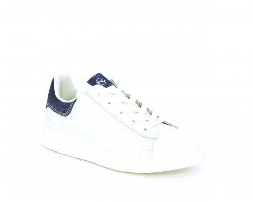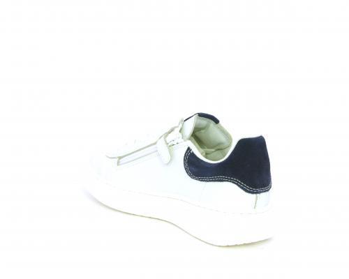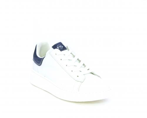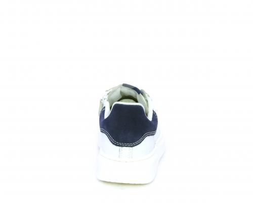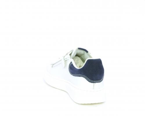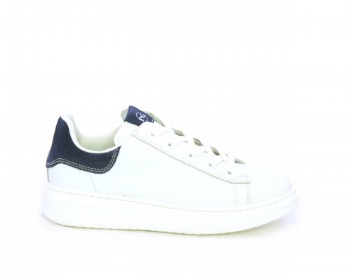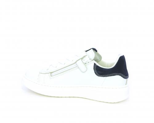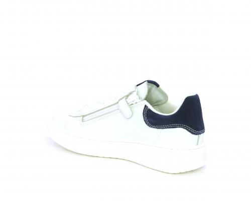 Scarpa bambino con lacci e chiusura laterale per facilitare la calzata, tomaia in pelle con parti colorata in suede dietro al tallone, cuscinetto in tessuto nella parte interna intorno alla caviglia, sottopiede e fodera interna in pelle, fusbet estraibile.