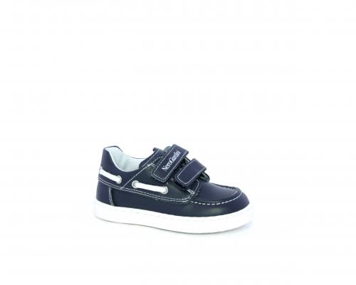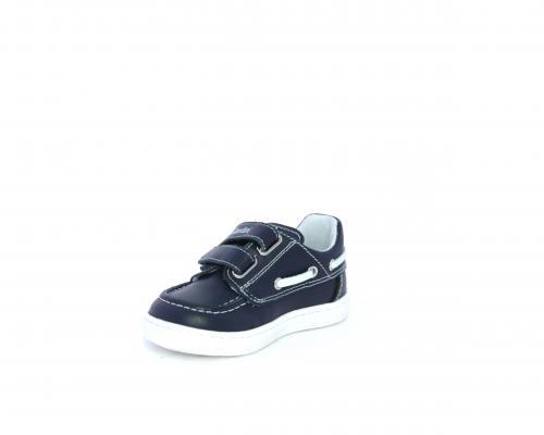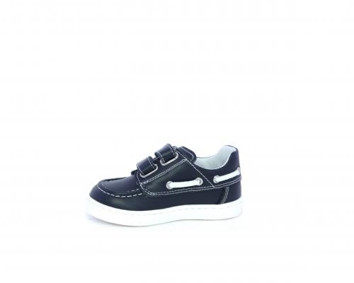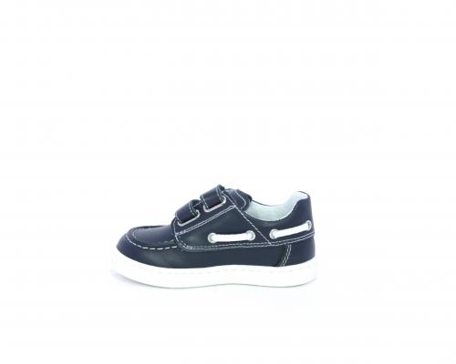 Scarpa primi passi modello barca, tomaia in pelle con doppio velcro, sottopiede e fodera interna in pelle, fusbet estraibile.