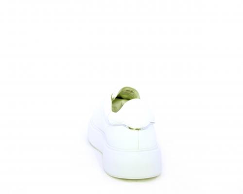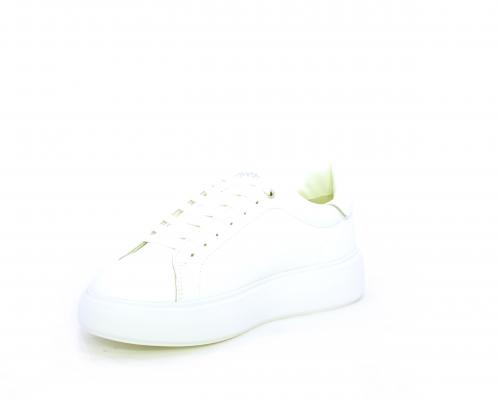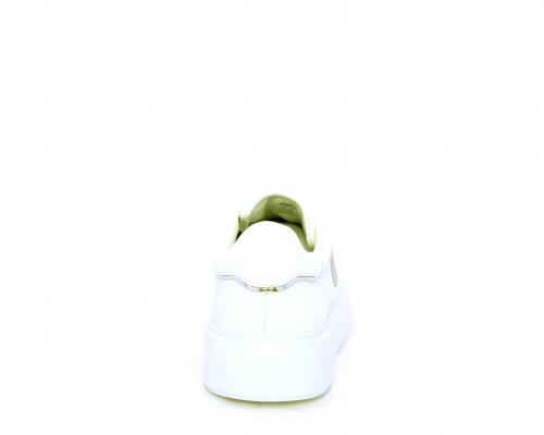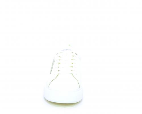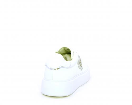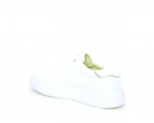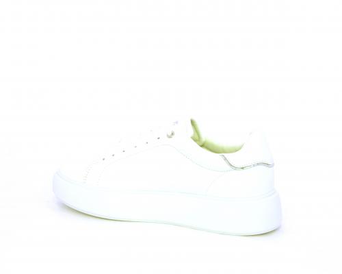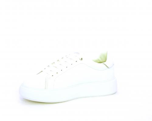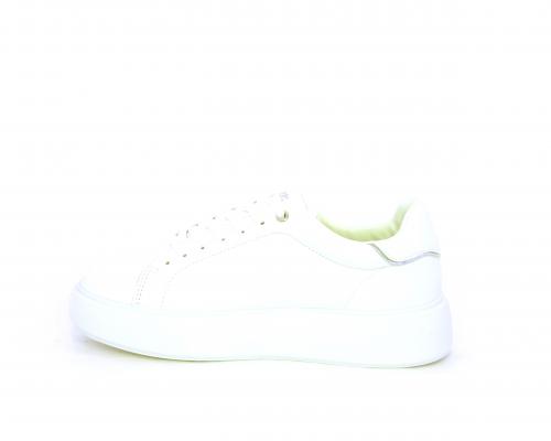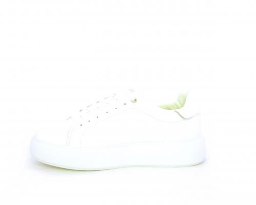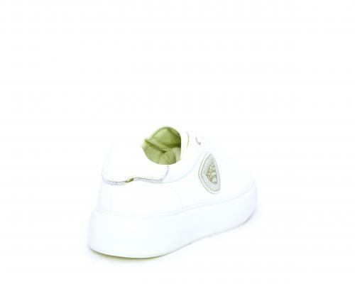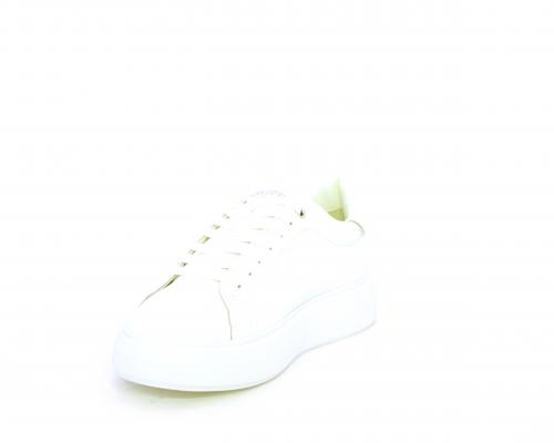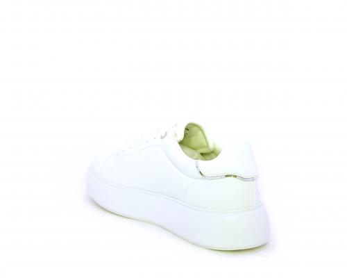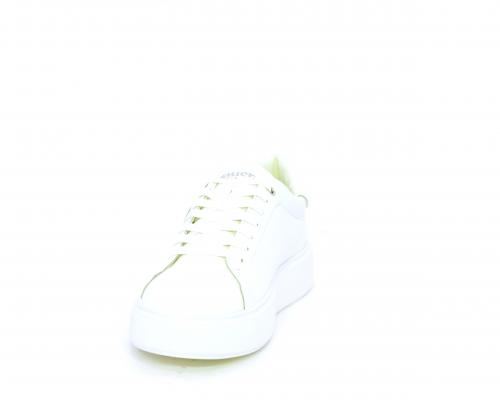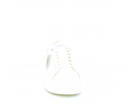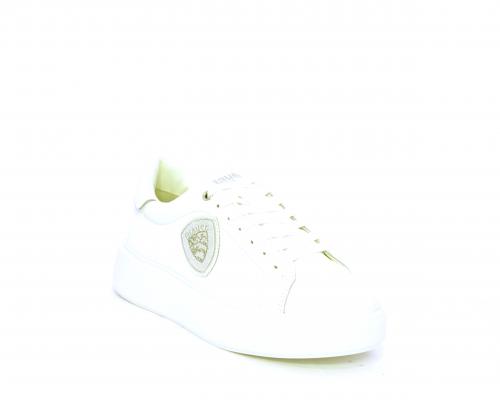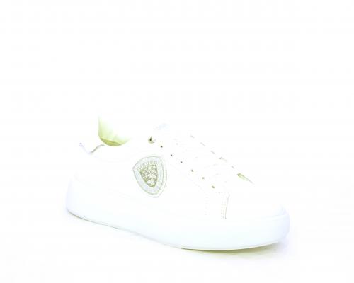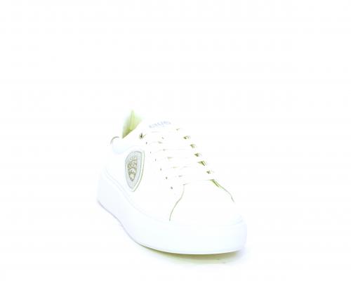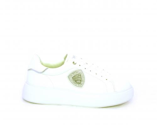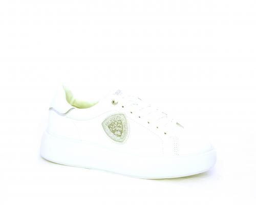 Sneakers allacciata, tomaia in pelle lateralmente stemma blauer con brillantini, platform in gomma, sottopiede in pelle, fodera interna in pelle e spugna, fusbet anatomico estraibile.