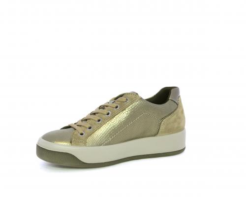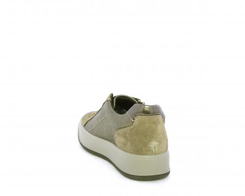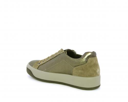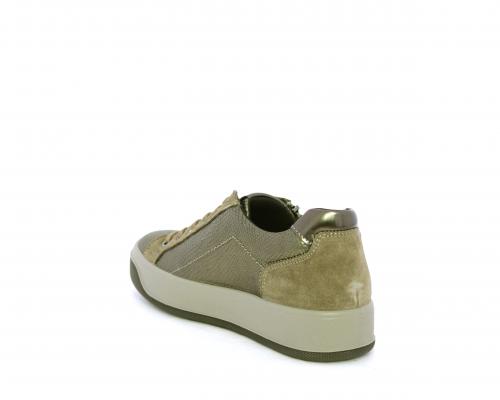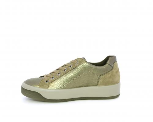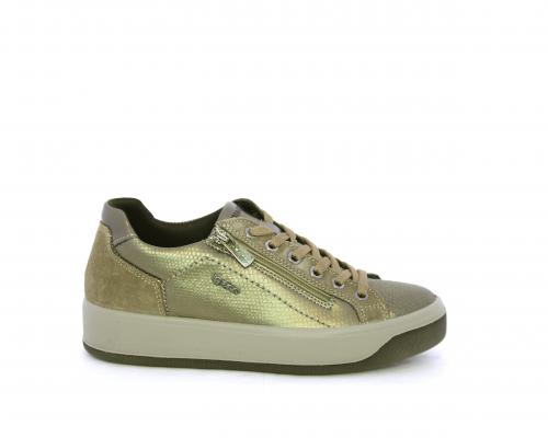 Sneakers con lacci e chiusura laterale per facilitare la calzata, platfoam in gomma, tomaia in pelle con inserto in camoscio nella parte posteriore, sottopiede in pelle, fodera interna in tessuto, fusbet anatomico estraibile.