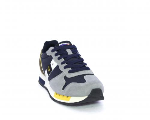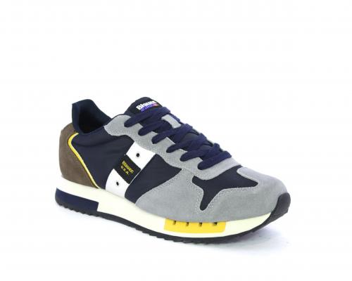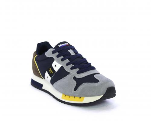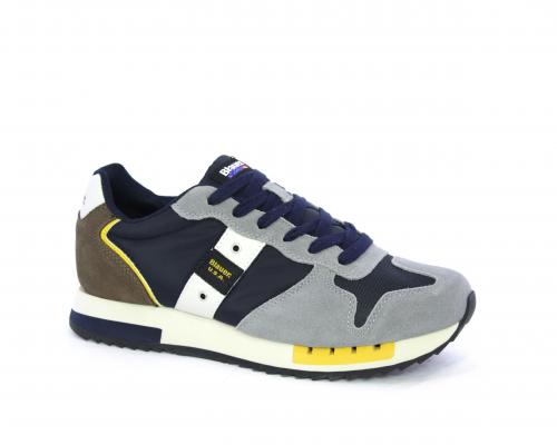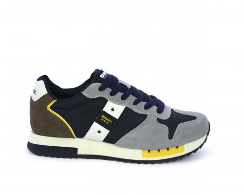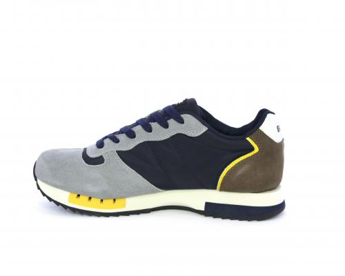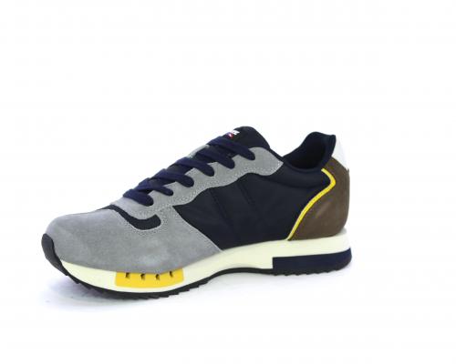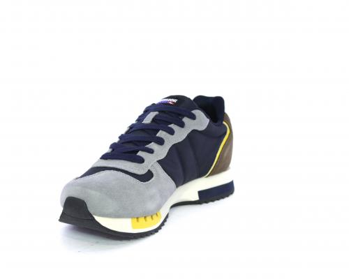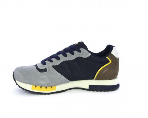 Sneakers con lacci, tomaia in camoscio e tessuto con logo laterale, sottopiede in pelle, fodera interna in tessuto, fusbet anatomico.