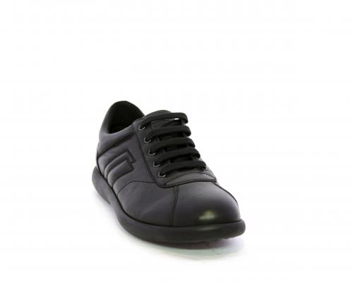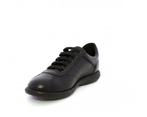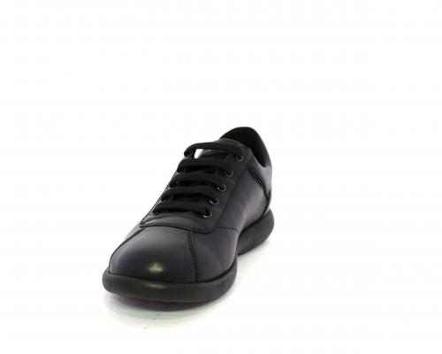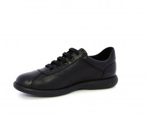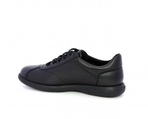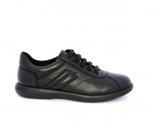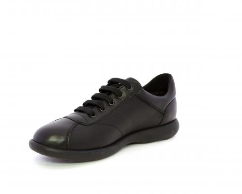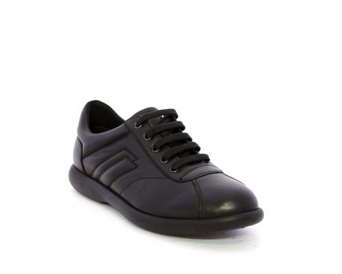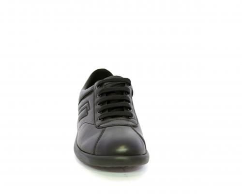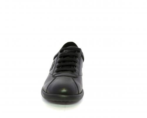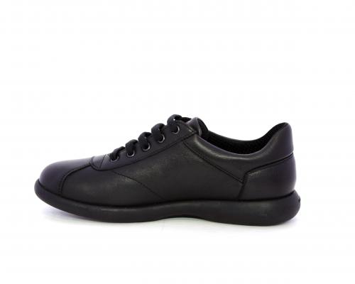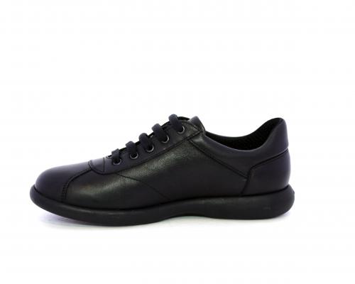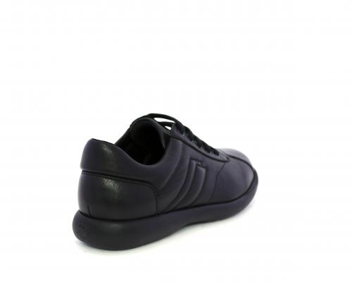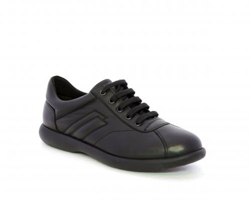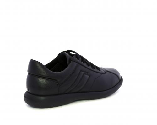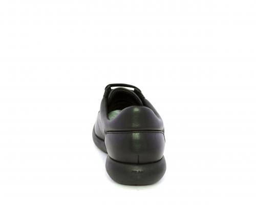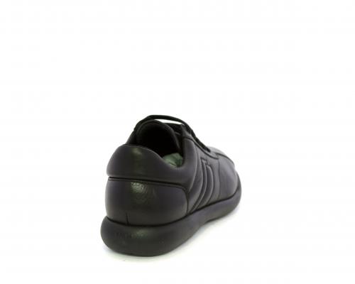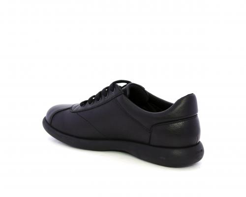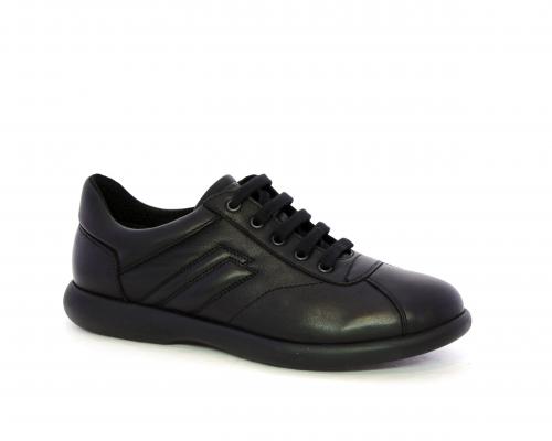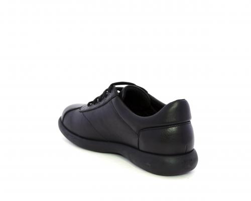 Scarpa modello camper con lacci, tomaia in pelle, sottopiede e fodera interna in tessuto, fusbet anatomico estraibile.