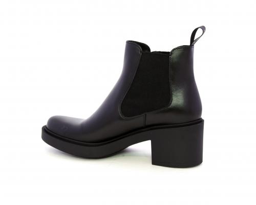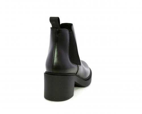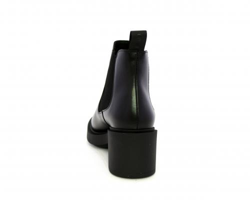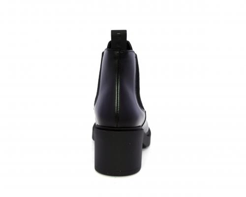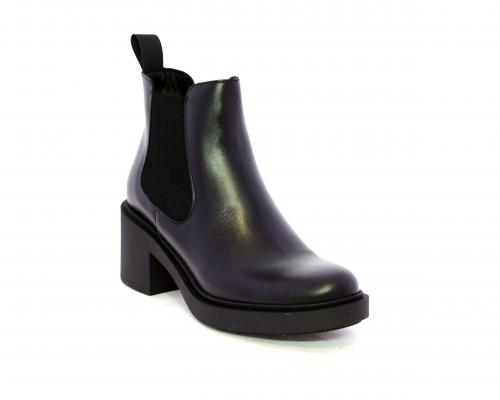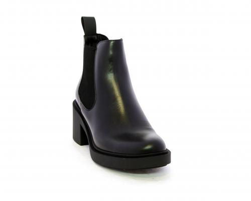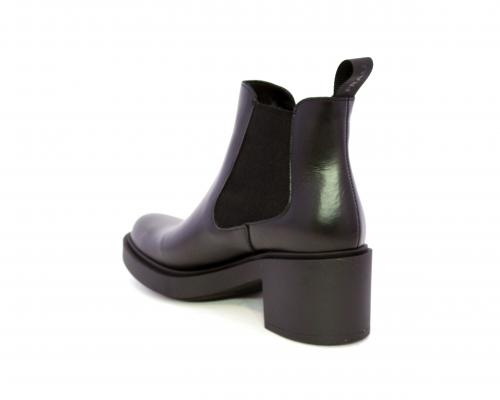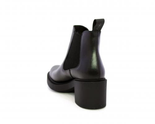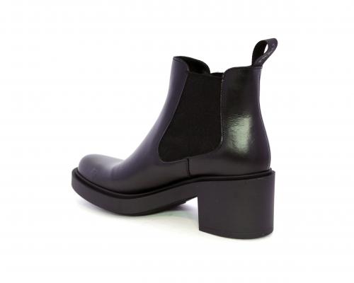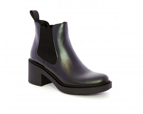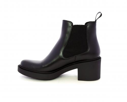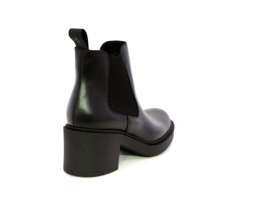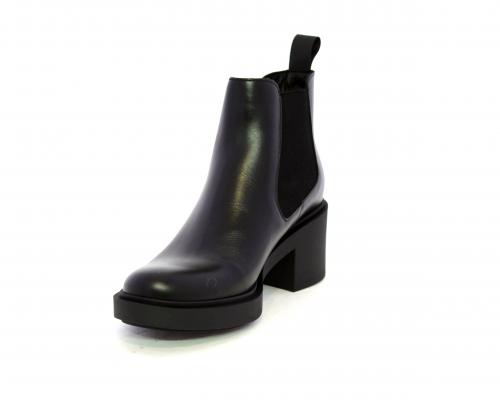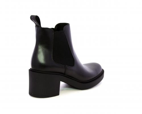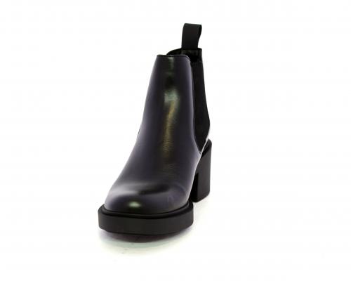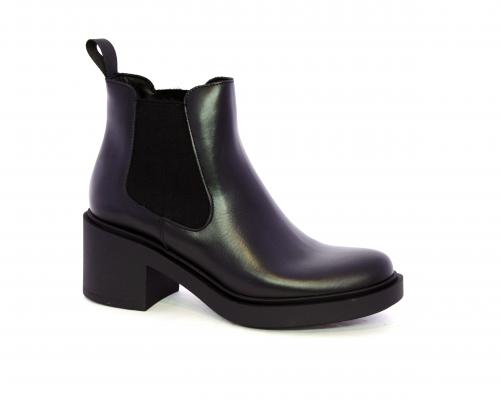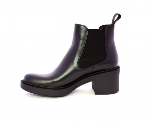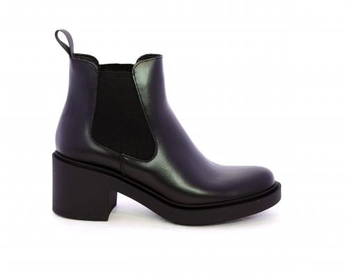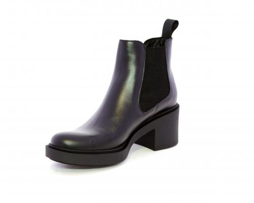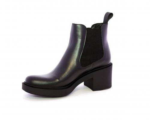 Stivaletto con doppio elastico laterale, tacco e plateaux in gomma, tomaia in pelle, sottopiede in pelle, fodera interna in tessuto, fusbet anatomico.