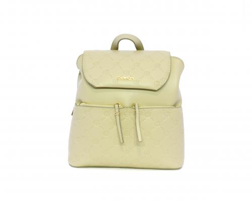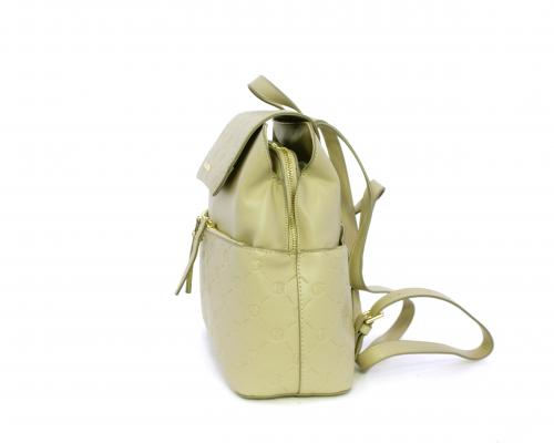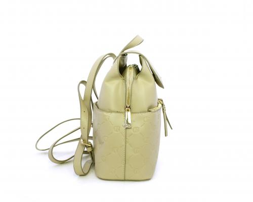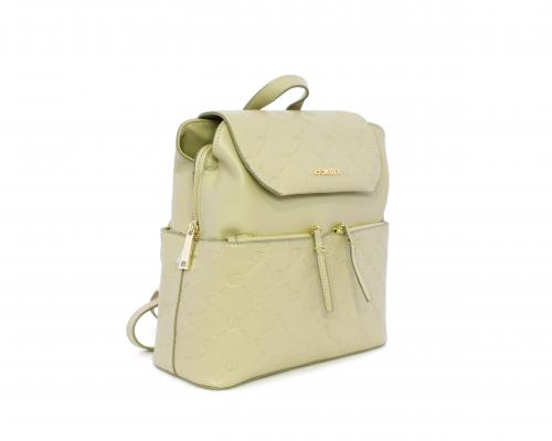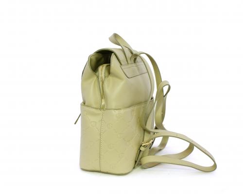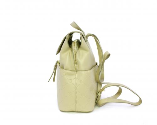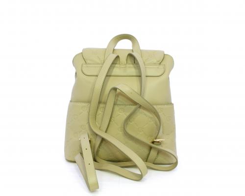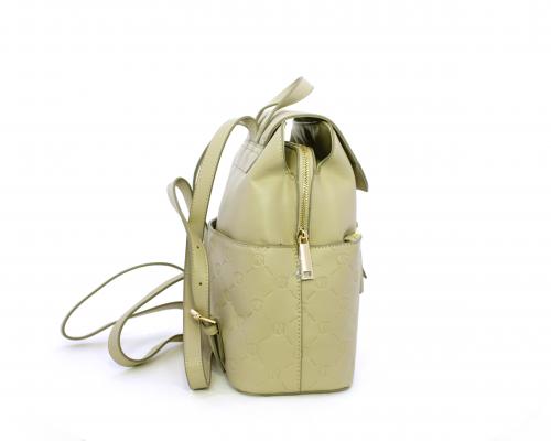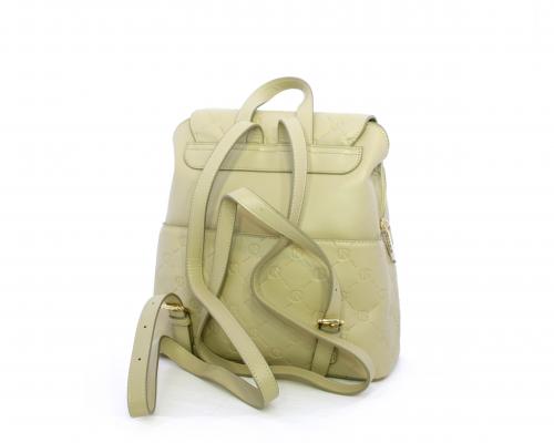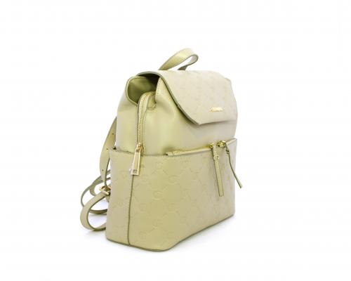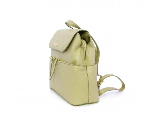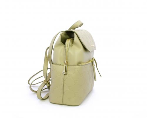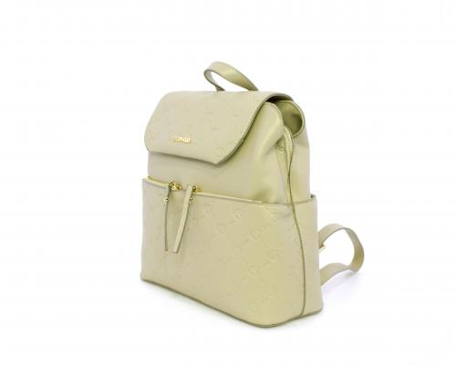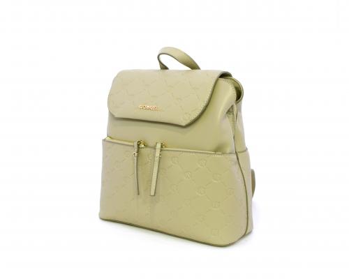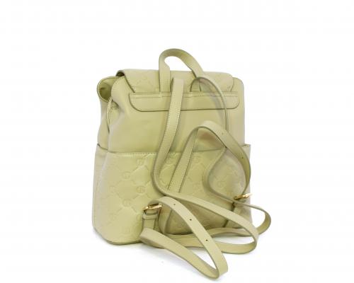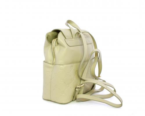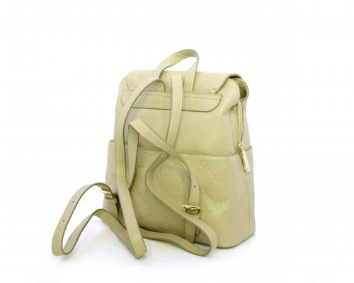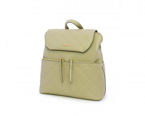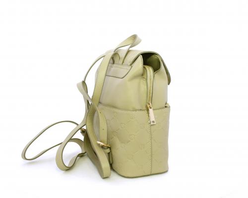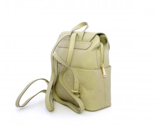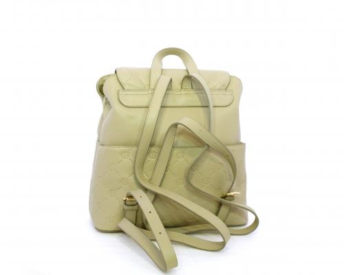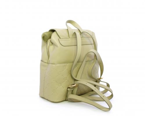 Zaino in pelle metà martellata e metà liscia, tracolle in pelle regolabili, chiusura della ribaltina con clip, doppio taschino nella parte anteriore, taschino chiuso da clip nella parte posteriore, internamente lo zaino è diviso in tre scomparti due aperti e uno chiuso tramite zip, fodera interna in tessuto.