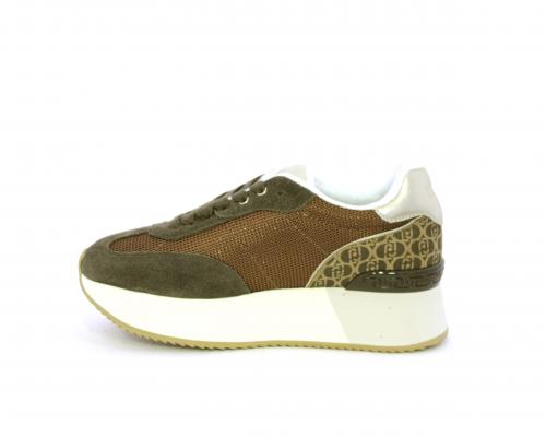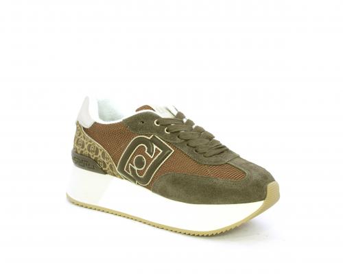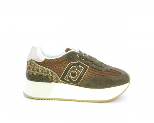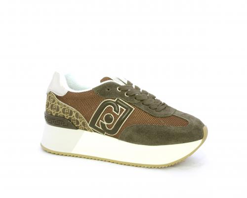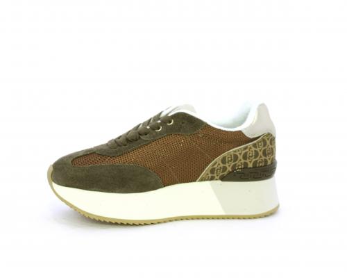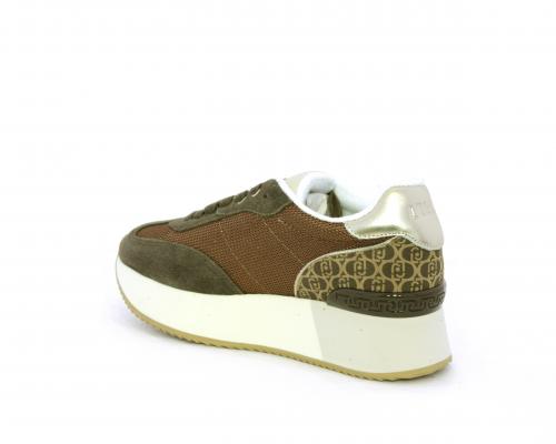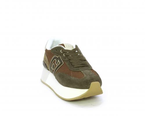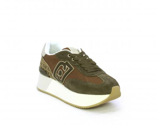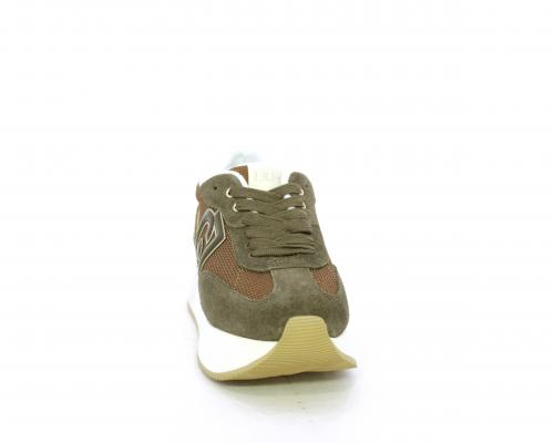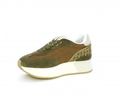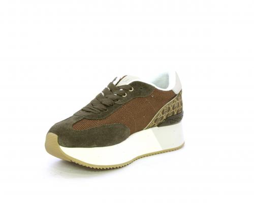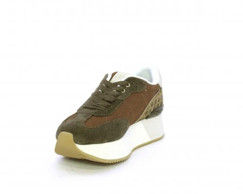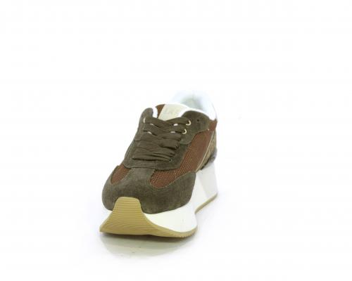 Sneaker con lacci, platform in gomma bicolore, tomaia in camoscio e parti in tessuto, sottopiede e fodera interna in tessuto, fusbet anatomico estraibile.