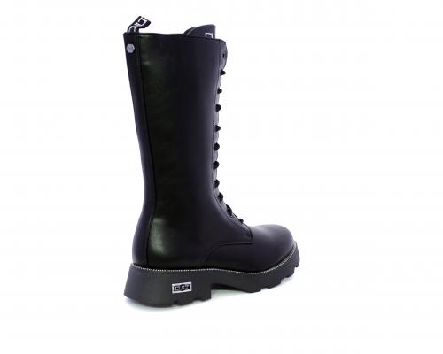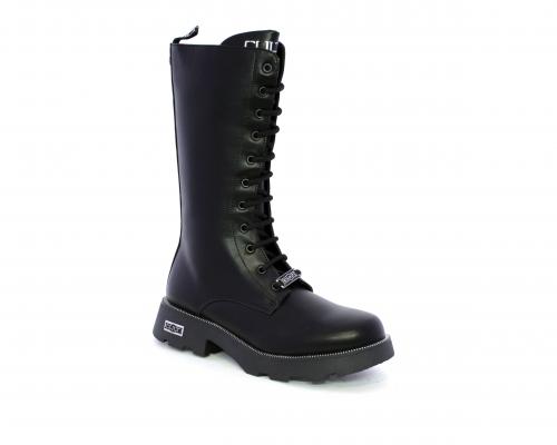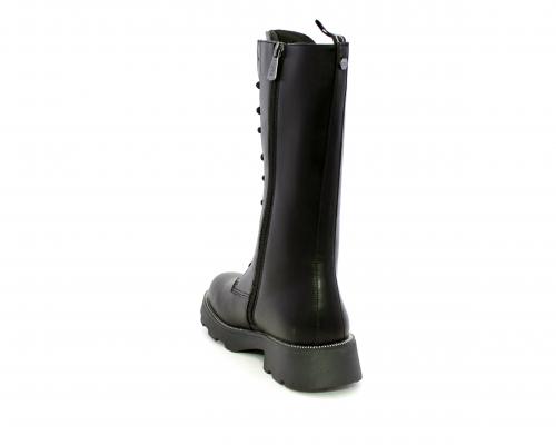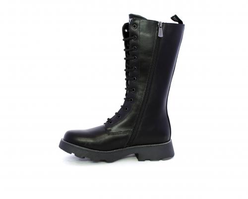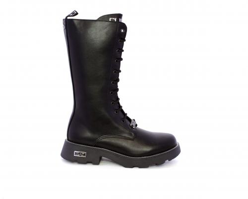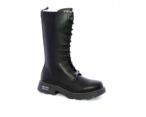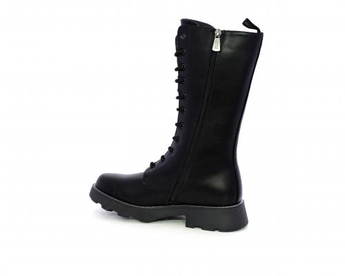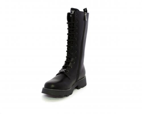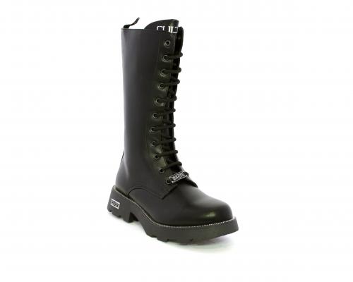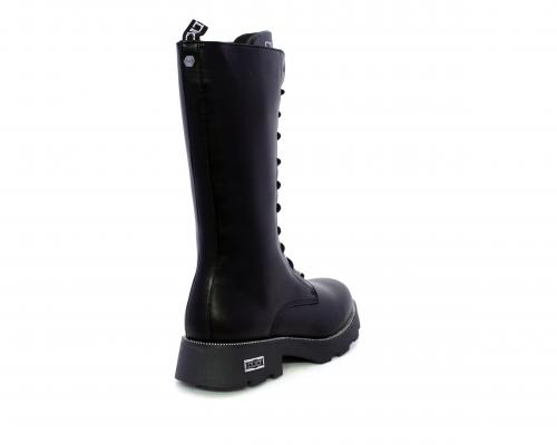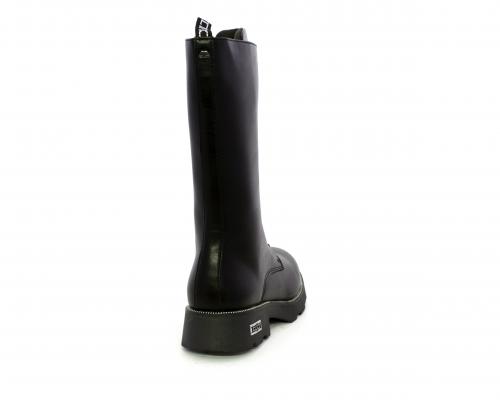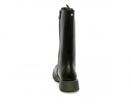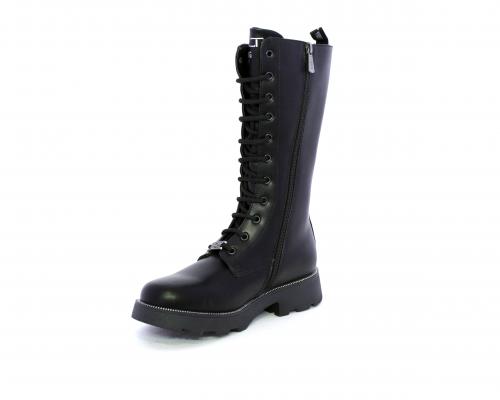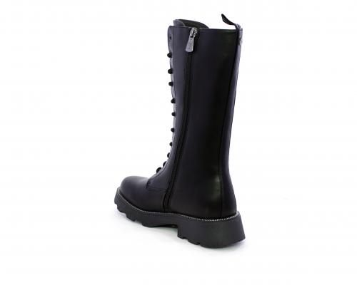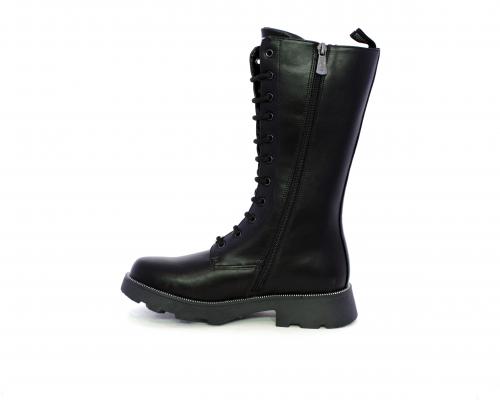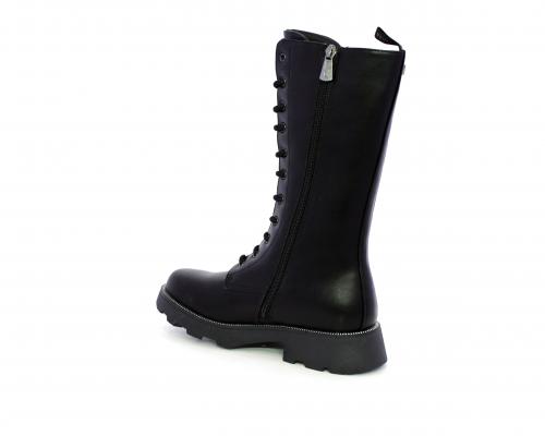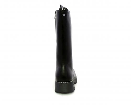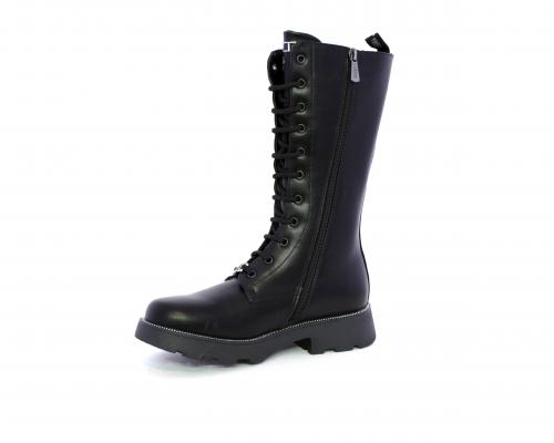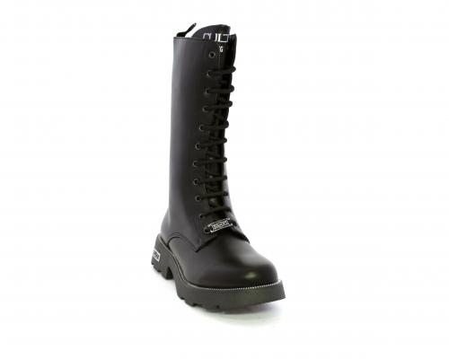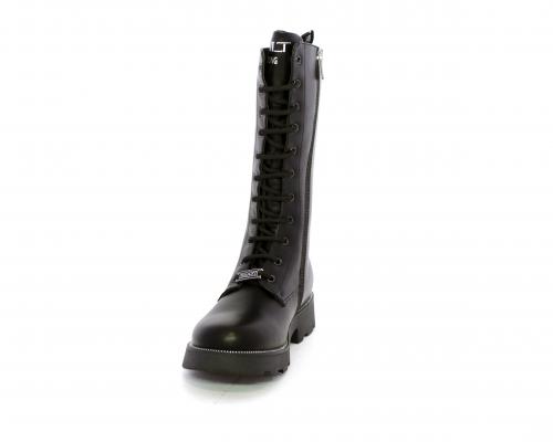 Anfibio lungo con lacci e chiusura laterale, tomaia in pelle con fascia di brillantini tra la gomma e la tomaia, sottopiede in pelle, fodera interna in tessuto.