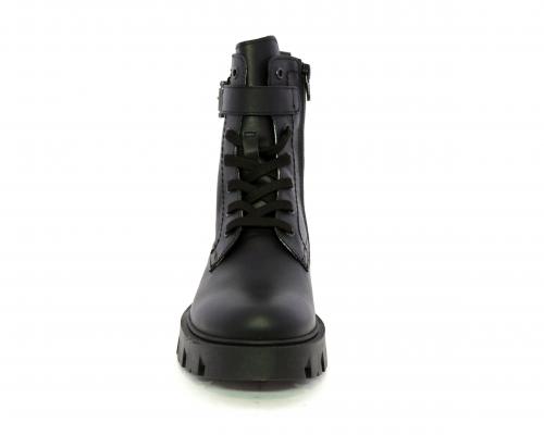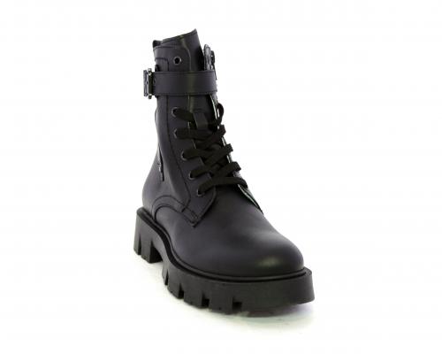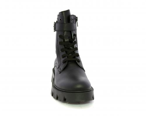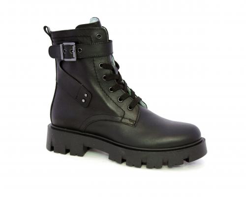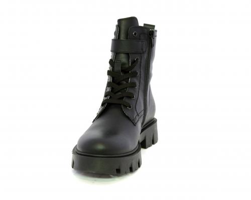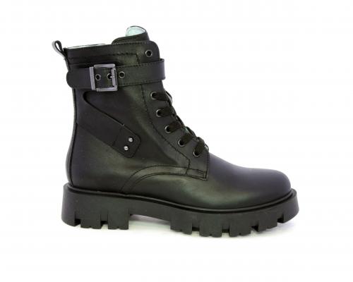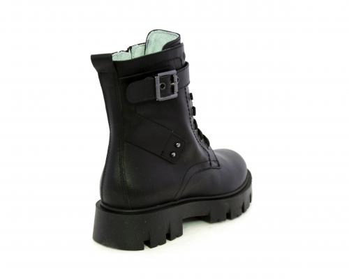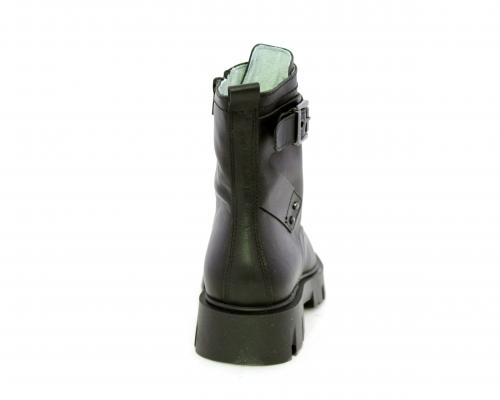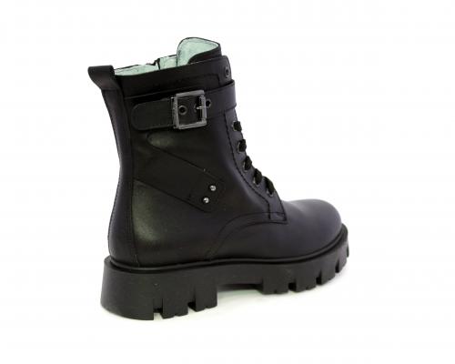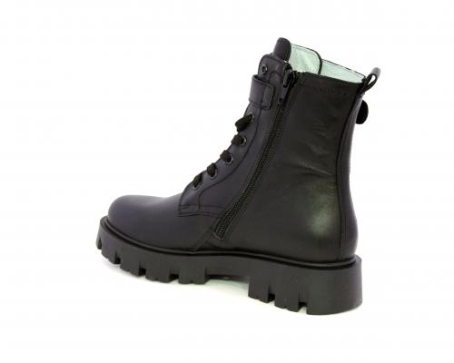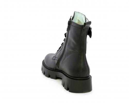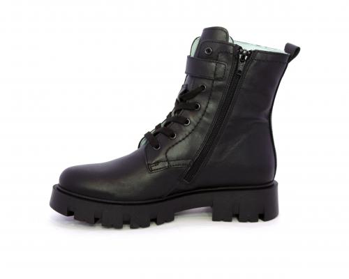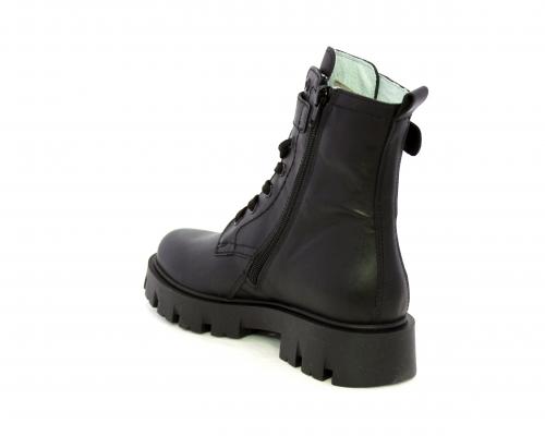 Anfibio fondo gomma, lacci e chiusura laterale per facilitare la calzata, tomaia in pelle con fibbia laterale regolabile, sottopiede e fodera interna in pelle, fusbet anatomico.